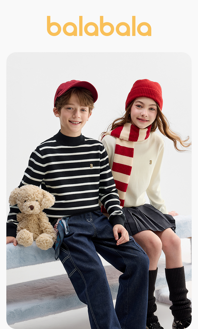 【爆品主推】巴拉巴拉balaOne童装儿童毛衣男女童套头针织衫2025新款冬打底衫