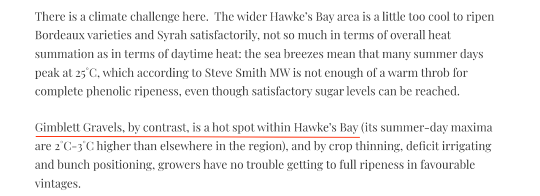 土壤主要是由纳鲁罗罗河经过数千年冲刷而出的河底砾石组成,这些良好排水性的砾石可深达 100 米。生长在这片贫瘠土地之上的葡萄藤,拥有茁壮的生命力,不少风土报告都提到,这是霍克湾的一块热土。也就是说,这简直就是西拉的天堂:葡萄能够达到非常完美的成熟度,风味更集中且饱满有力。