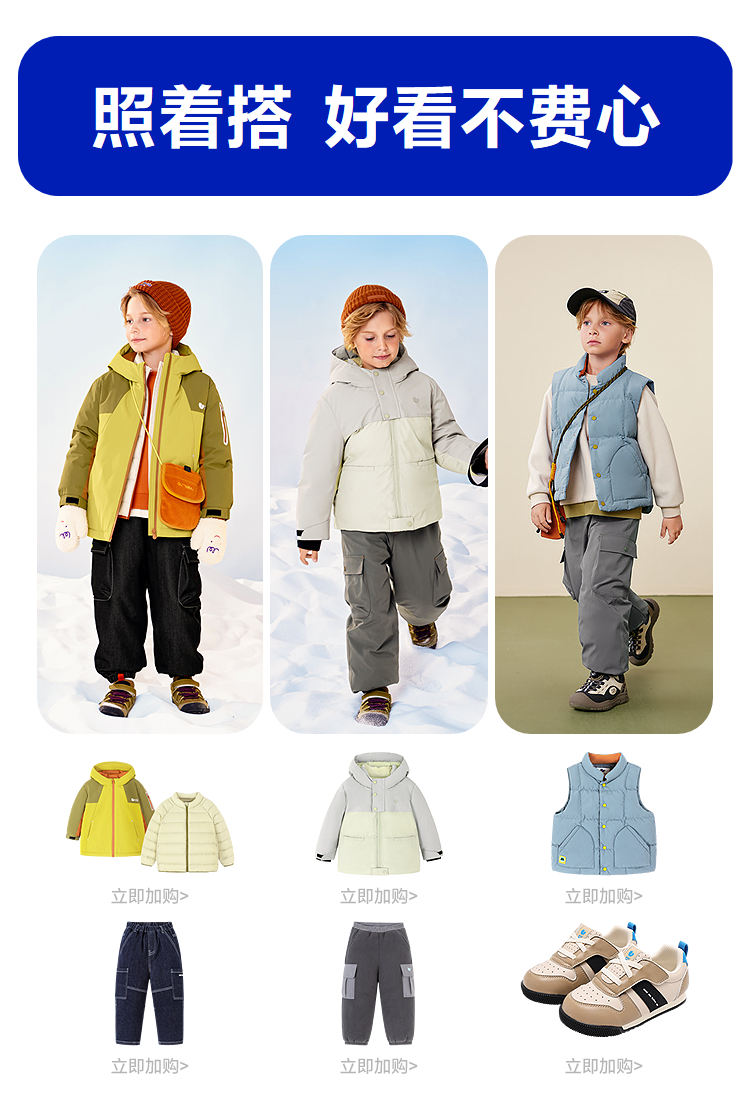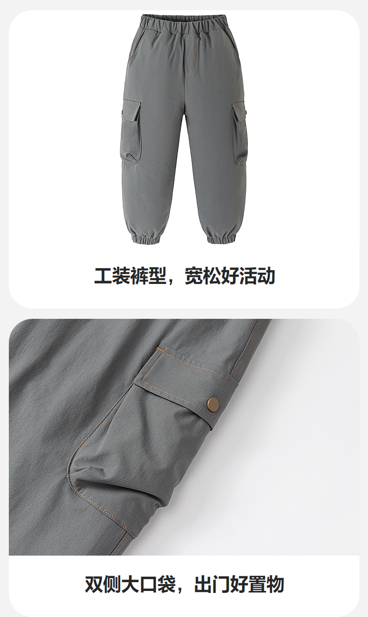 [迷你真心绒]迷你巴拉巴拉男童儿童拒水羽绒裤2025冬三防工装裤子