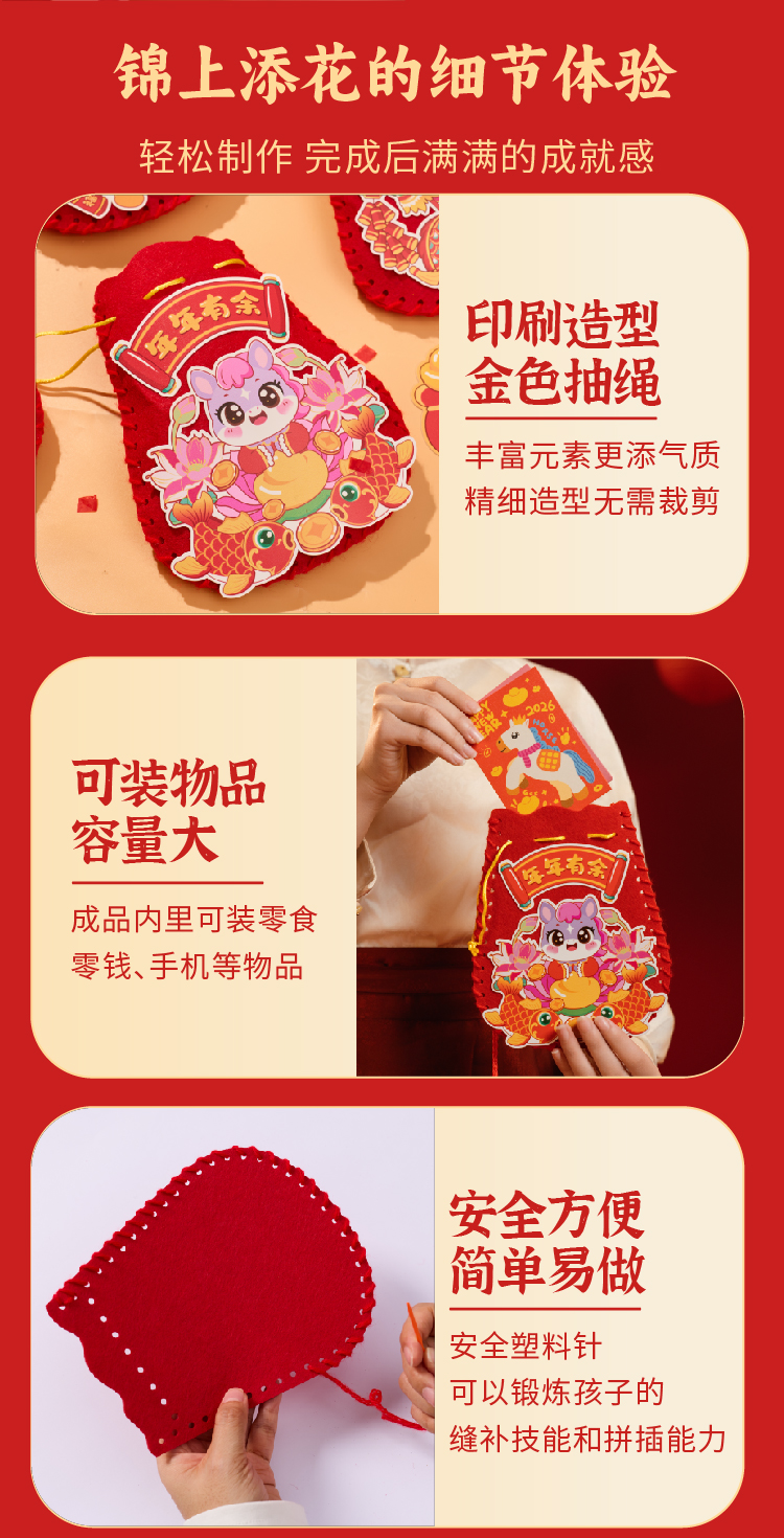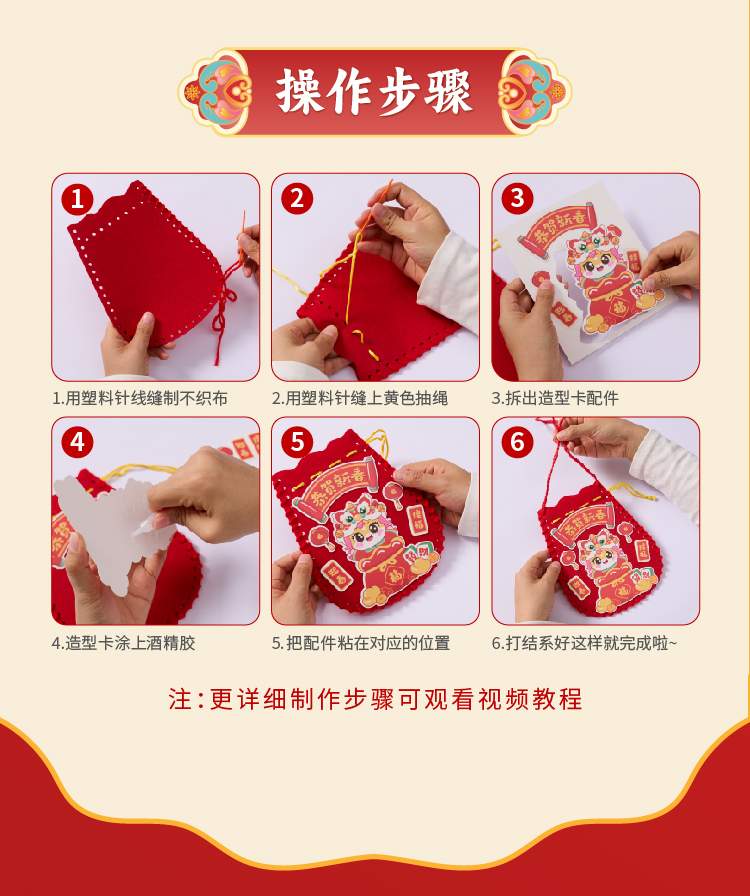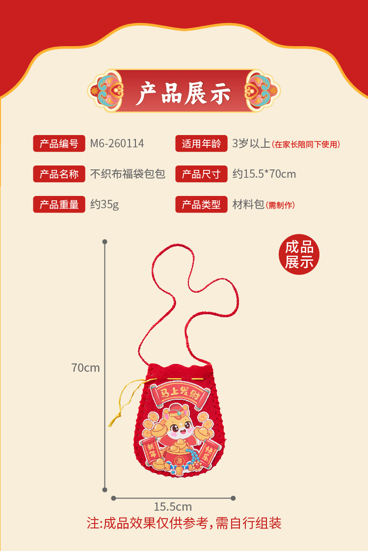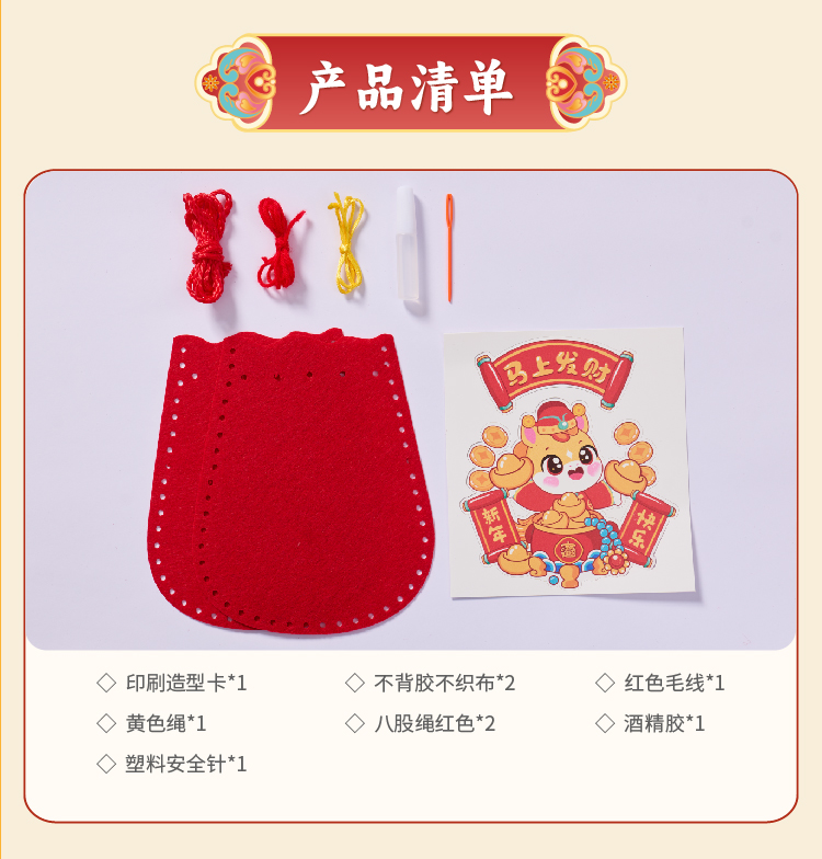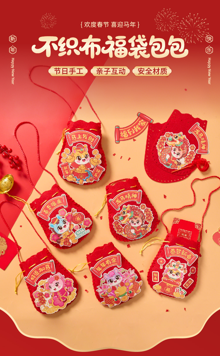 新年马年春节元旦活动不织布福袋包包手工diy儿童制作材料幼儿园
