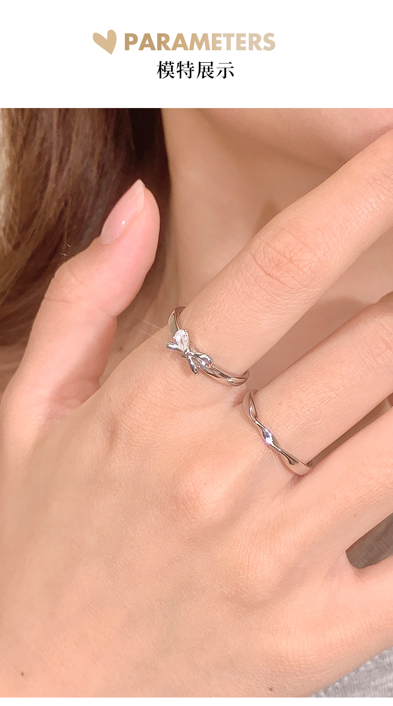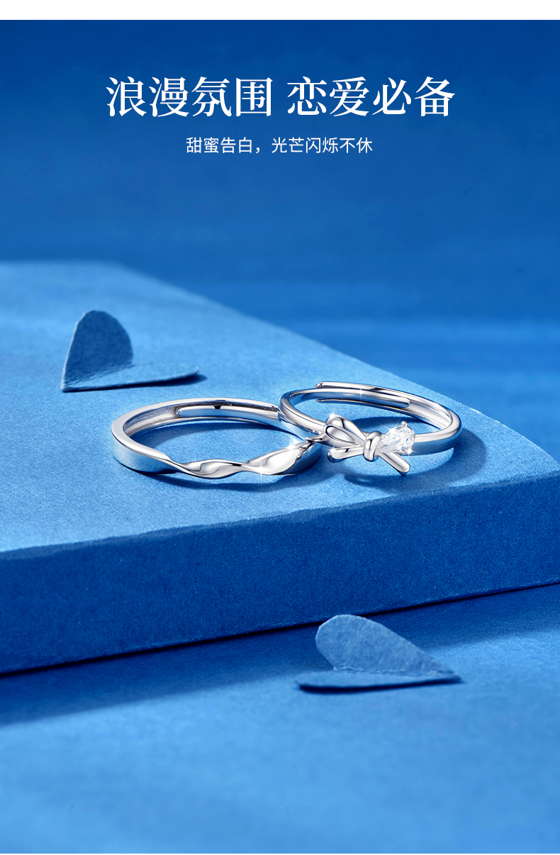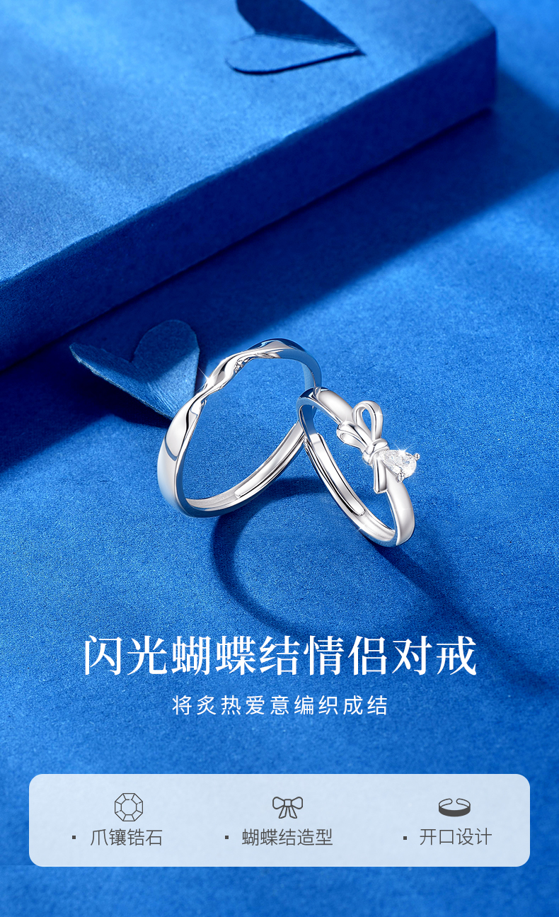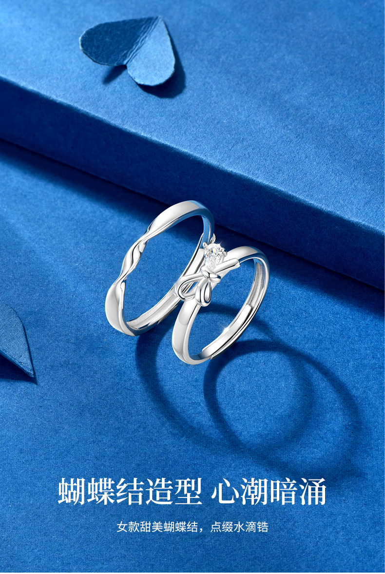 卡蒂罗/KADER 闪光蝴蝶结情侣对戒 在逃公主轻奢时尚大颗锆石开口可调节一对 闪耀吸睛钟爱久久恋爱频率告白配饰 七夕