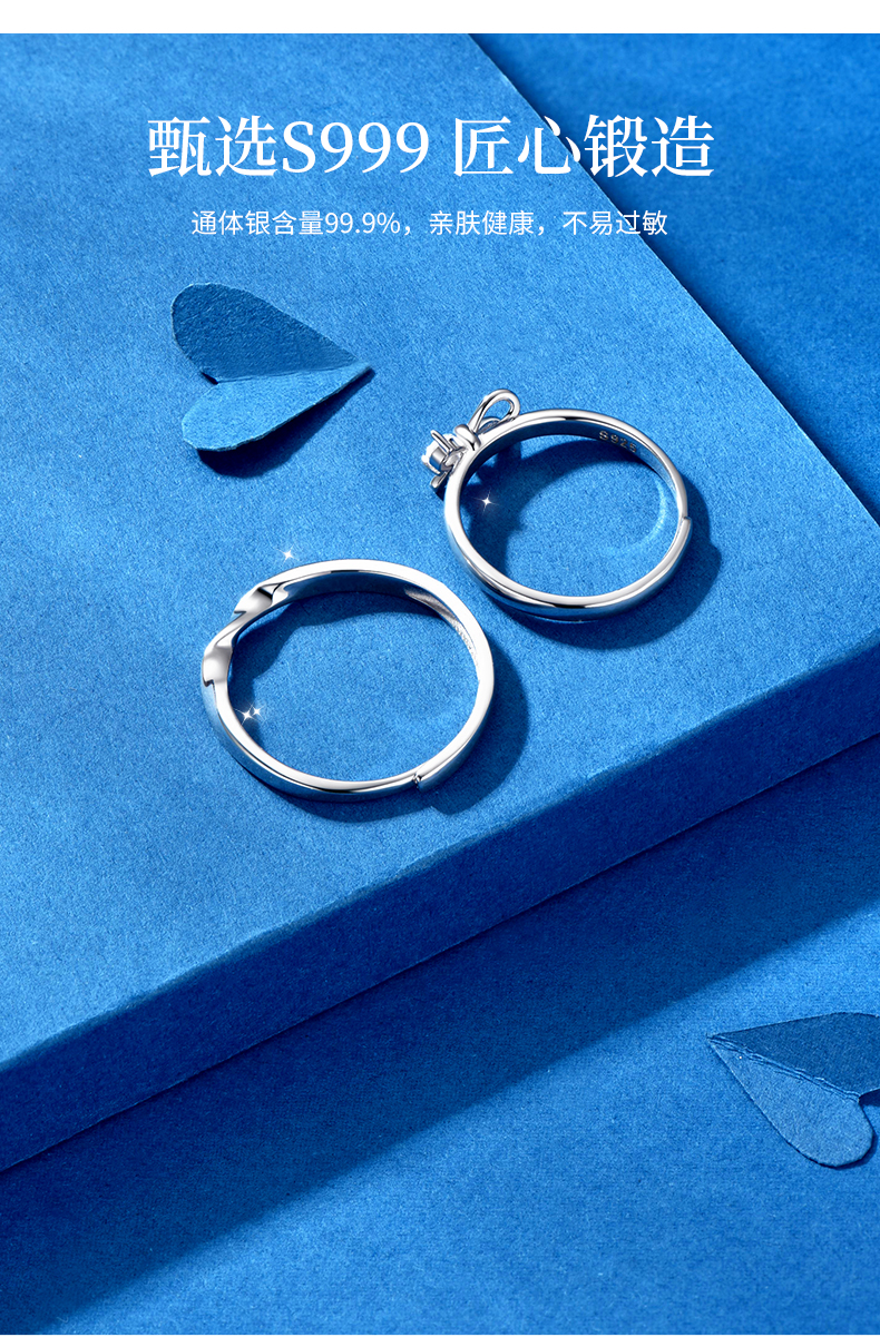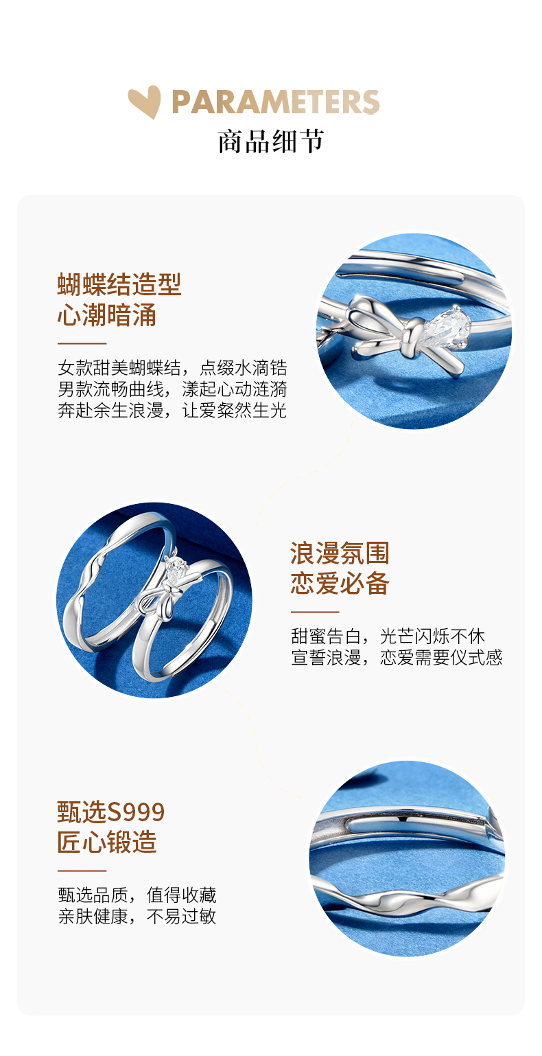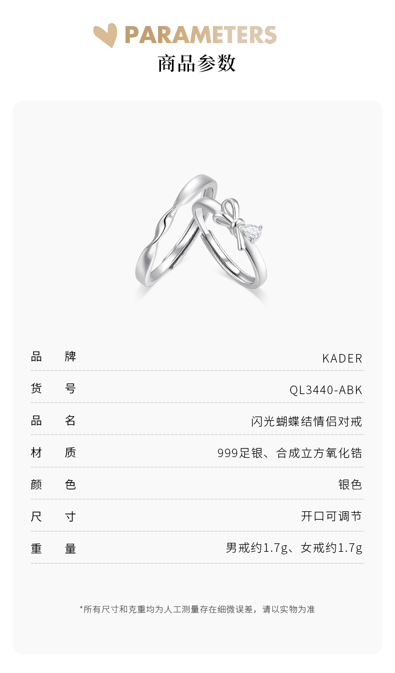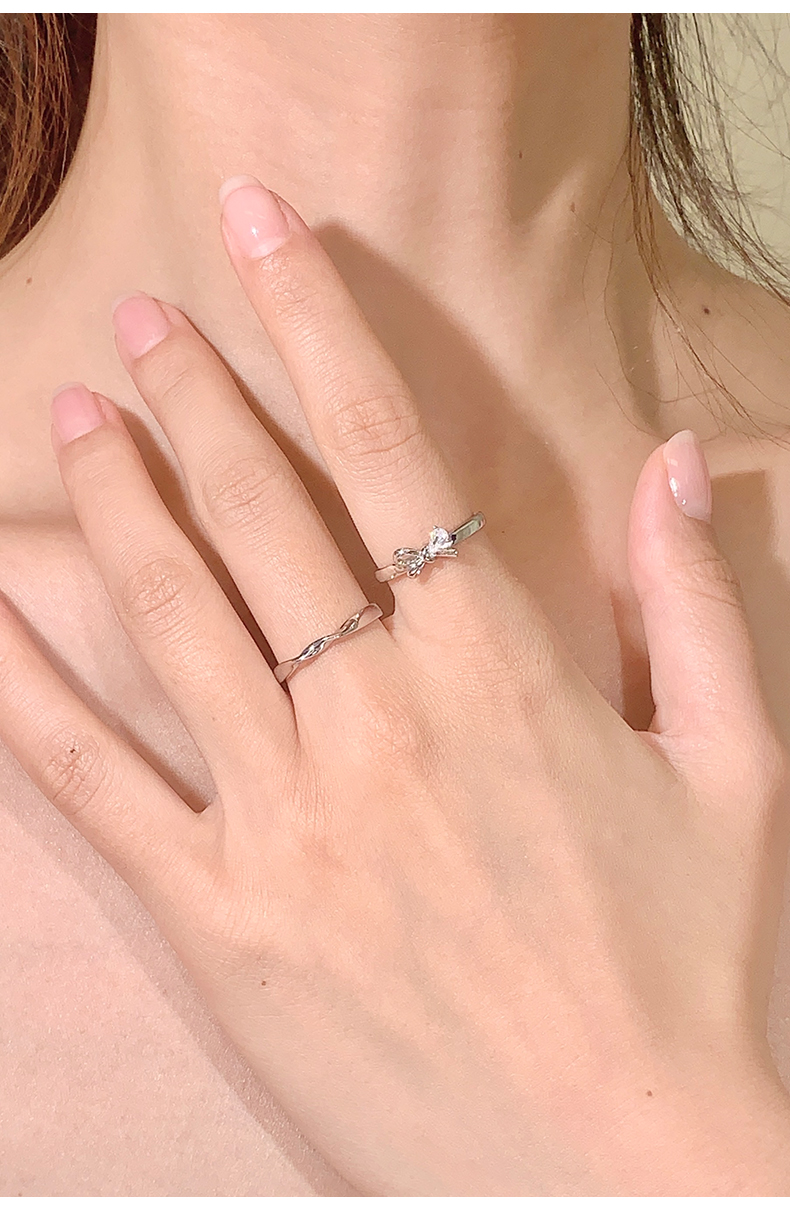 卡蒂罗/KADER 闪光蝴蝶结情侣对戒 在逃公主轻奢时尚大颗锆石开口可调节一对 闪耀吸睛钟爱久久恋爱频率告白配饰 七夕