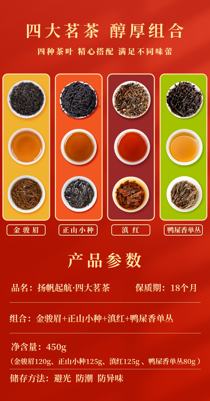 【茶中瑰宝!四大茗茶礼盒套装】舌尖盛宴,征服了无数茶客的味蕾!滇红金骏眉红茶茶叶送礼品凤凰单枞鸭屎香伴手礼,