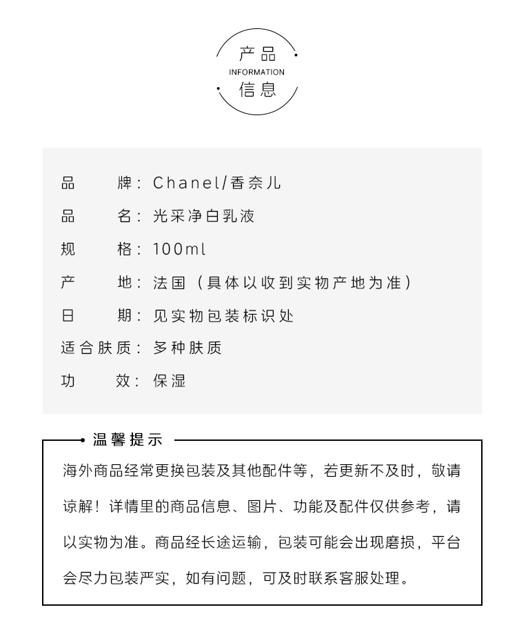 CHANEL香奈儿2025年新版光采美白系列乳液100ml 保湿补水(CDF)