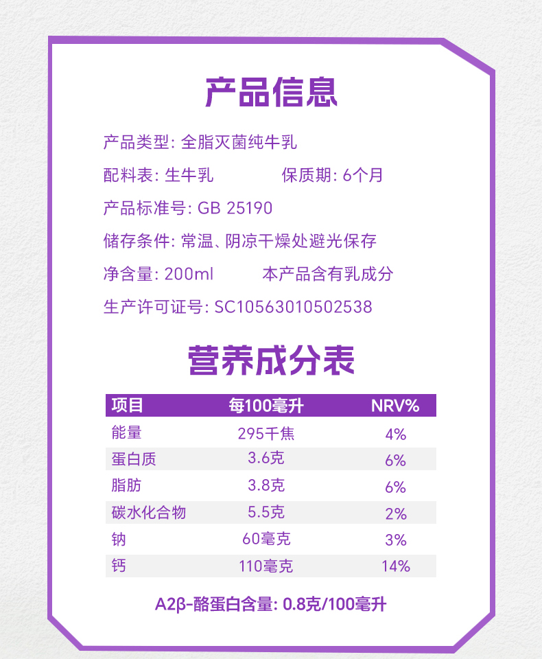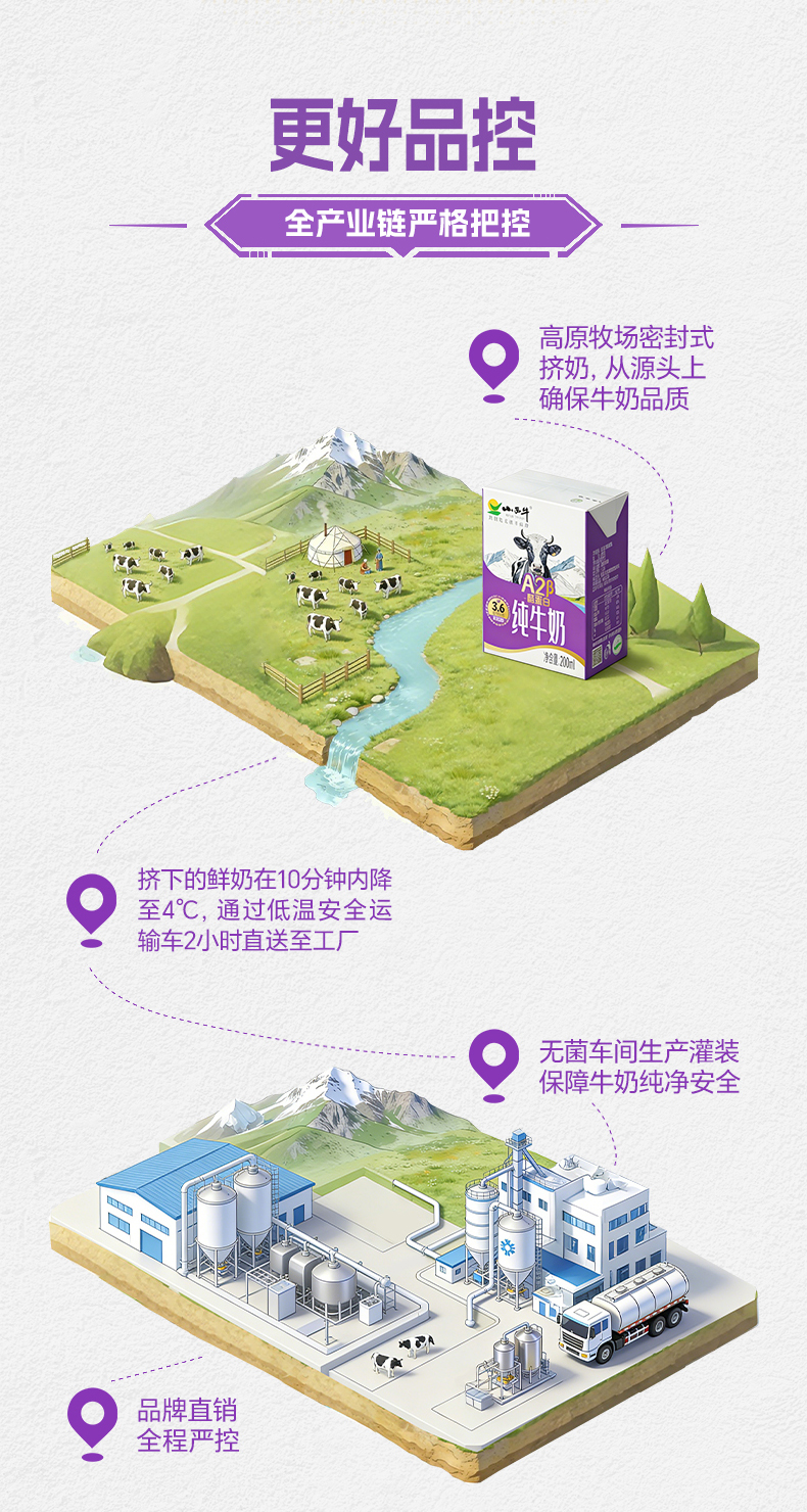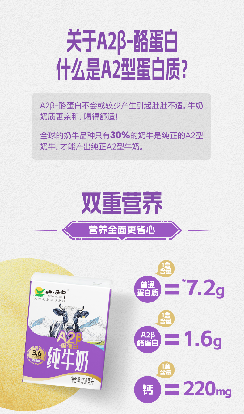 【新品上市】小西牛高原牧场A2β- 酪蛋白纯牛奶3.6g蛋白纯牛奶 200ml*10盒