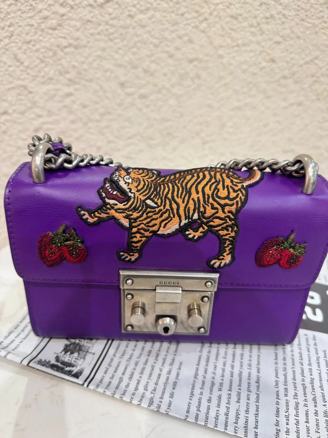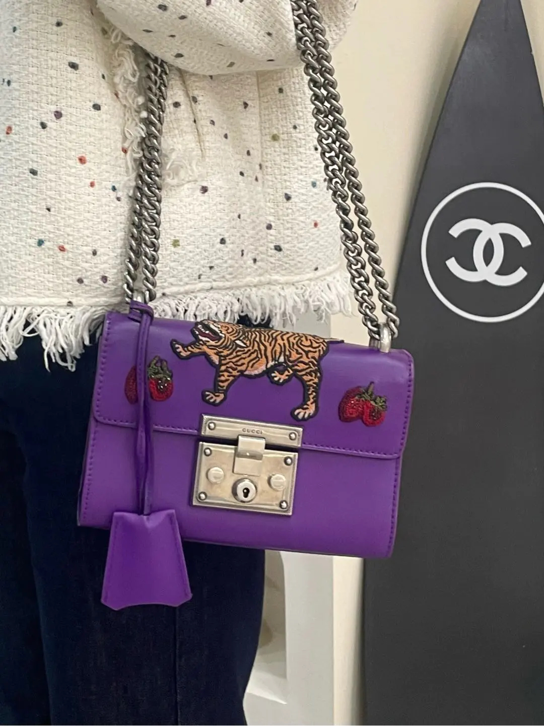 正品二手 GUCCI Padlock 紫色 孟加拉虎 牛皮 小号 月光宝盒💼97新 20*12 配件:钥匙 锁。收藏圈热门单品