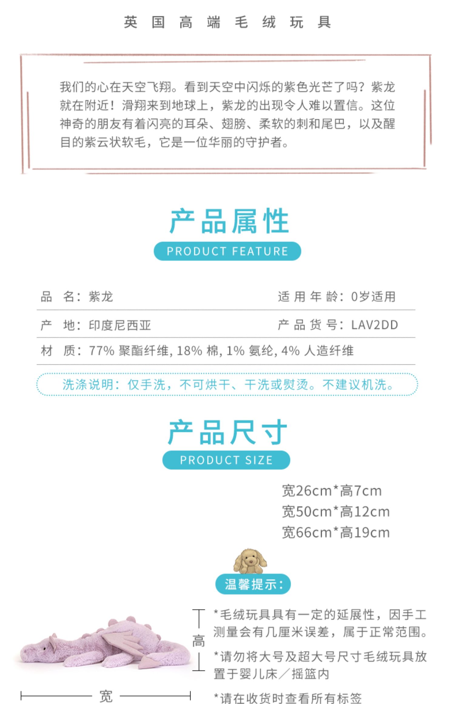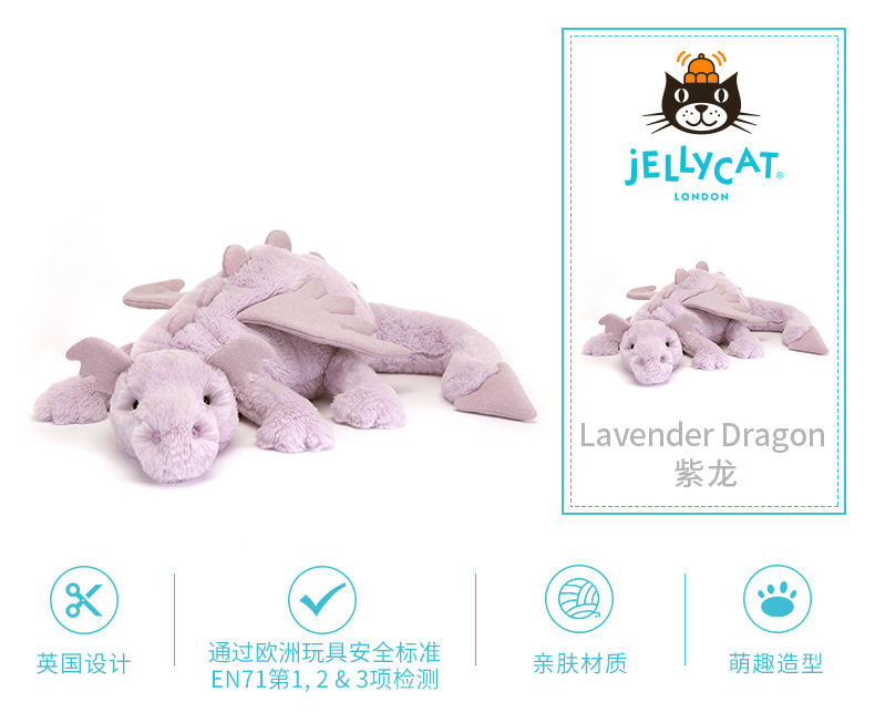 Jellycat 紫龙可爱毛绒玩具娃娃安抚玩偶公仔送礼【玩具】