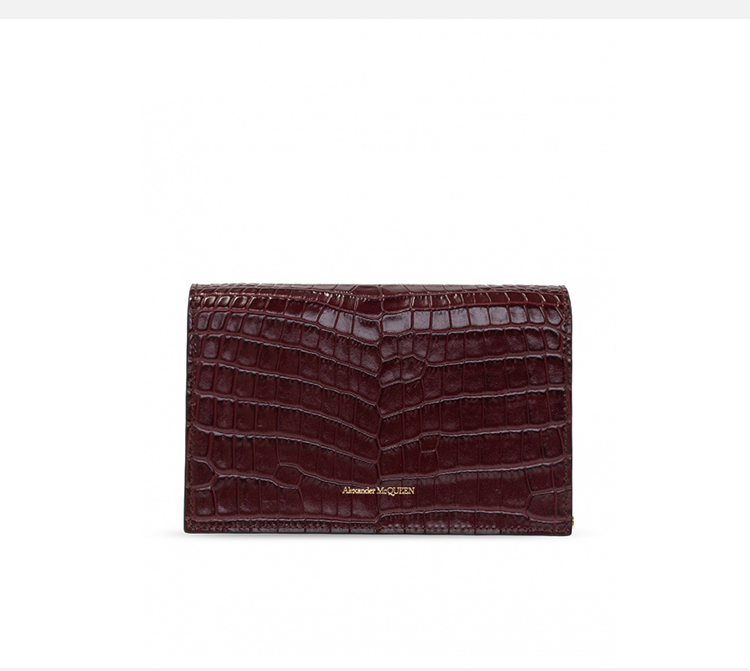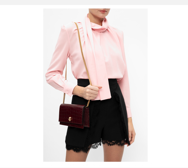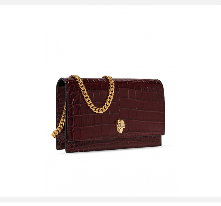 ALEXANDER MCQUEEN 亚历山大.麦昆 女士仿鳄皮纹浮雕骷髅头铆钉小号单肩骷髅包 女士单肩包 酒红 613088 1HB0G 6140