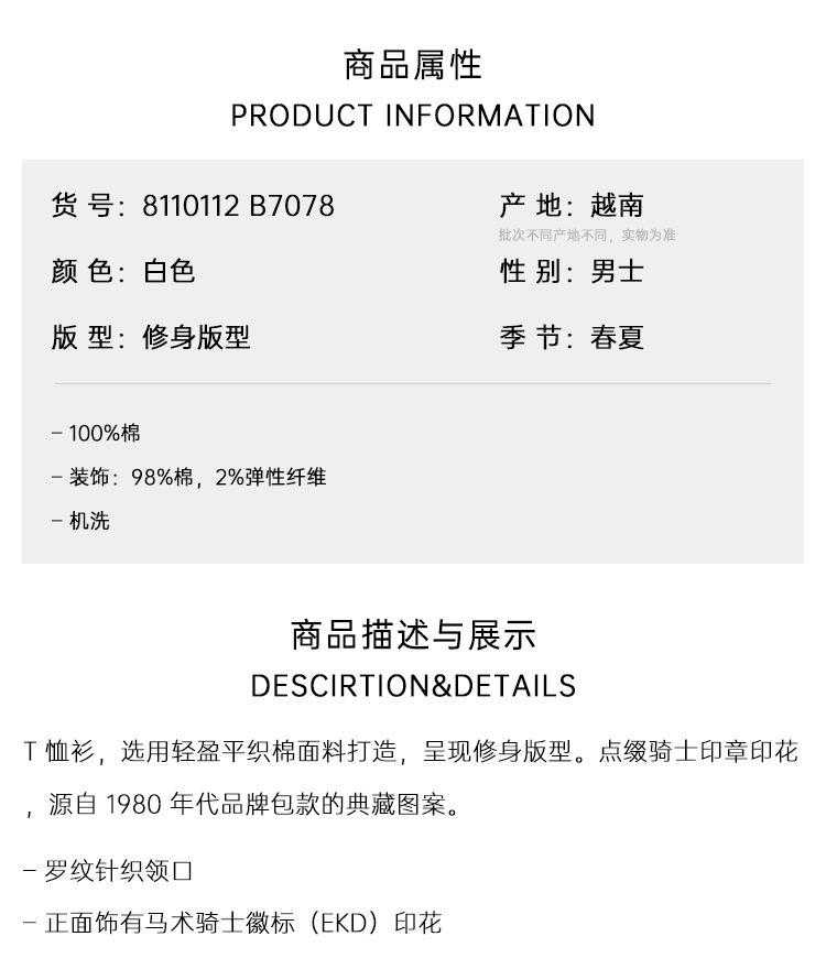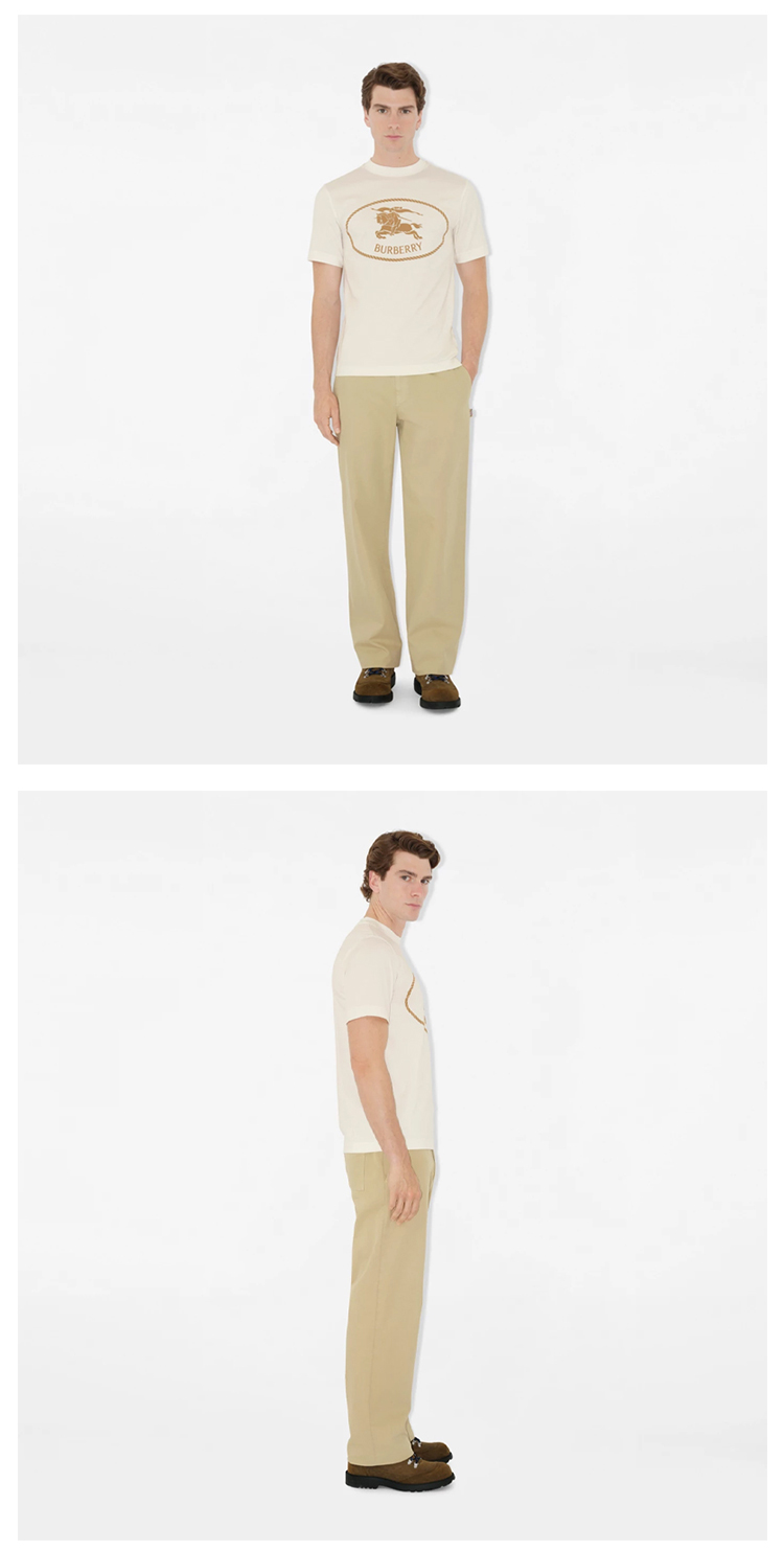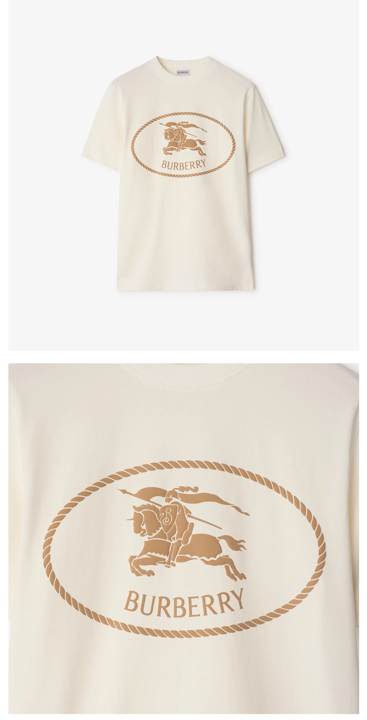 BURBERRY 巴宝莉 男士马术骑士徽章印花棉质圆领短袖T恤 白色 8110112 B7078