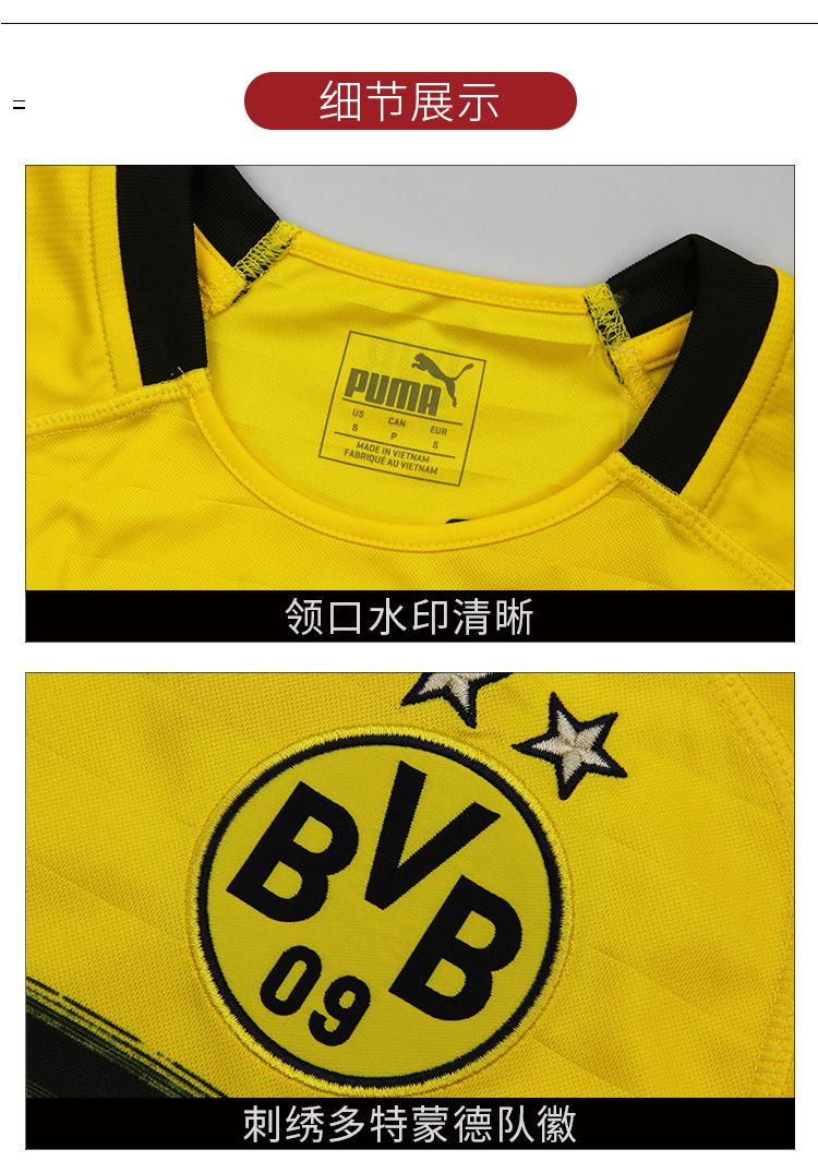 SFS彪马正品1819多特蒙德欧冠主场球衣短袖球迷版足球服753322-11