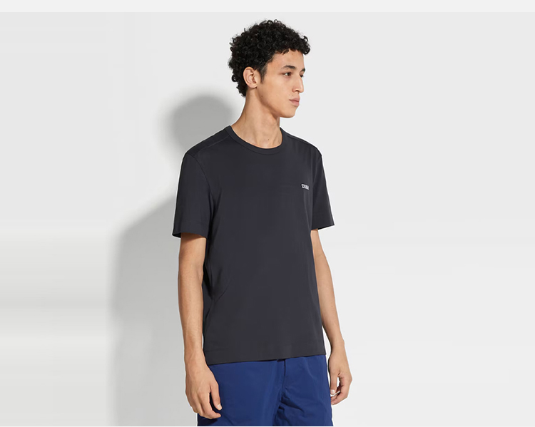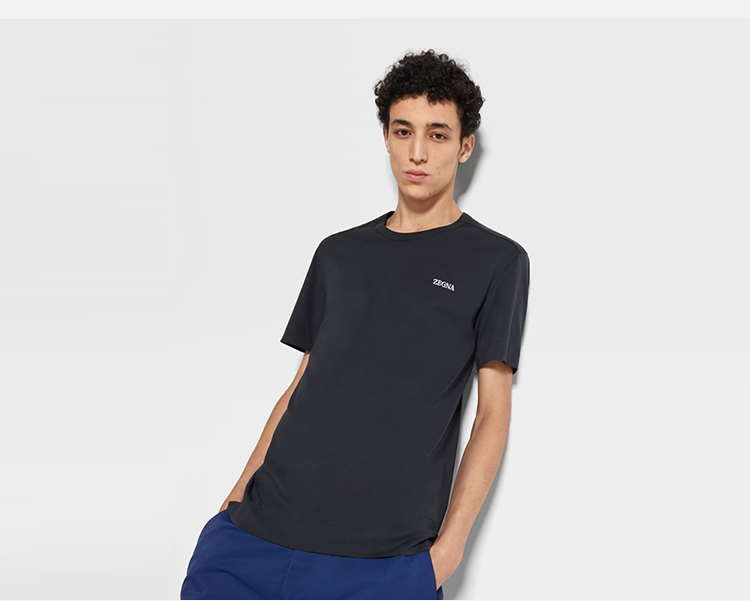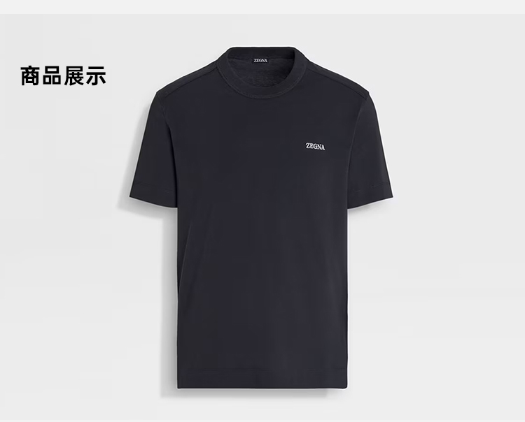 【二】ZEGNA 杰尼亚 男士字母刺绣徽标棉质圆领短袖T恤 深蓝色 E7360A5 B760 B09