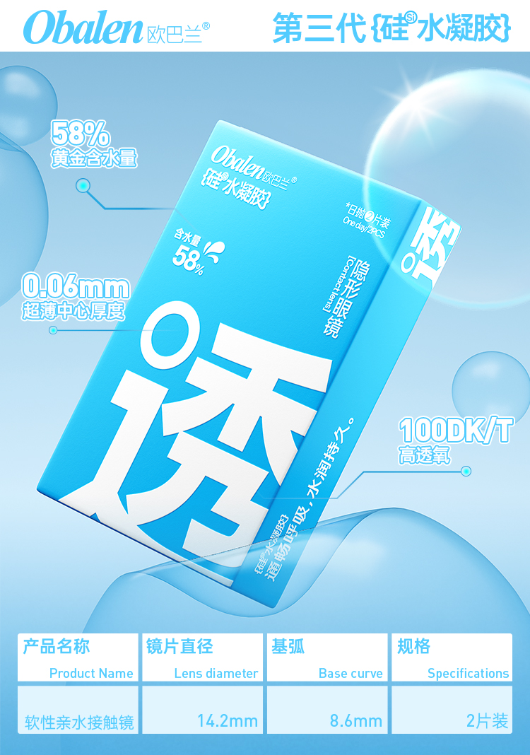 【新品】obalen欧巴兰【第三代硅水凝胶日抛】14.2mm双通道透氧透明隐形眼镜2片装