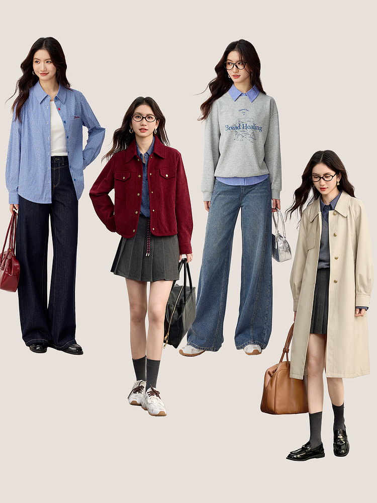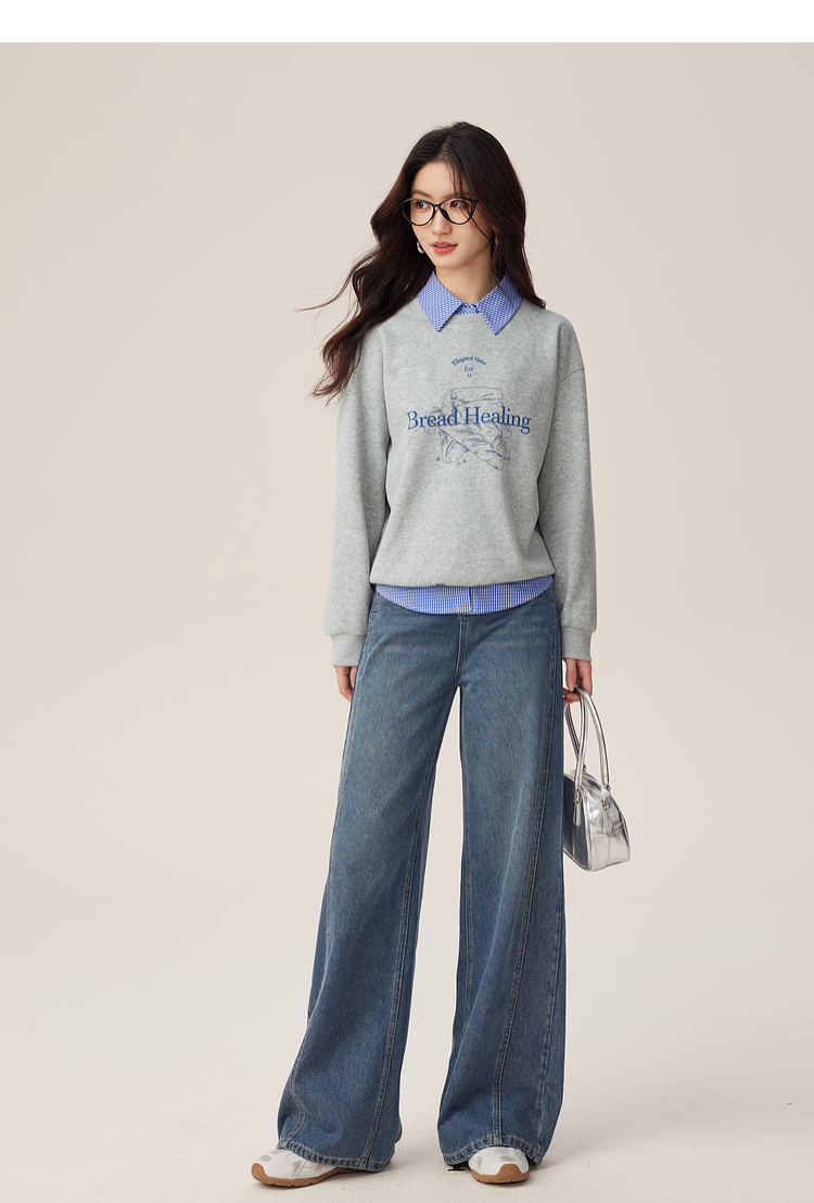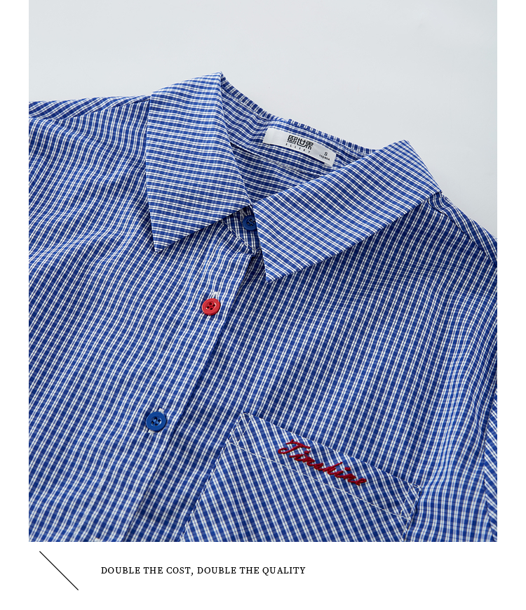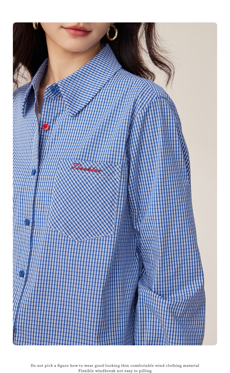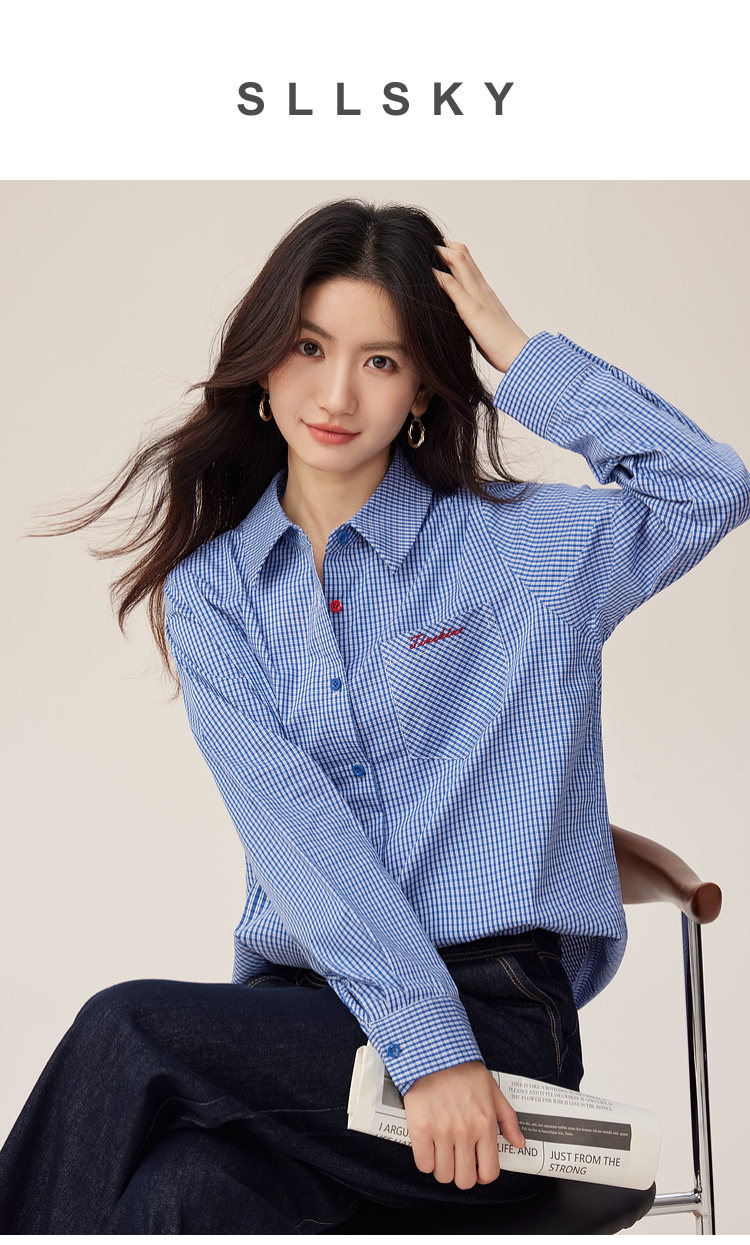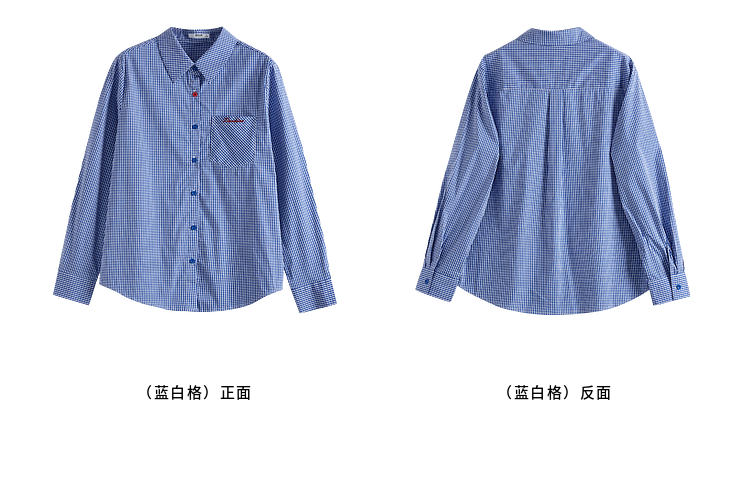 【09/03新品】熙世界MIU系复古蓝格子衬衫女秋季2025新款宽松显瘦刺绣长袖衬衣