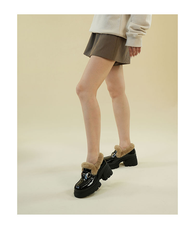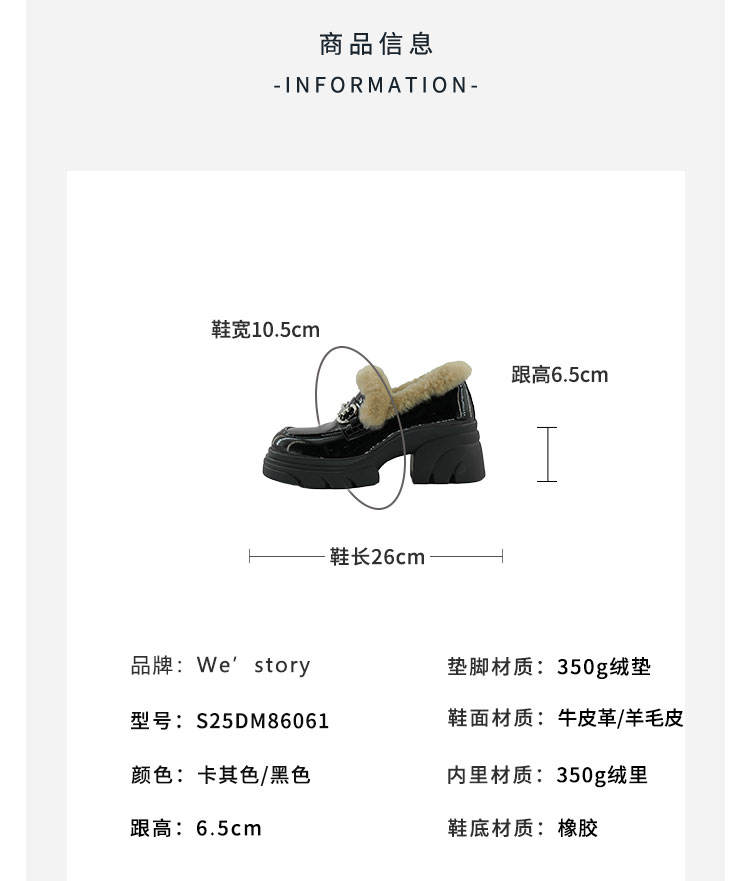 Westory2025年冬季厚底加毛乐福鞋百搭深口单鞋S25DM86061