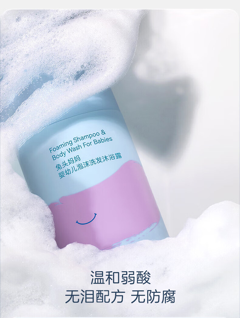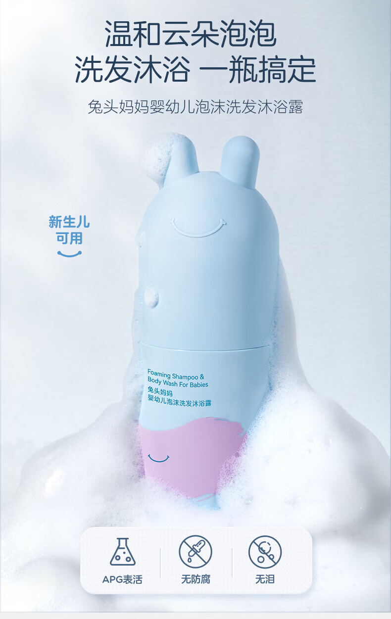 兔头妈妈 婴幼儿泡沫洗发沐浴露二合一 300ml