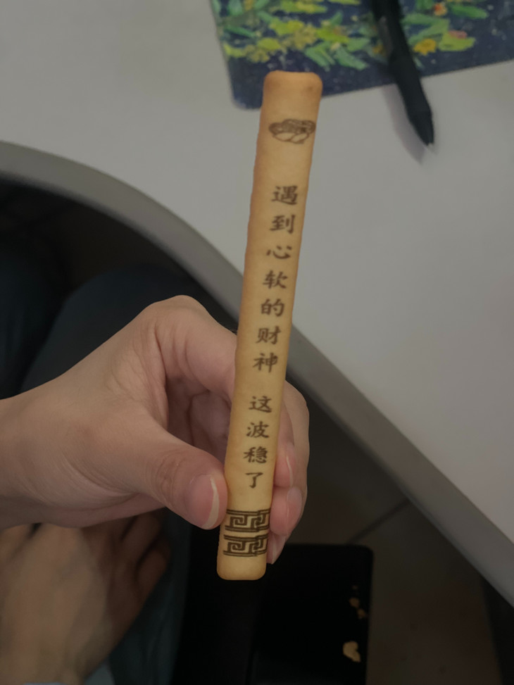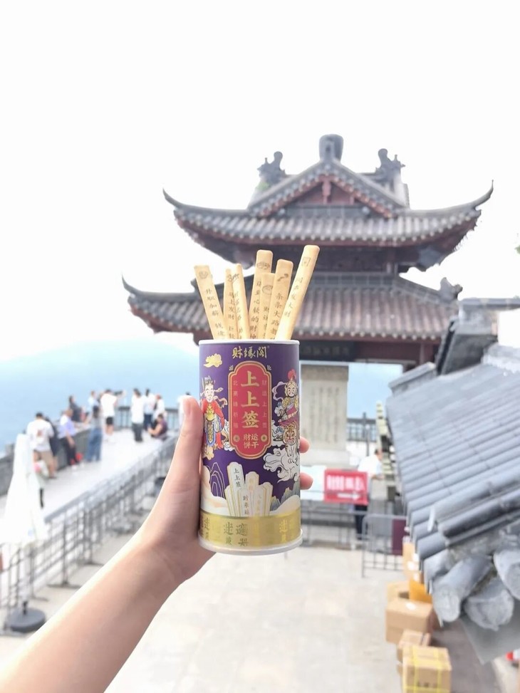 “财运当头,万事不愁”“财富之路,越走越宽”……从印满祝福的签筒中随手一抽,便能获得一份文字鼓励与情绪慰藉,再将它一口一口吃进嘴里——这是杭州北高峰财缘阁新推出的文创食品“财运上上签饼干”所带来的独特体验。
