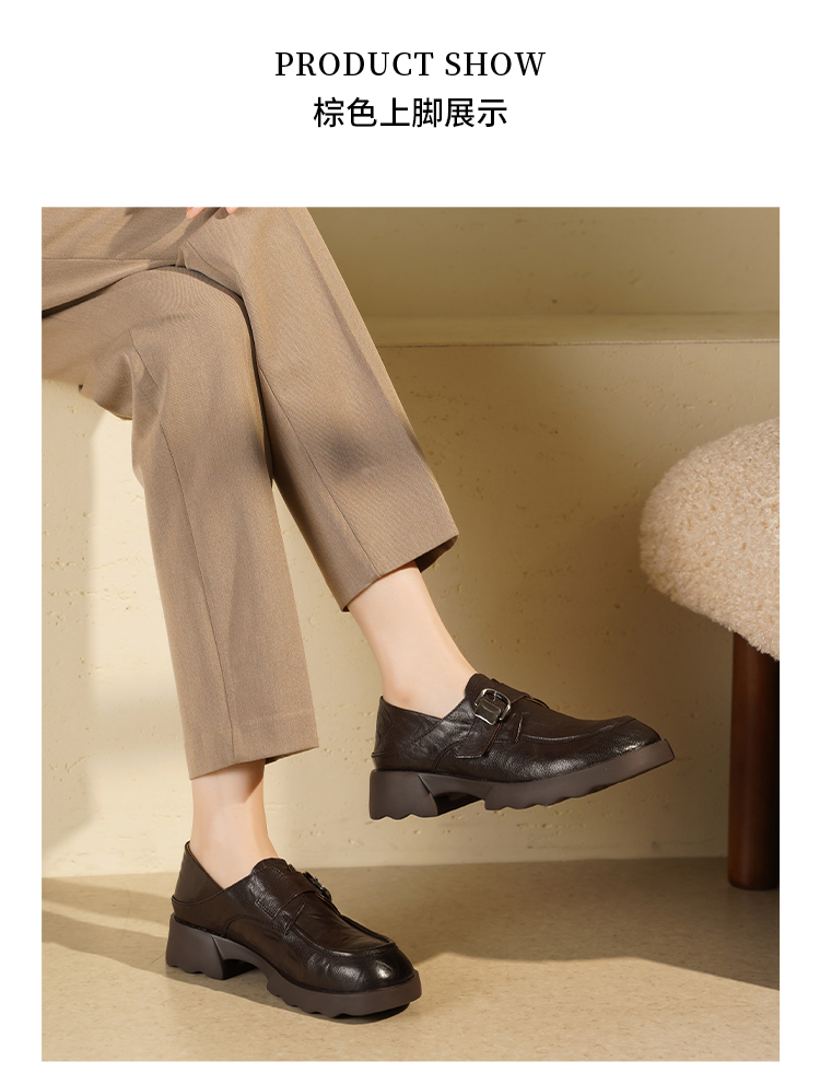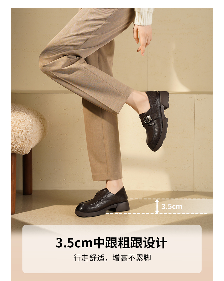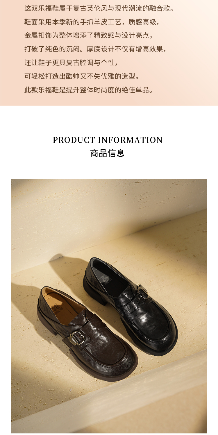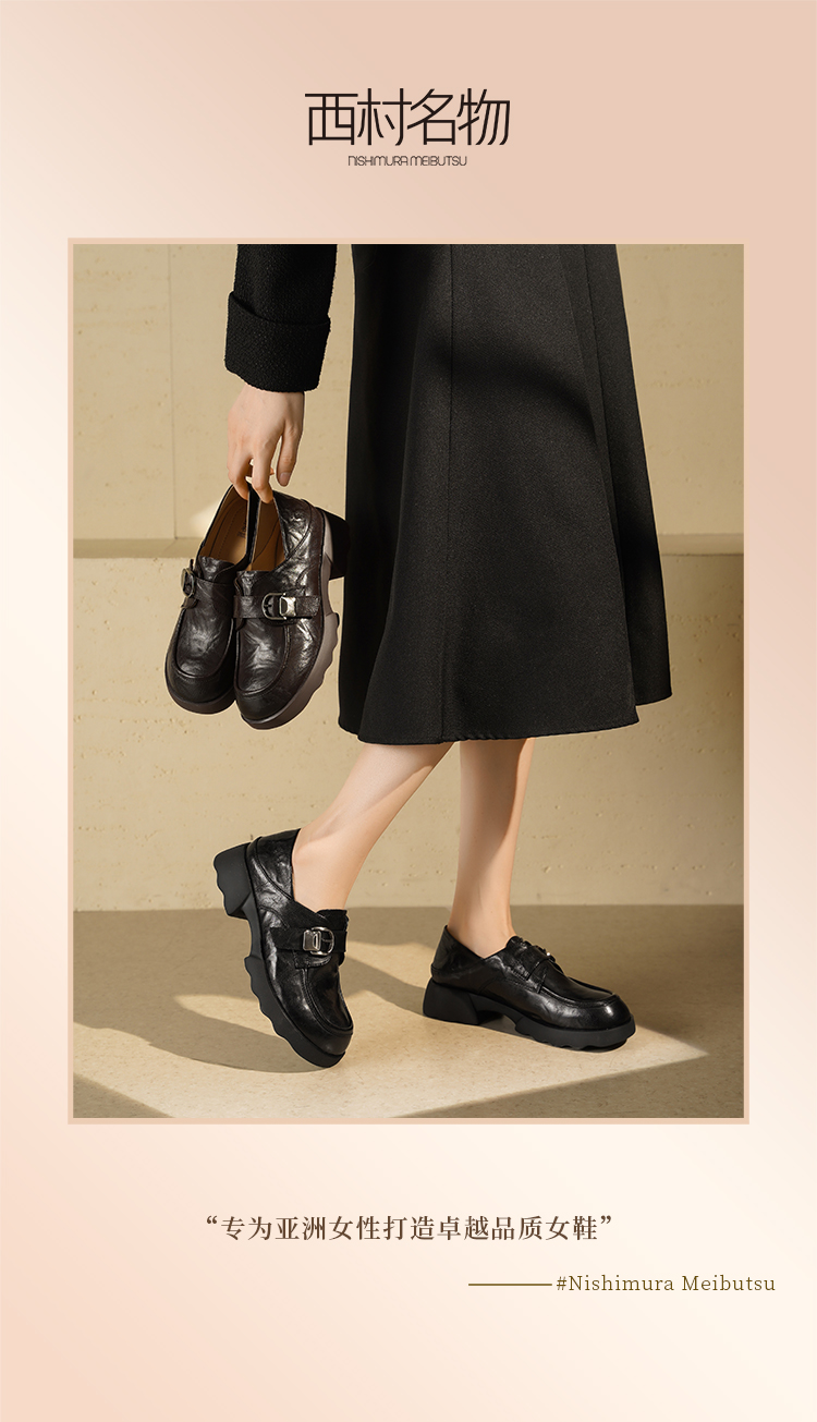西村名物2025年秋季新款厚底增高防滑软底软面舒适百搭乐福鞋T25CM31751