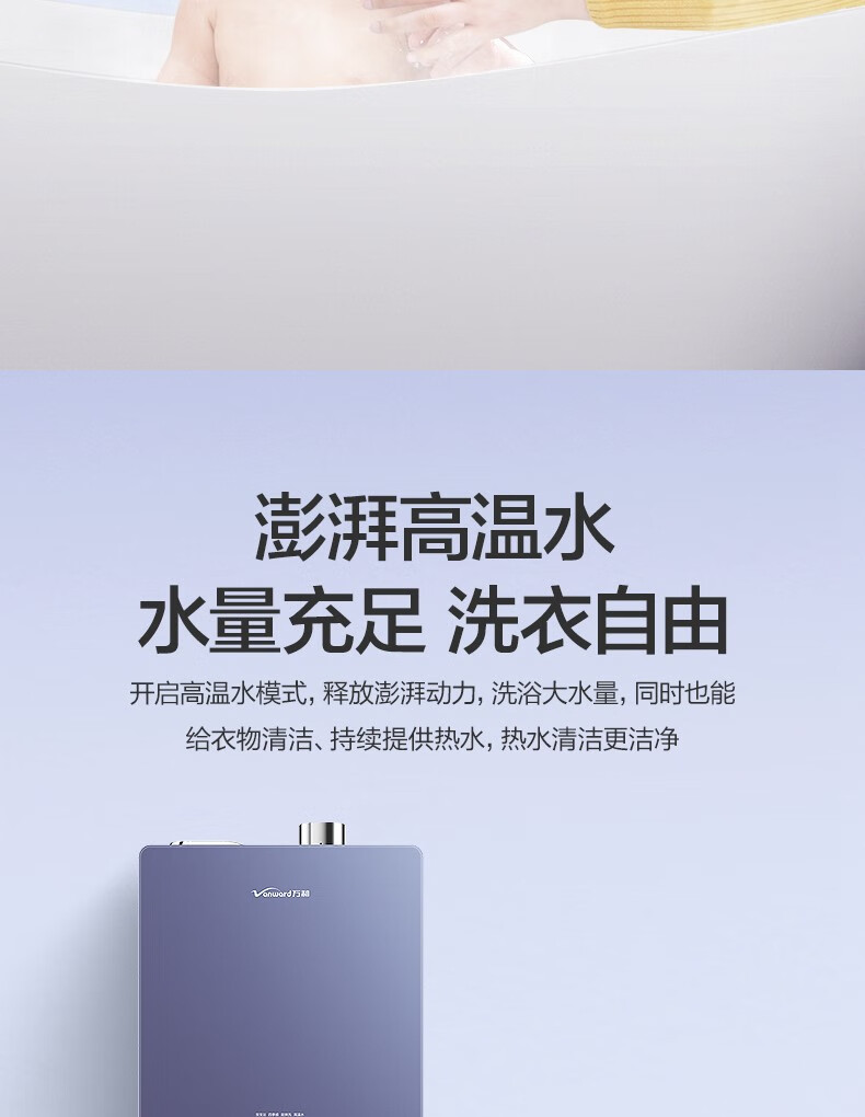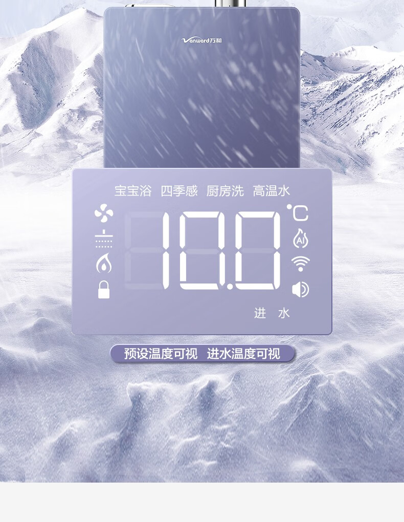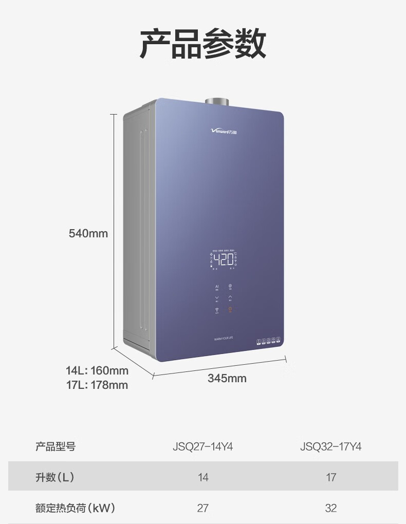 万和燃气热水器天然气全面玻璃屏14/17Y4天幕蓝 wifi手机APP远程控制 防冻恒*用热水器 JSQ27-14Y4(14升天然气)