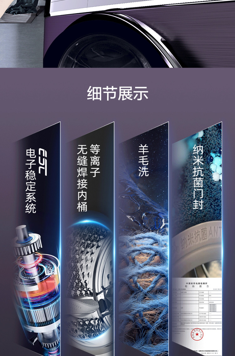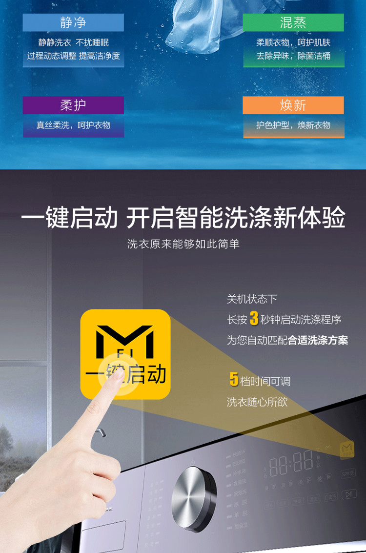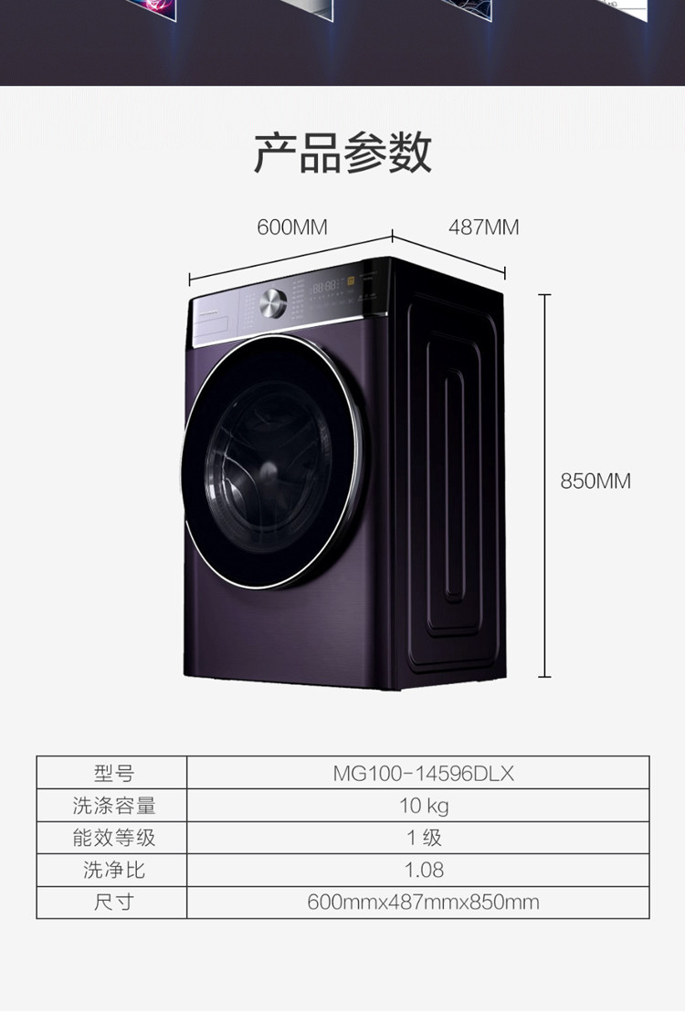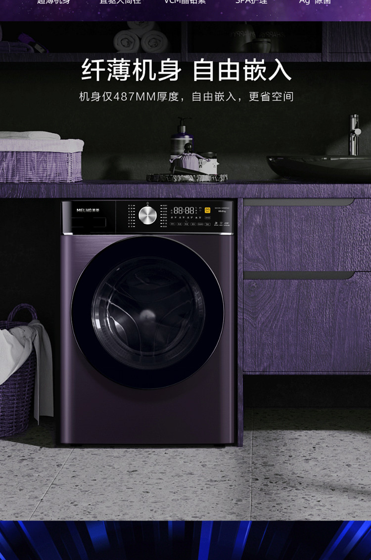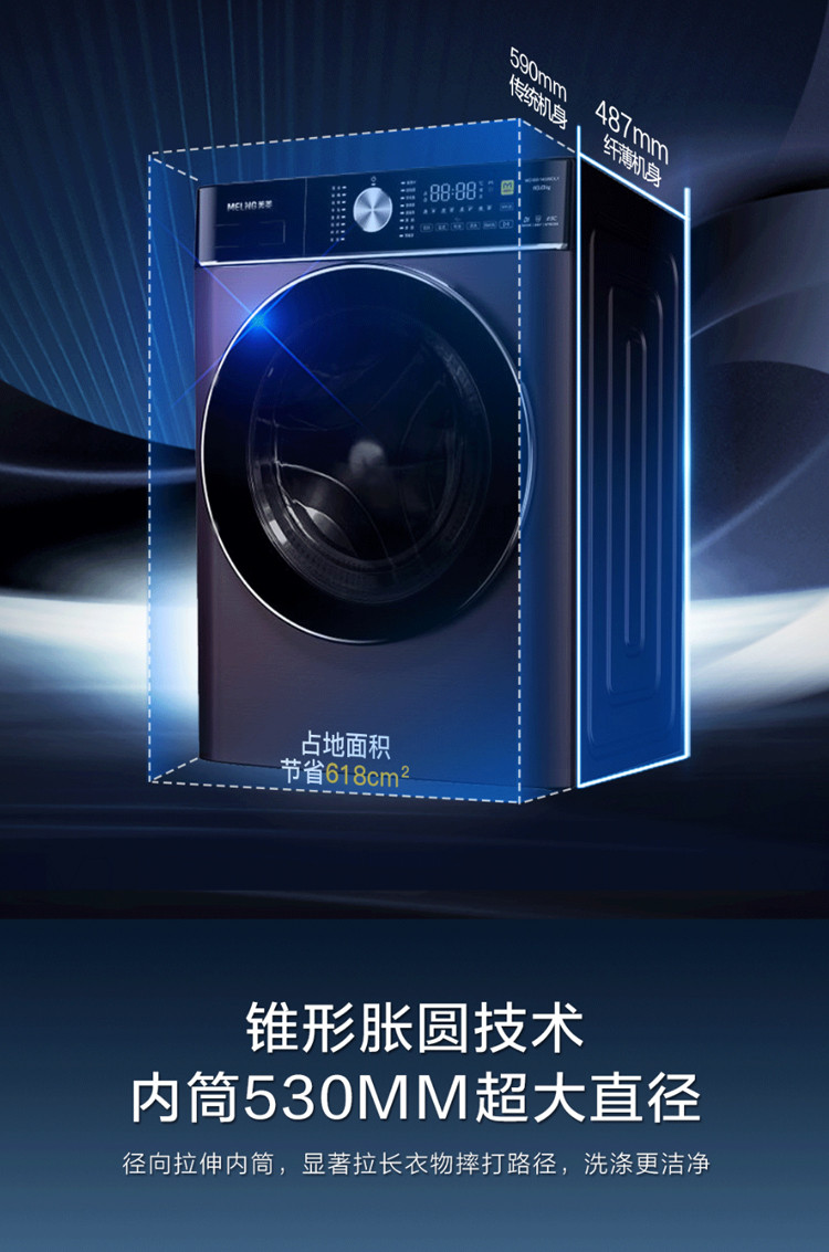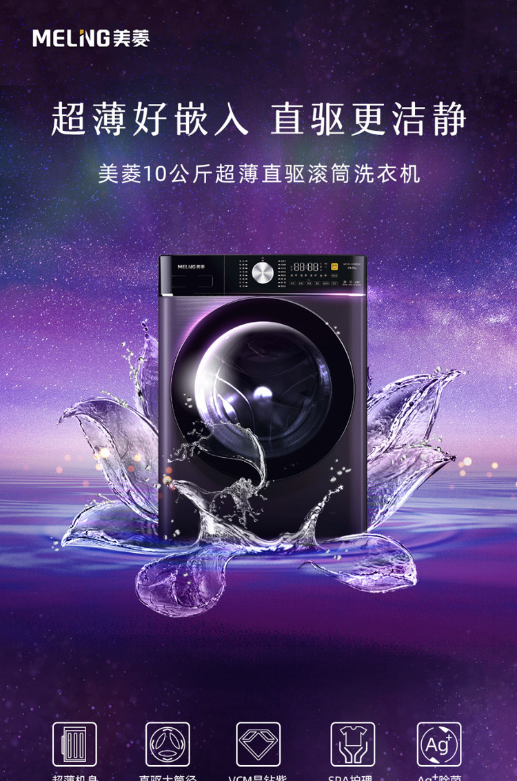 美菱(MELING)10公斤全自动滚筒洗衣机 一级能效 纤薄机身 MG100-14596DLX