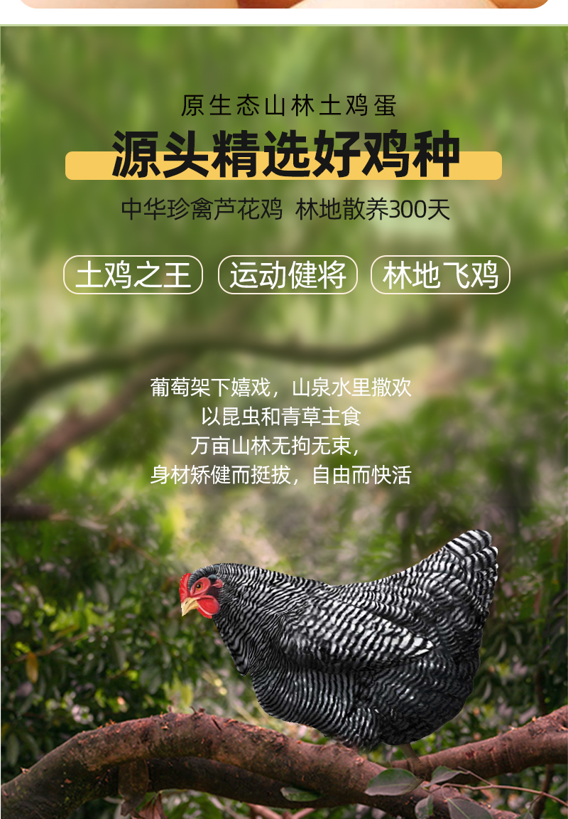 【自营农场直发】 0抗生素 高蛋白 正宗生态散养芦花鸡 土鸡蛋30枚