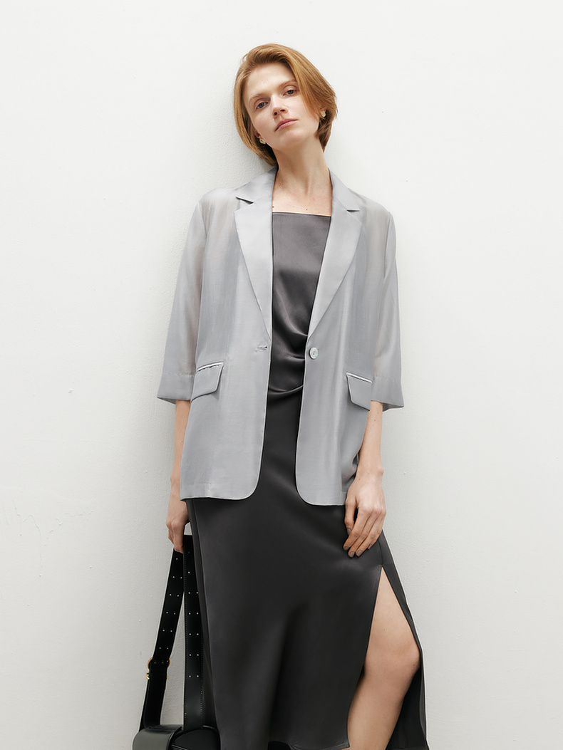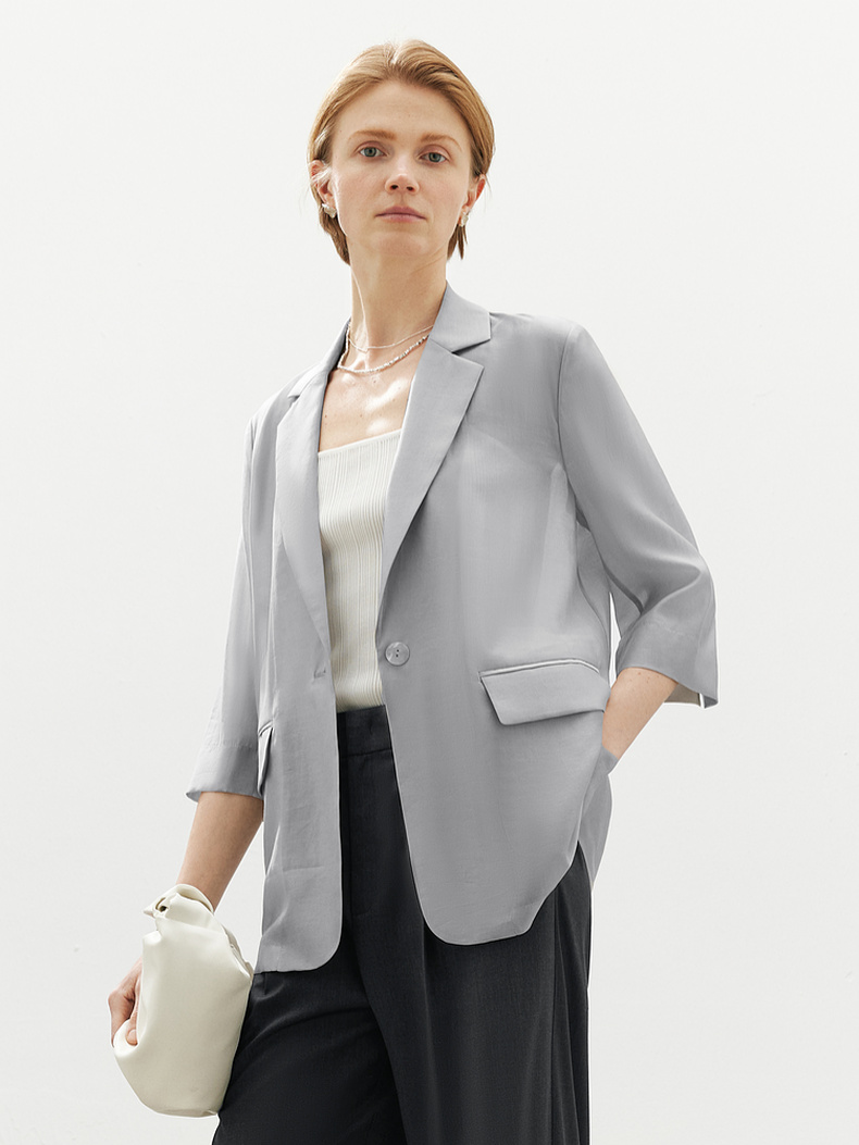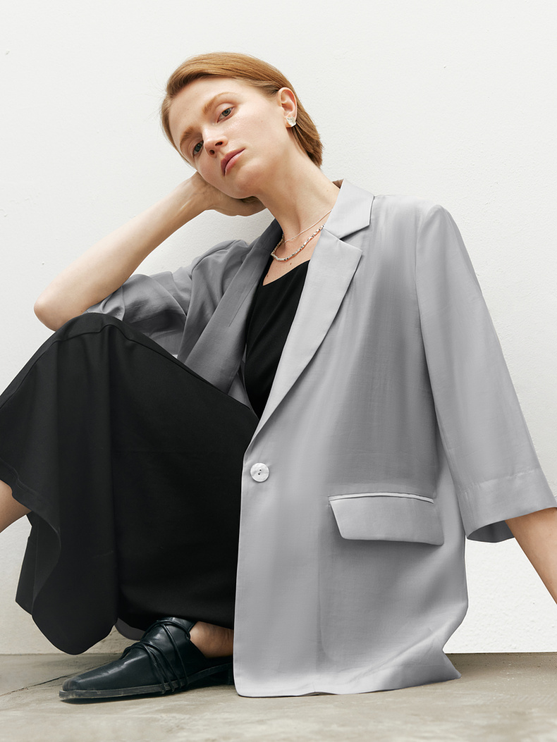 【商场同款】麦檬夏法式通勤清透莱赛尔西装5F4313061