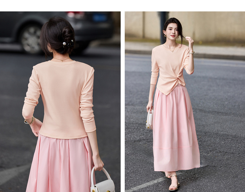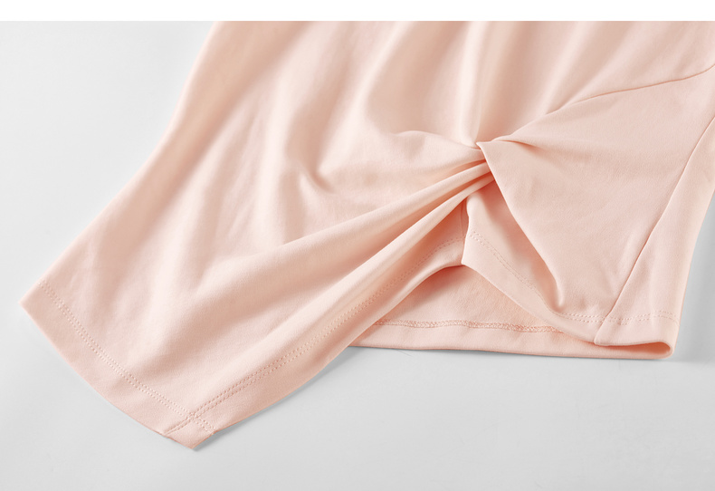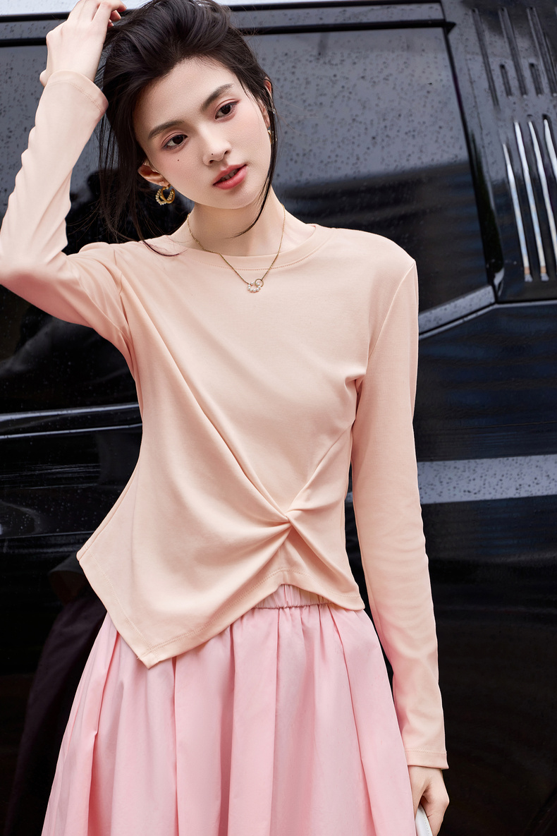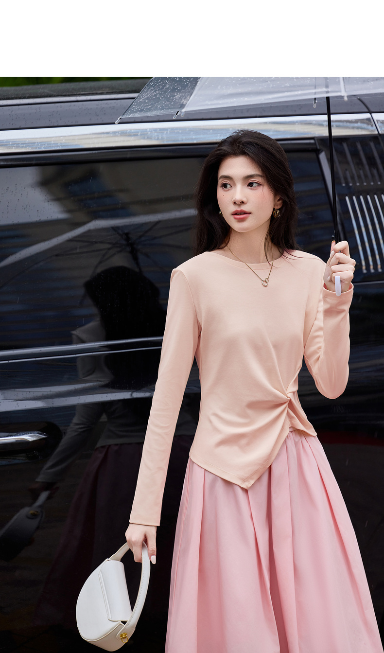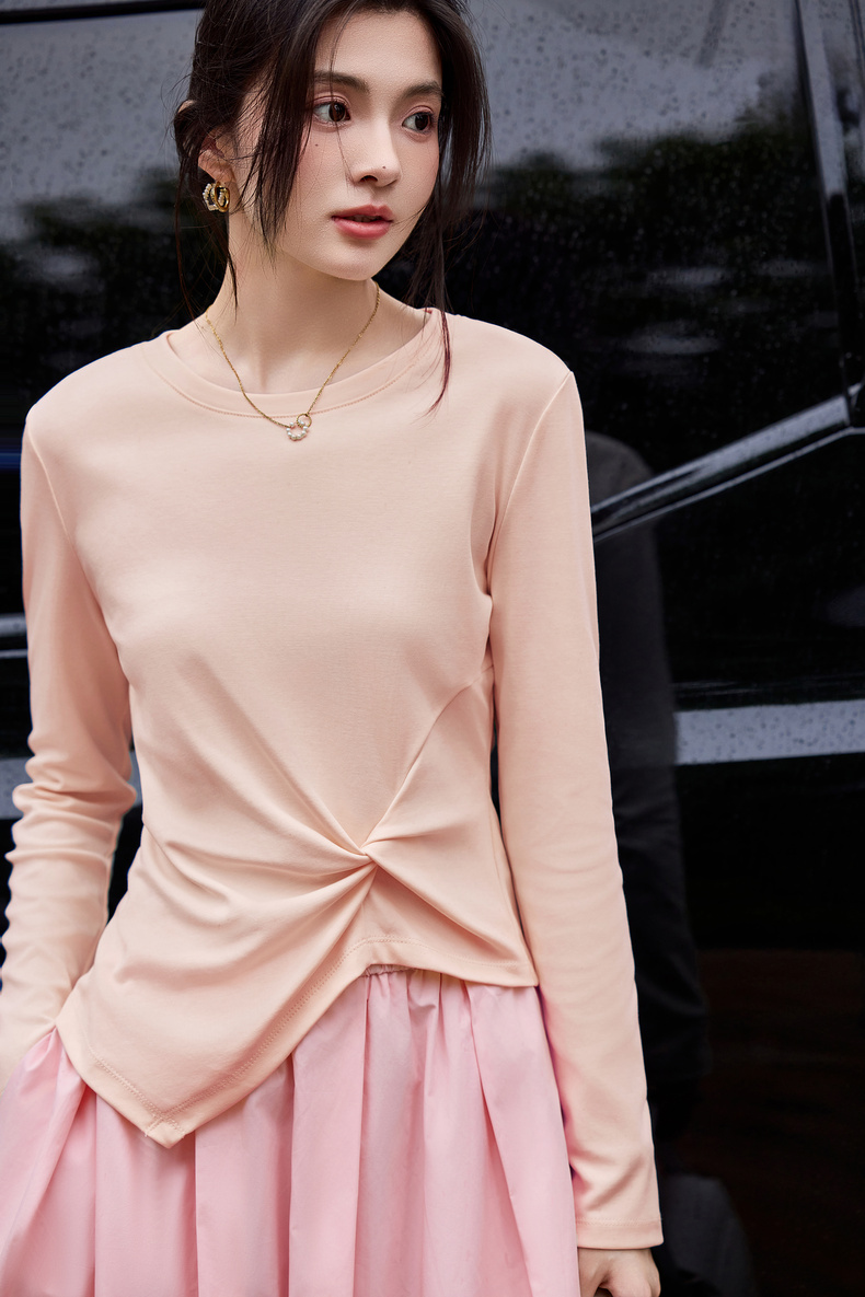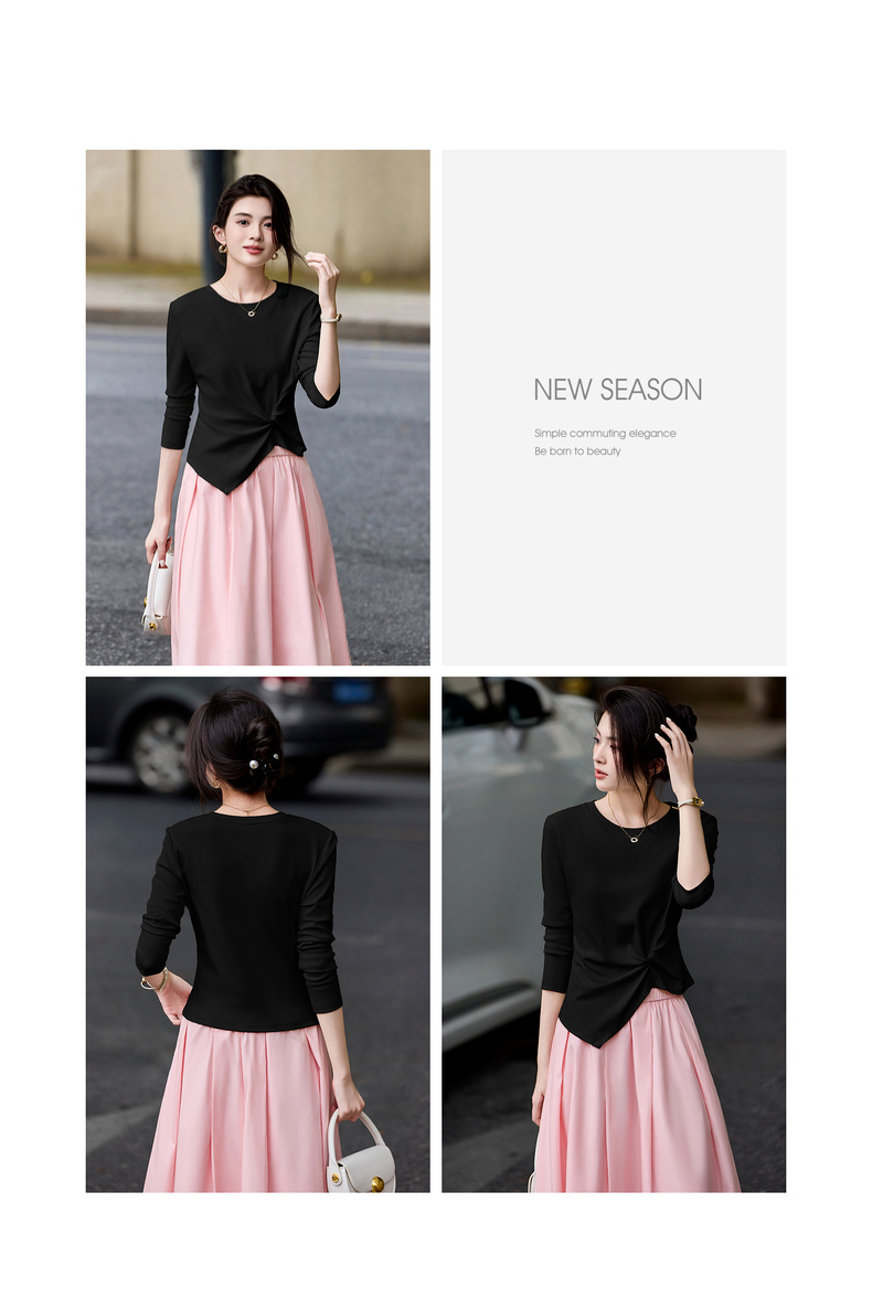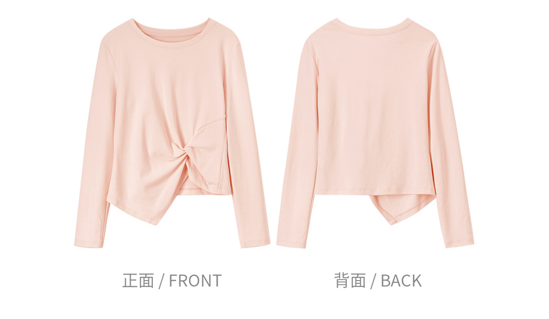【内购】【立裁扭结】简约通勤圆领不规则下摆100%精纺棉长袖T恤-153TA2337