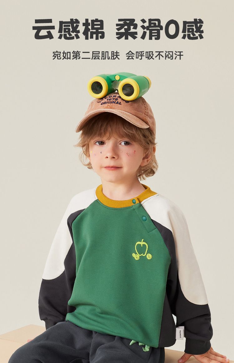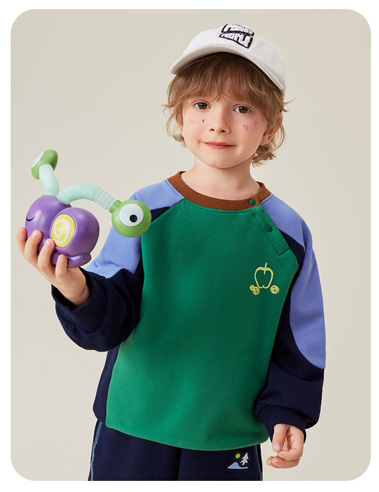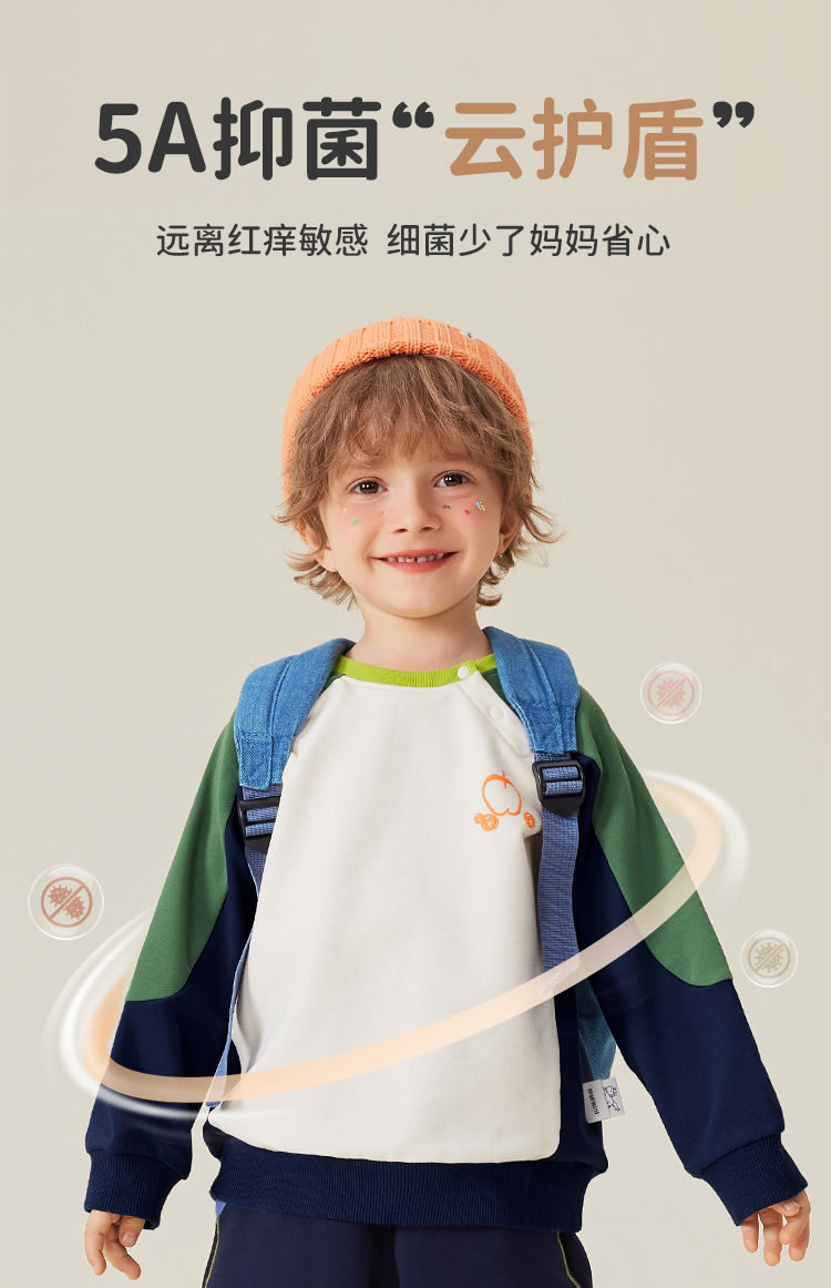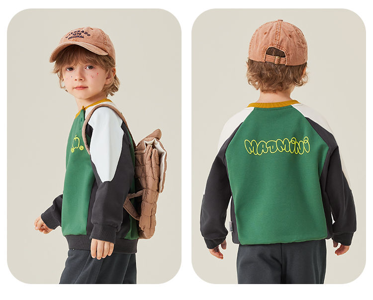 【5A抑菌】【90-140】【MQDmini】男童春秋卫衣撞色圆领上衣