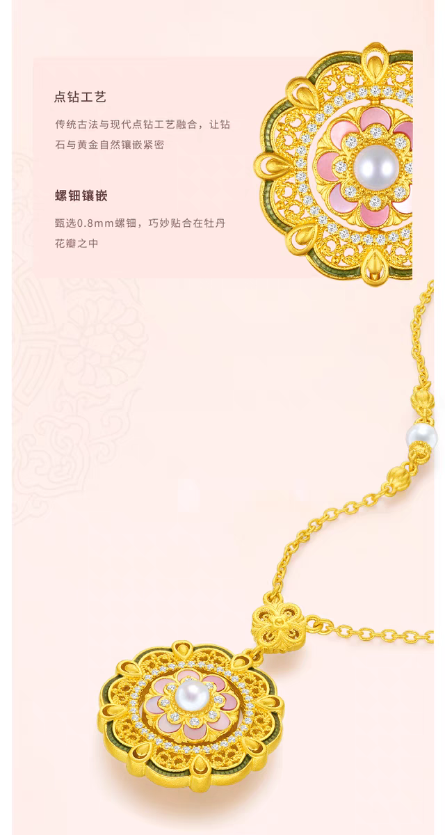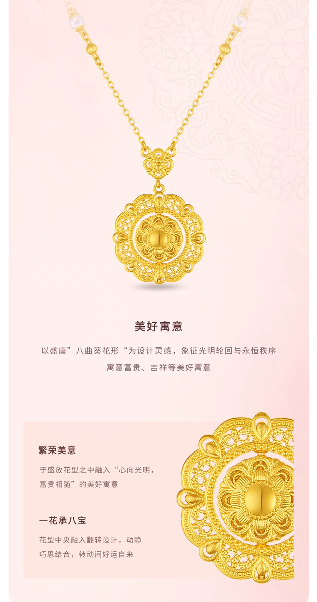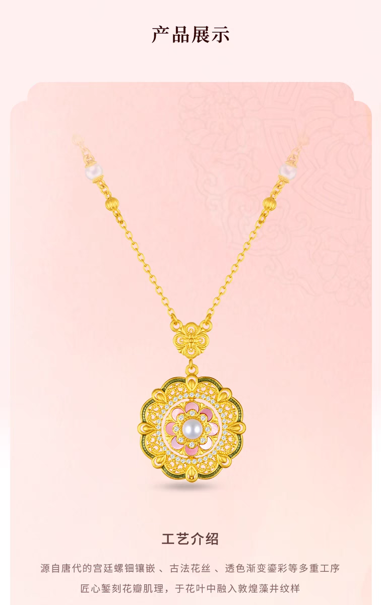 【老凤祥】盛唐风华·花花唐八宝繁花钻石古法黄金项链,足金999,老凤祥专属系列,可到我们老凤祥门店自取