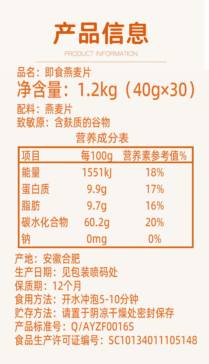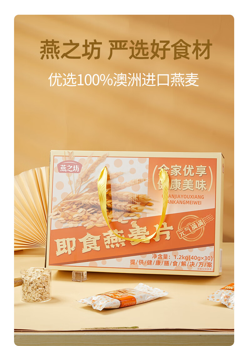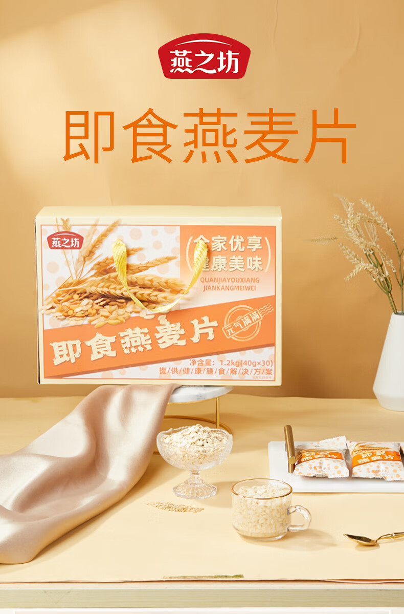 燕之坊即食燕麦片礼盒1.2kg 营养早餐饱腹代餐 年货节日礼盒五谷杂粮