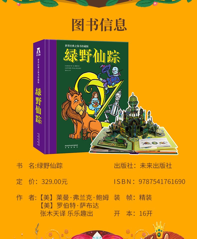【积分兑换】乐乐趣《绿野仙踪》经典儿童绘本立体书精装学生阅读送礼礼物