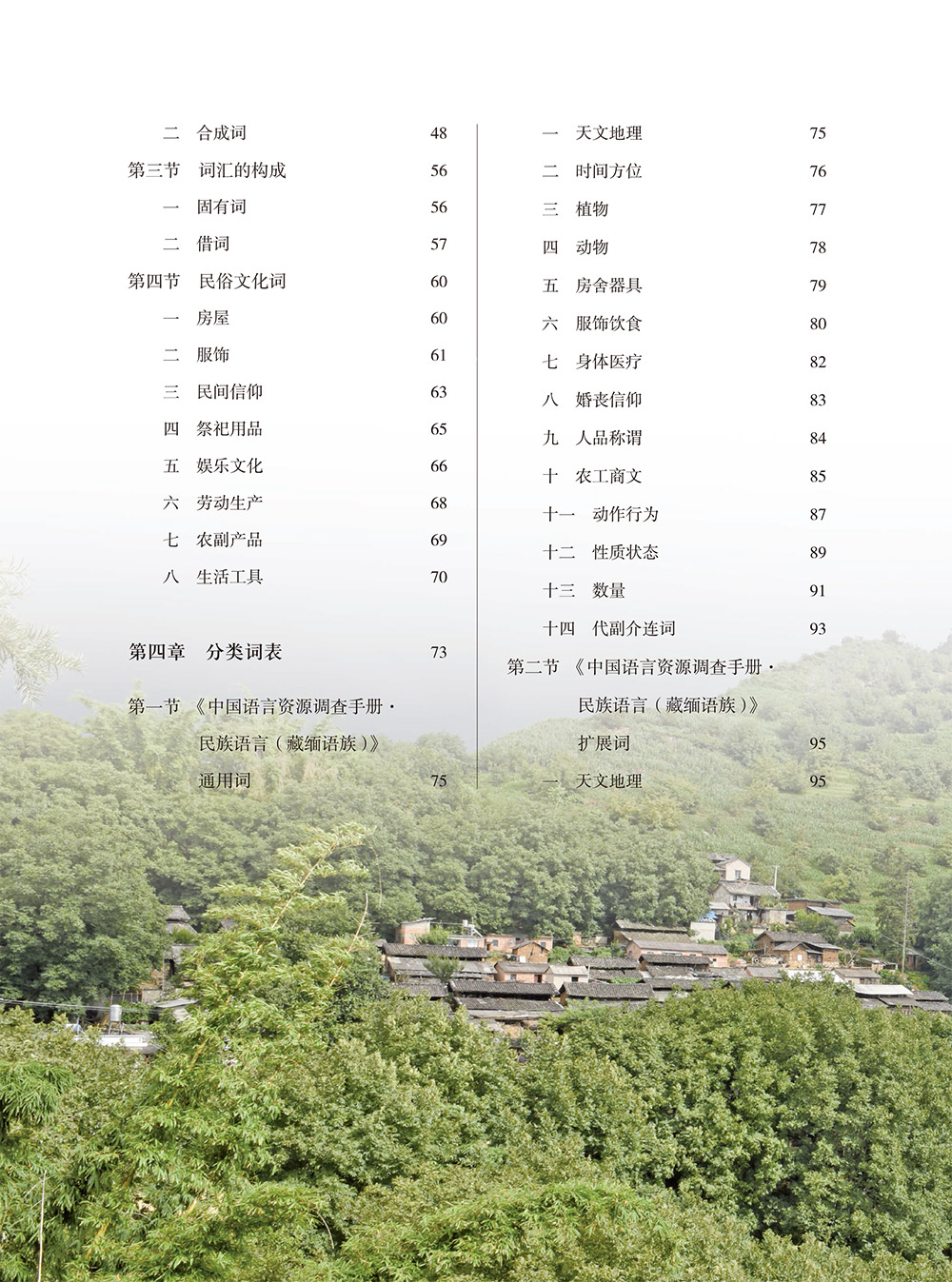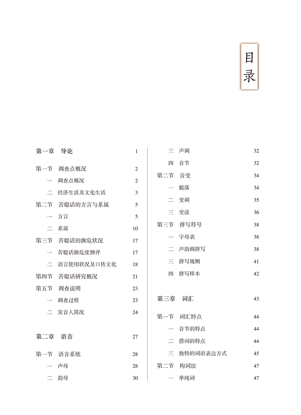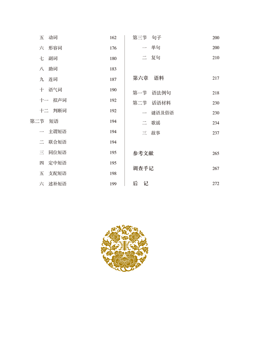 本书是国家语委科研规划项目“民族语言调查•云南拉祜语苦聪话”(YB1624A106)的主要成果之一。记录的苦聪话以新平县漠沙镇小坝多村为记音点。主要从语音、词汇和语法三个方面进行较全面、深入的记录和探究。语音部分对苦聪话和拉祜语方言进行比较,词汇和语法部分重点对苦聪话具有的特点进行分析。民俗文化词以图文并茂的形式对词汇进行释义,并对苦聪人的自然地理情况、文化习俗、语言使用现状做简要介绍,对苦聪话濒危状况进行了分析。