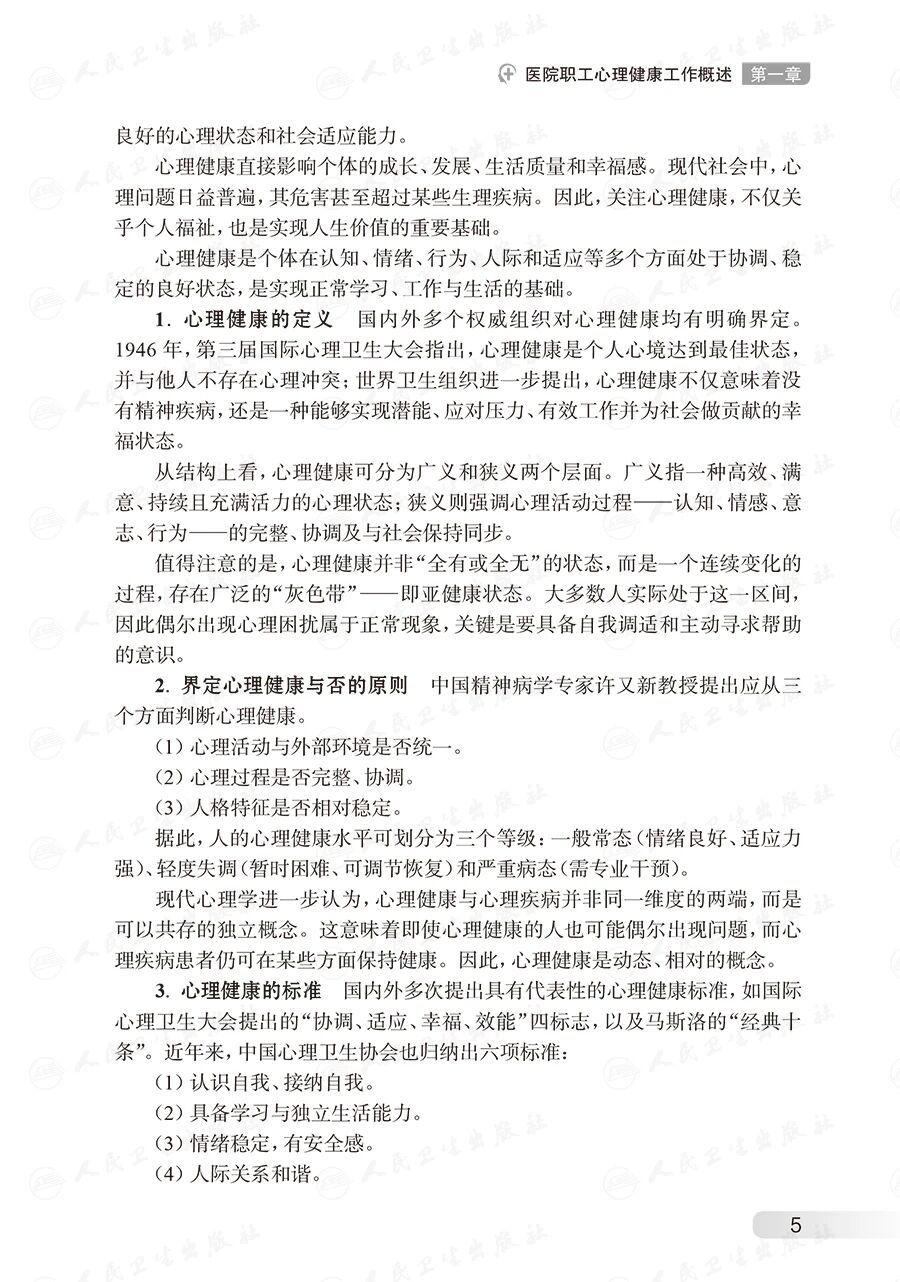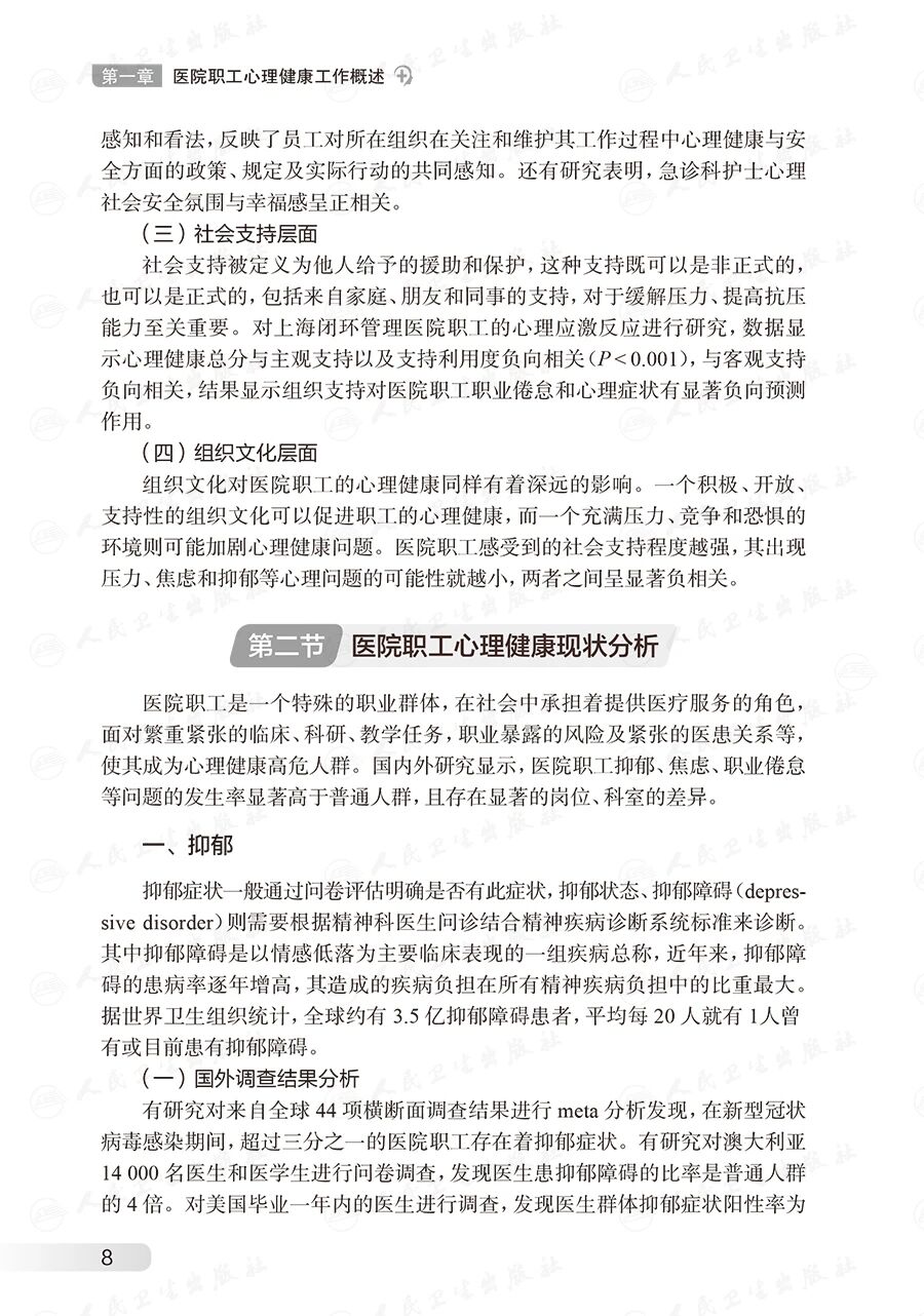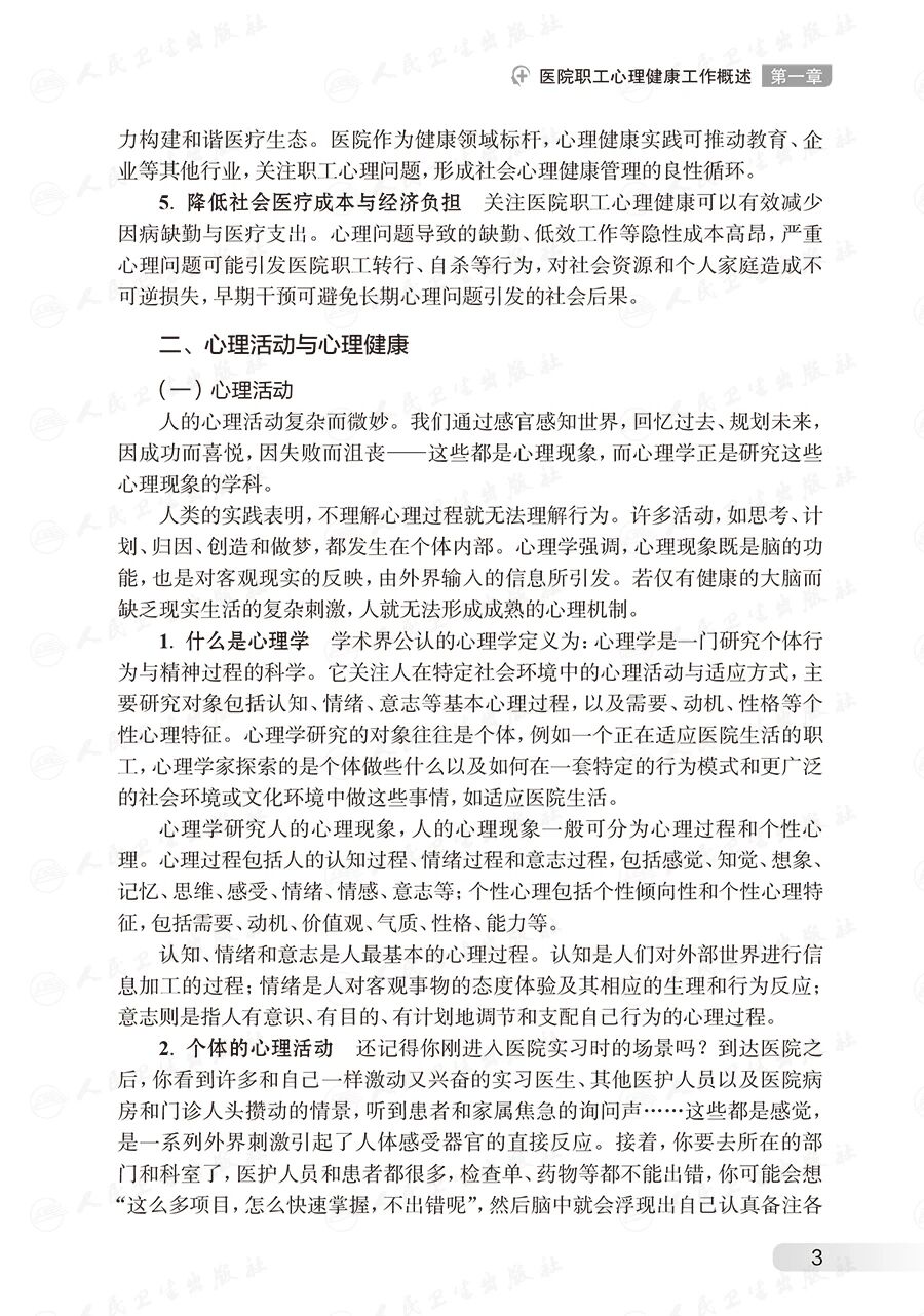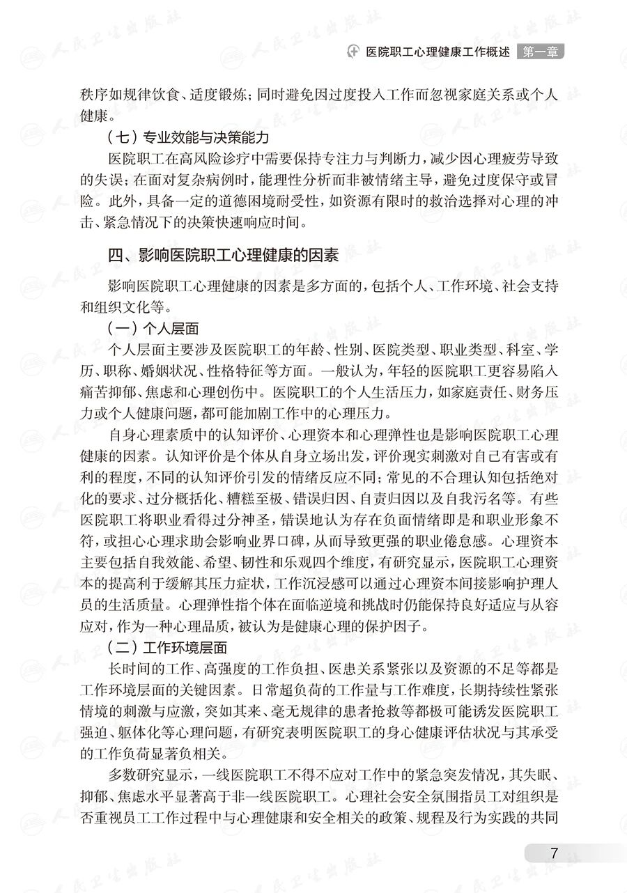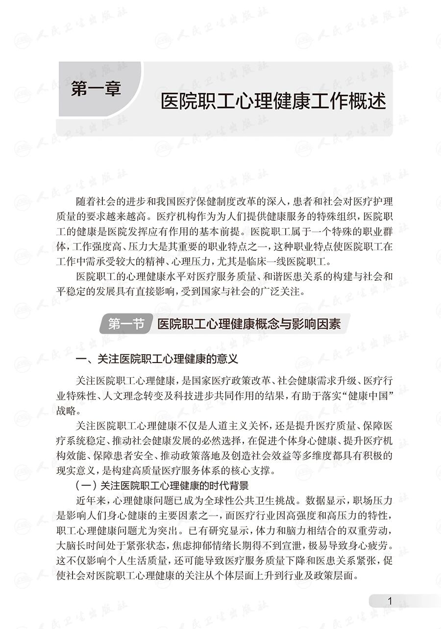 内容全面,针对性强:涵盖心理健康工作的基础理论、评估、干预、治疗、预防等多个方面,形成完整的知识体系;同时针对医院职工这一特定群体,提供针对性强的解决方案。