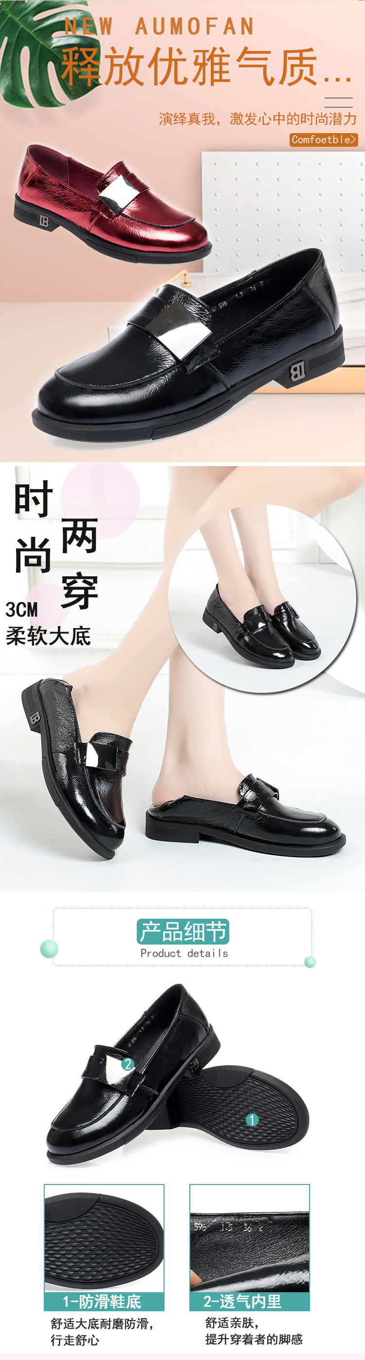 新款真皮亮女单皮鞋乐福鞋软底软面驾车郊游 KQ-SX598