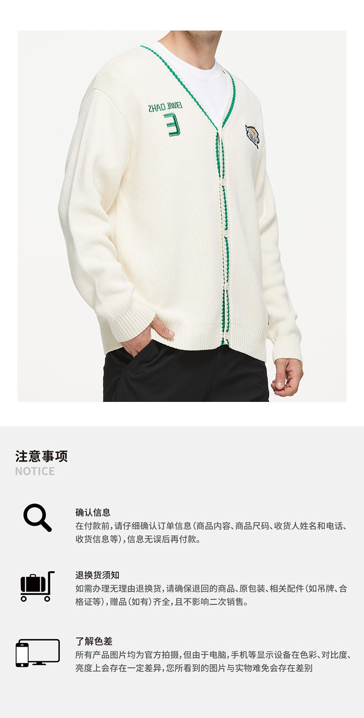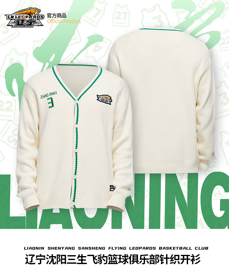 【官方正版】辽宁飞豹男篮 | 球员印号纪念秋冬休闲提花队徽刺绣针织开衫