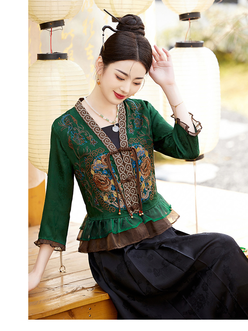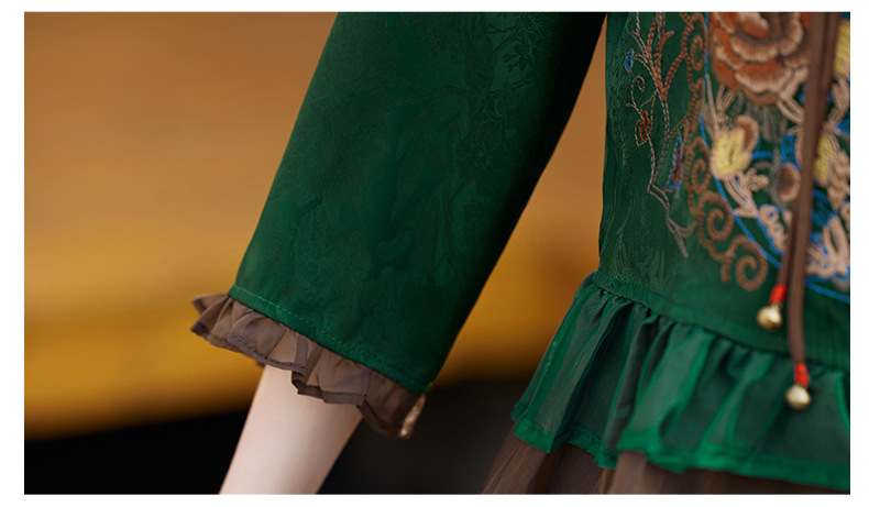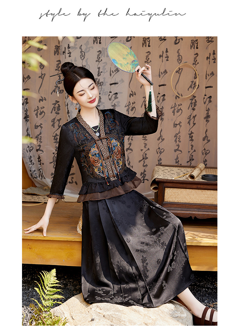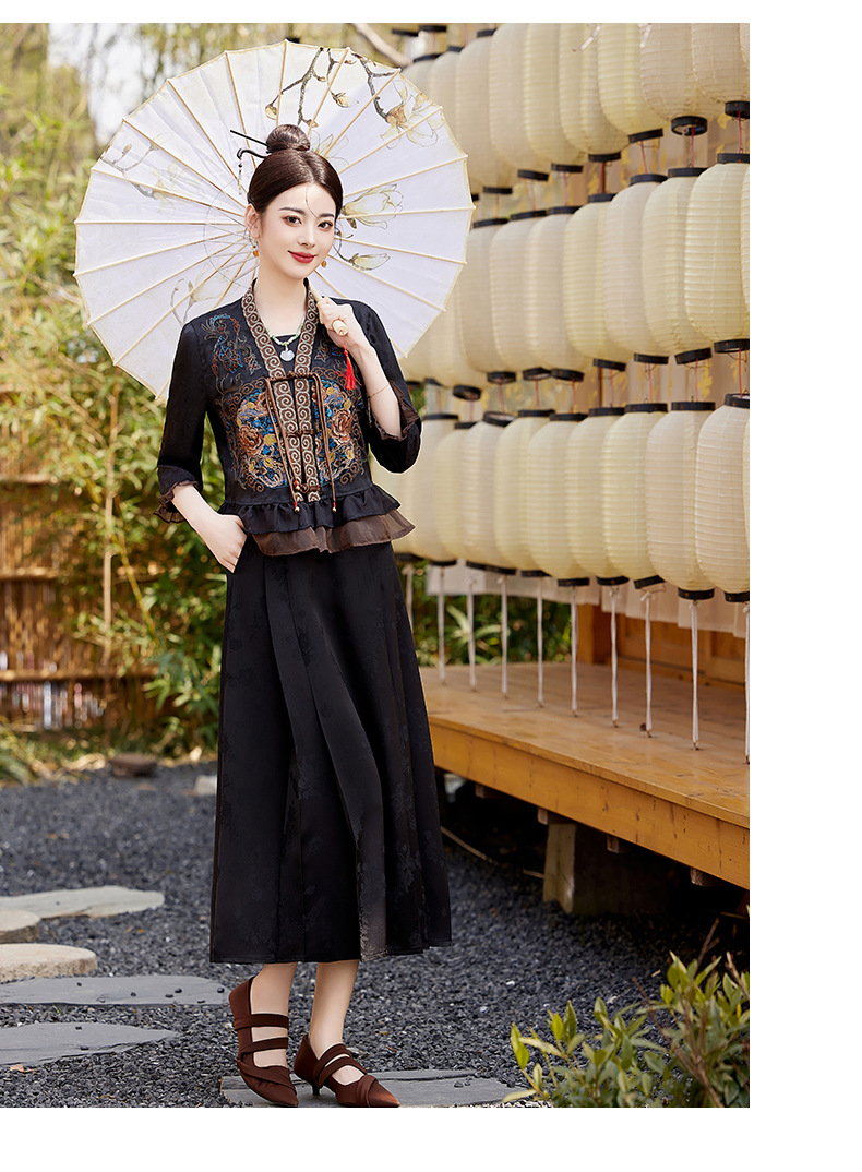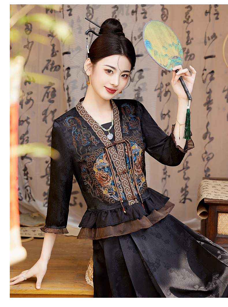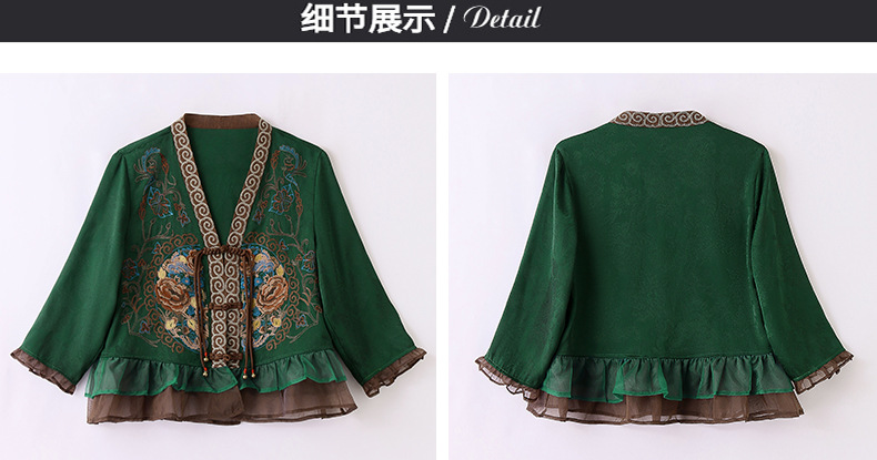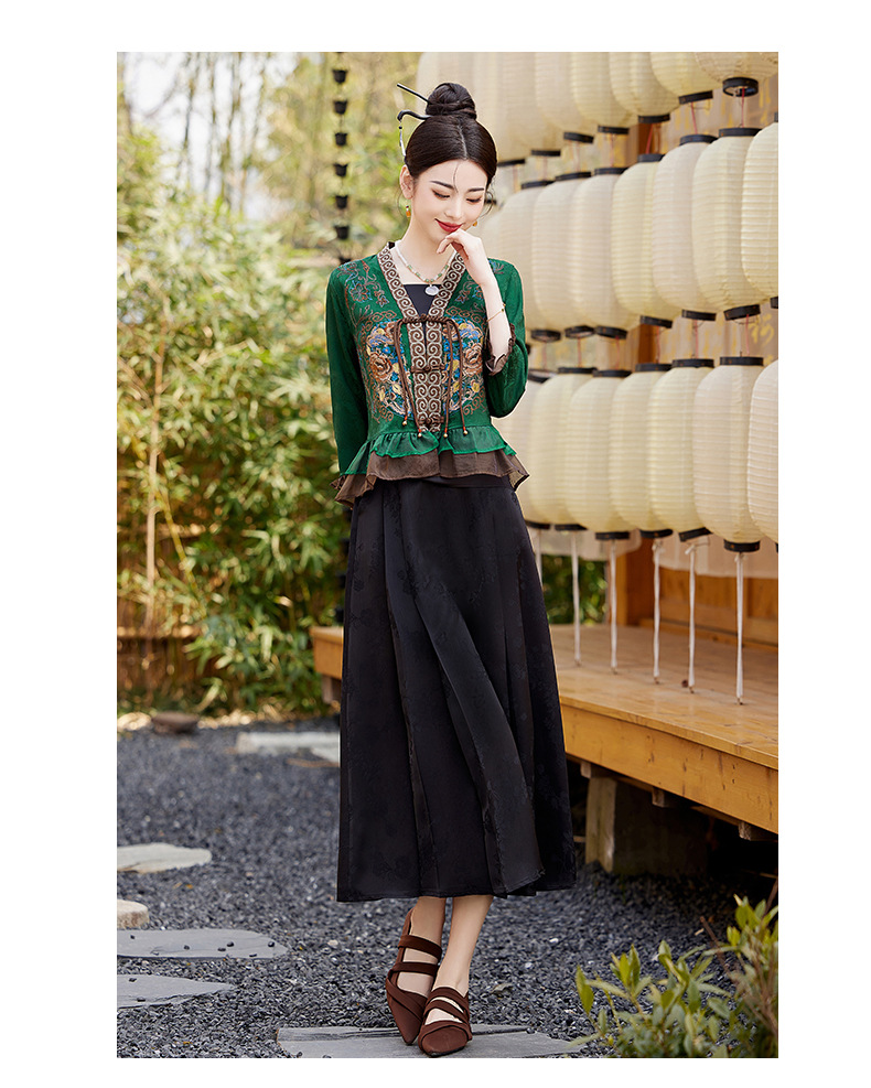中式改良旗袍上衣女春秋中国风复古立领气质盘扣印花刺绣长袖衬衫 YX2051