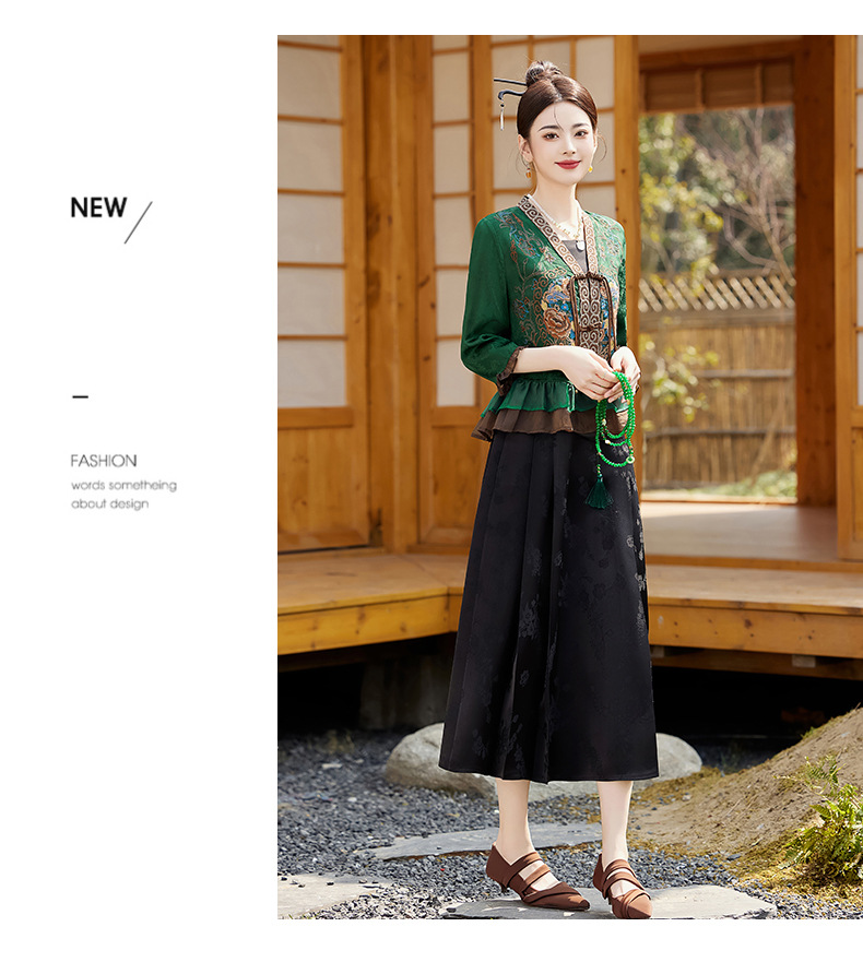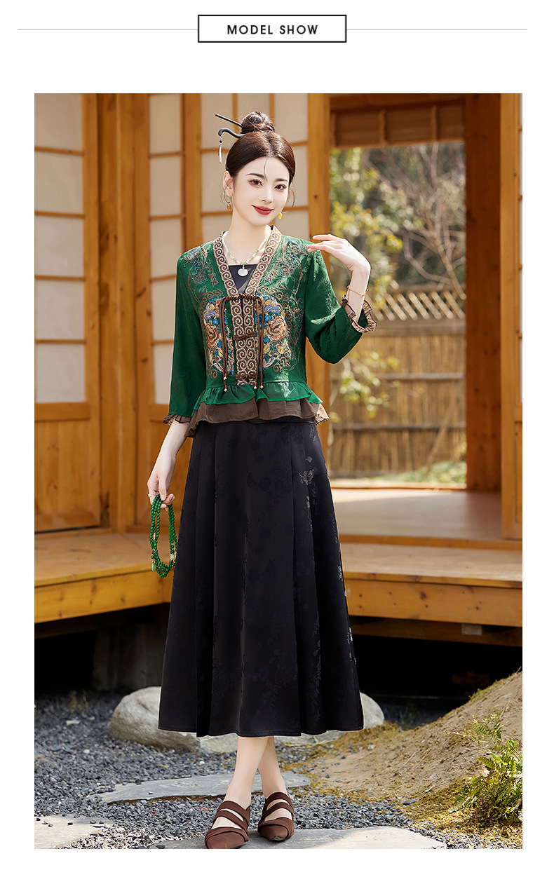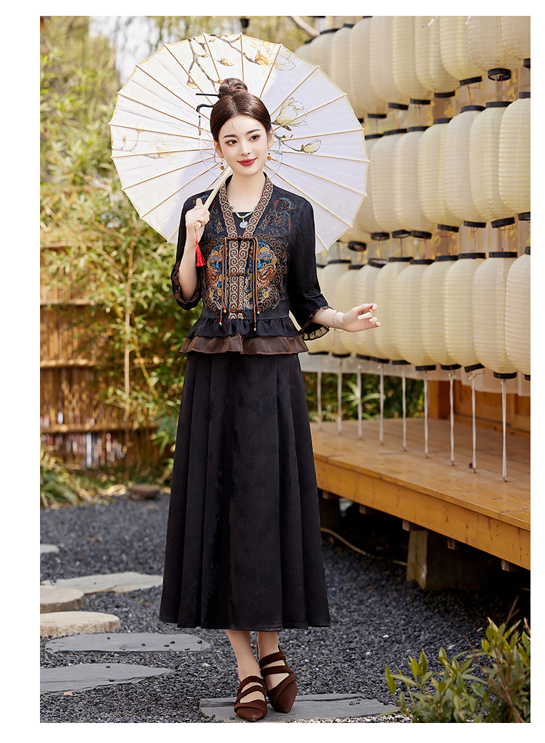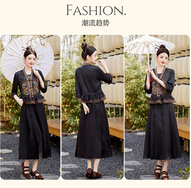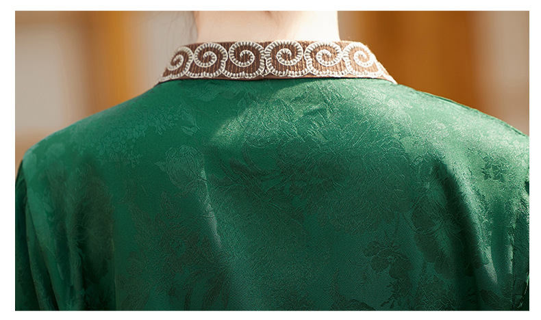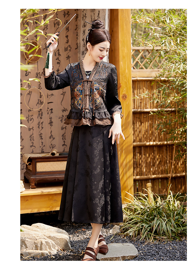 中式改良旗袍上衣女春秋中国风复古立领气质盘扣印花刺绣长袖衬衫 YX2051
