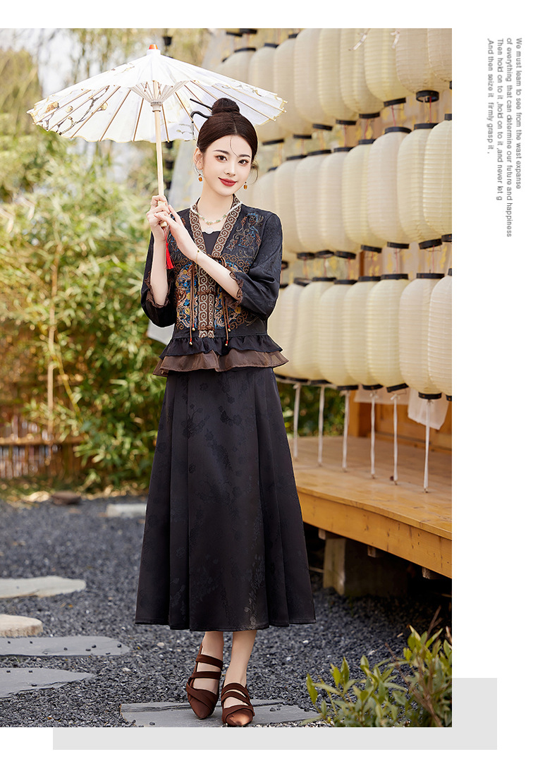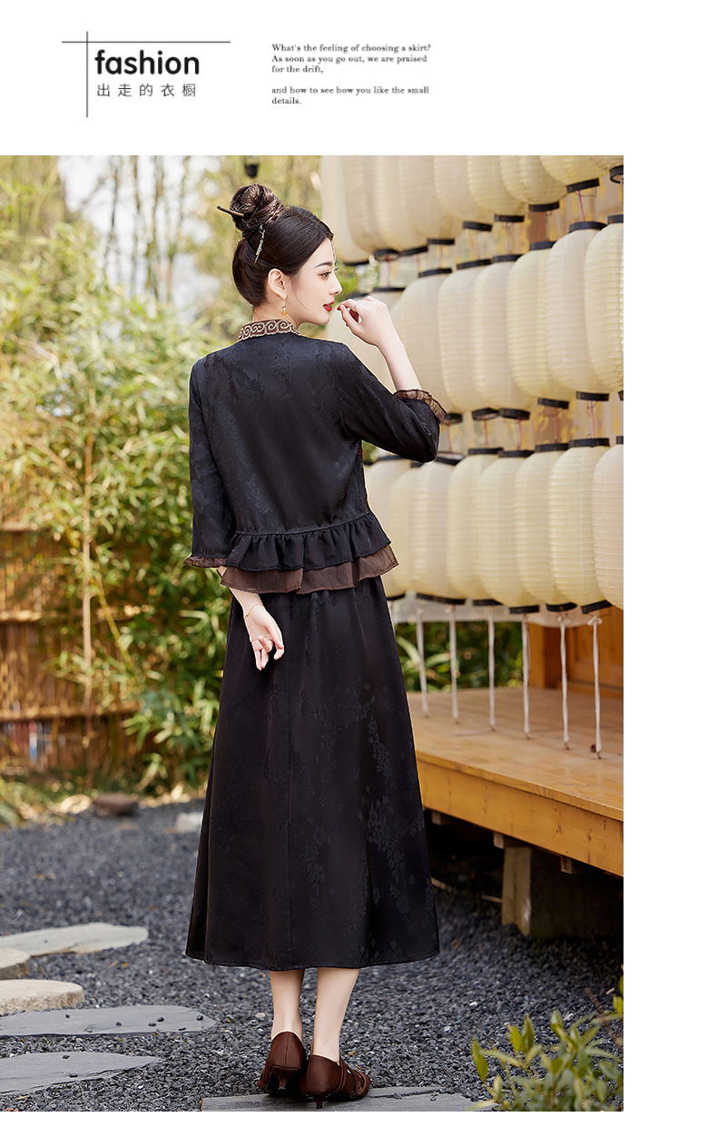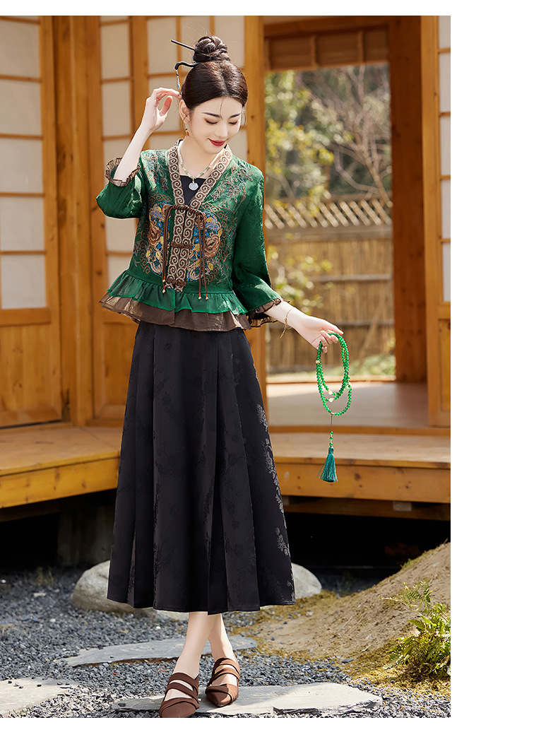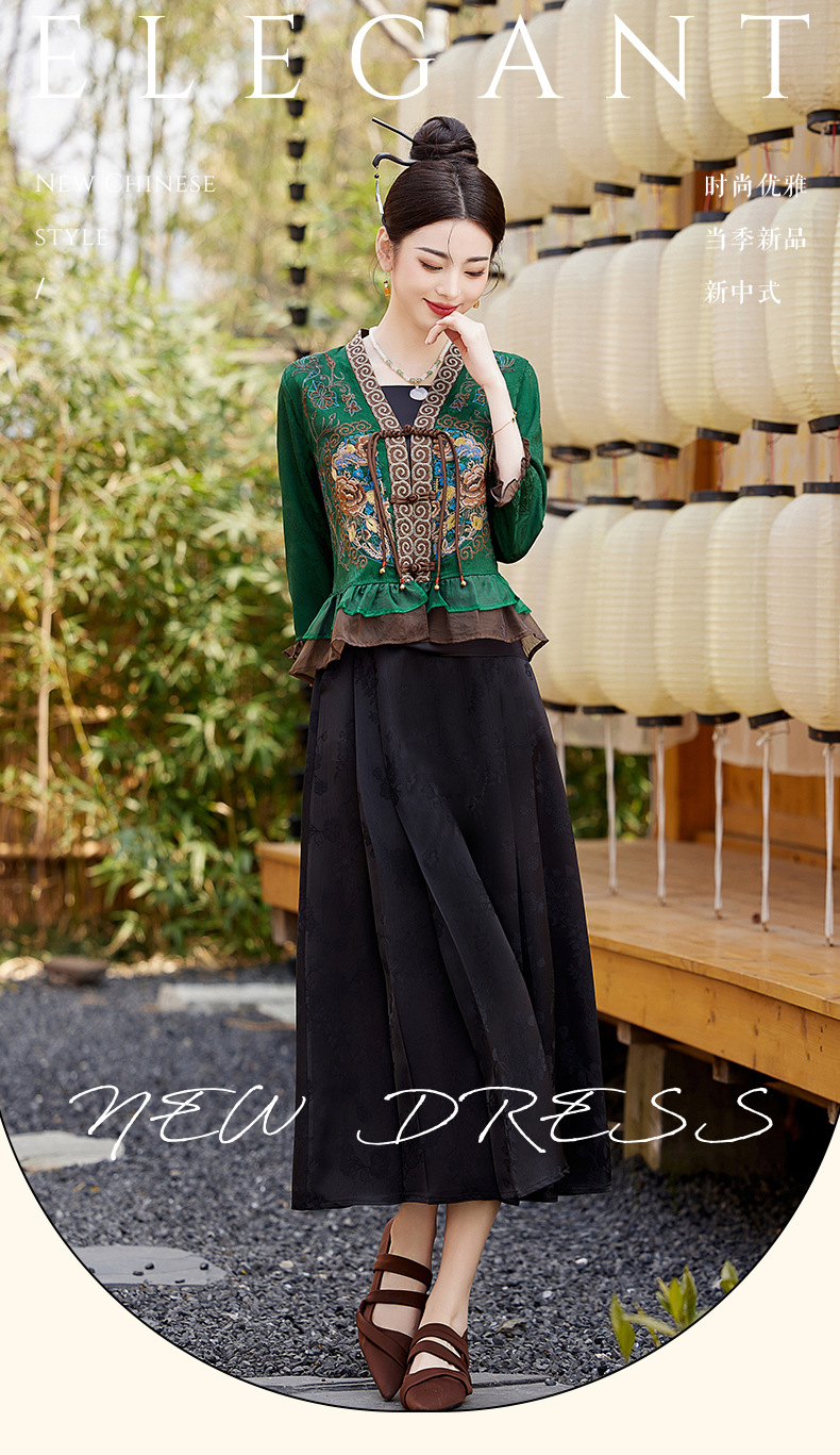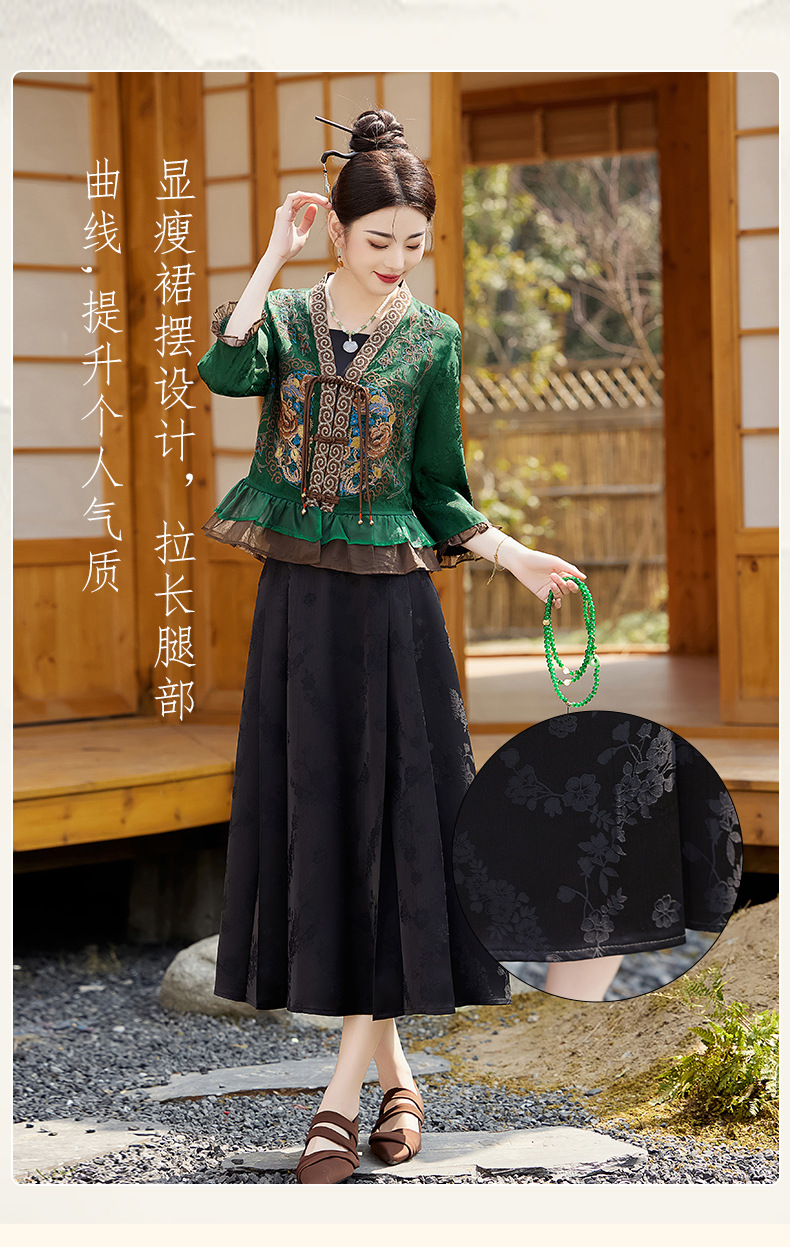 中式改良旗袍上衣女春秋中国风复古立领气质盘扣印花刺绣长袖衬衫 YX2051
