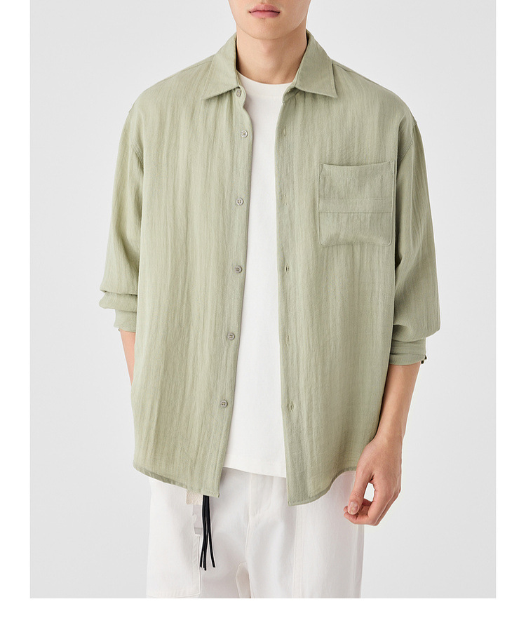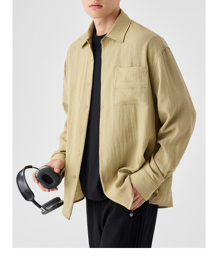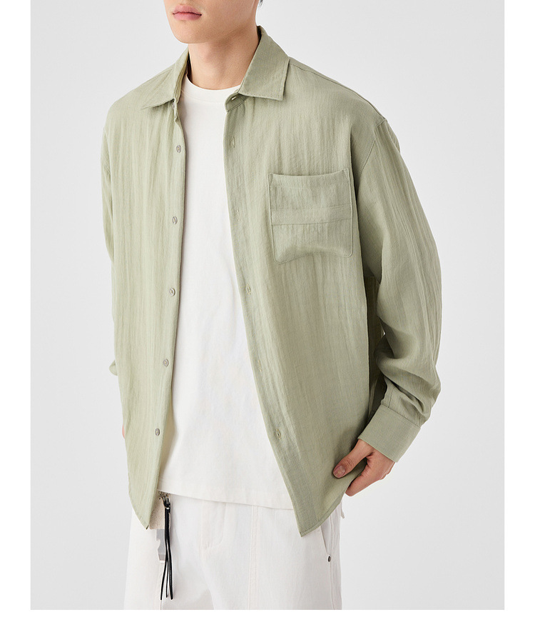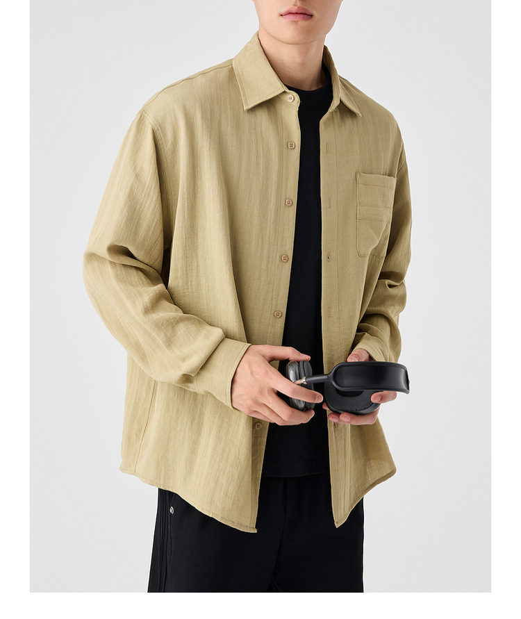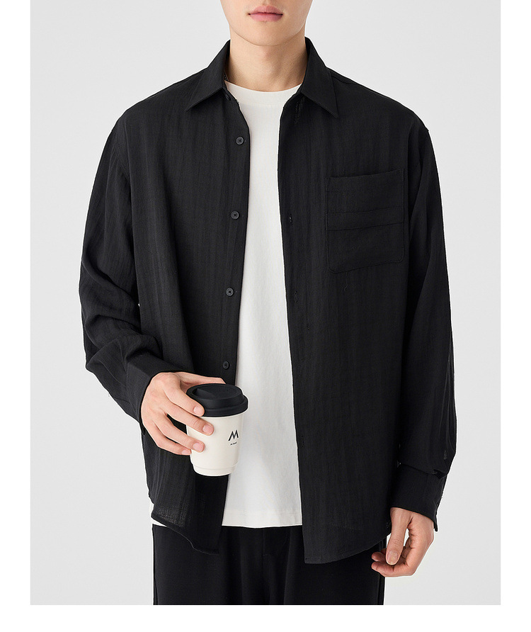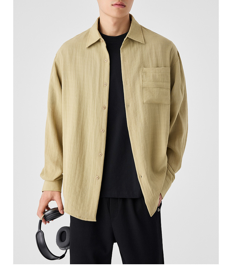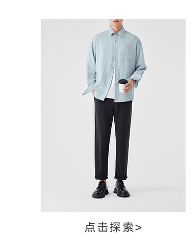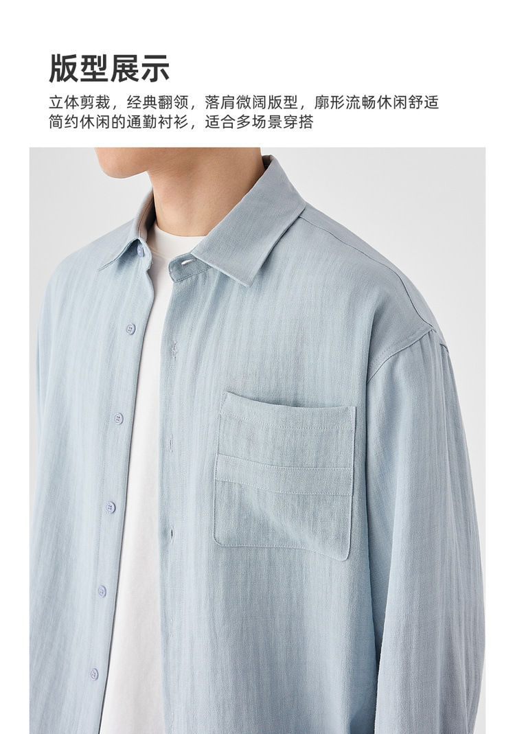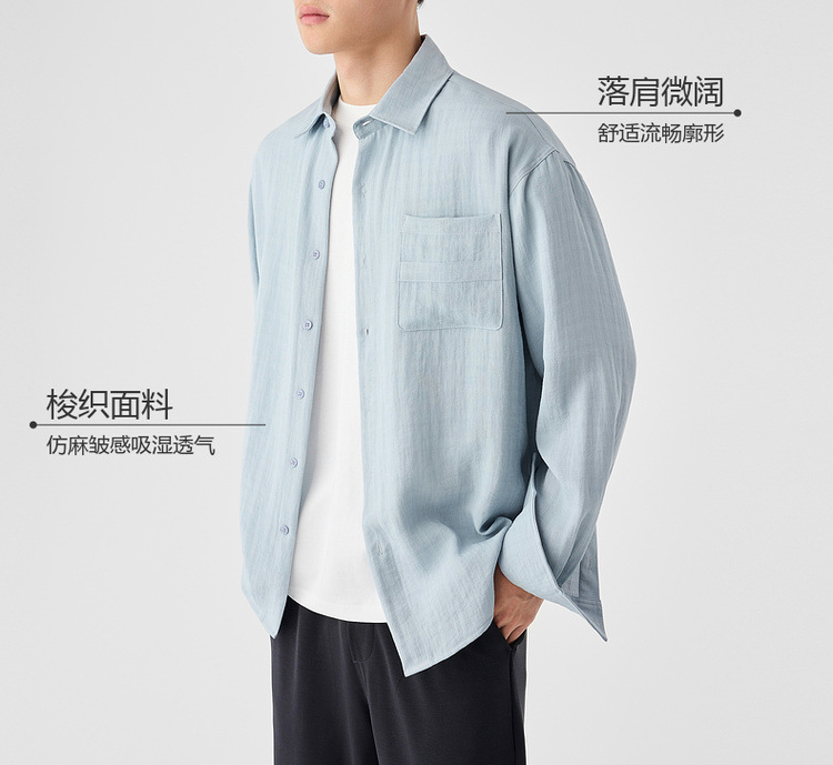 墨麦客男装仿麻皱感长袖衬衫男2025春新款纯色通勤男士衬衣50315