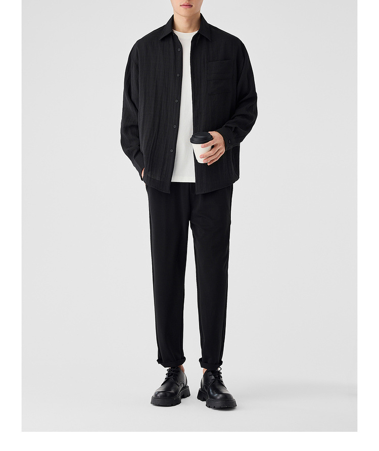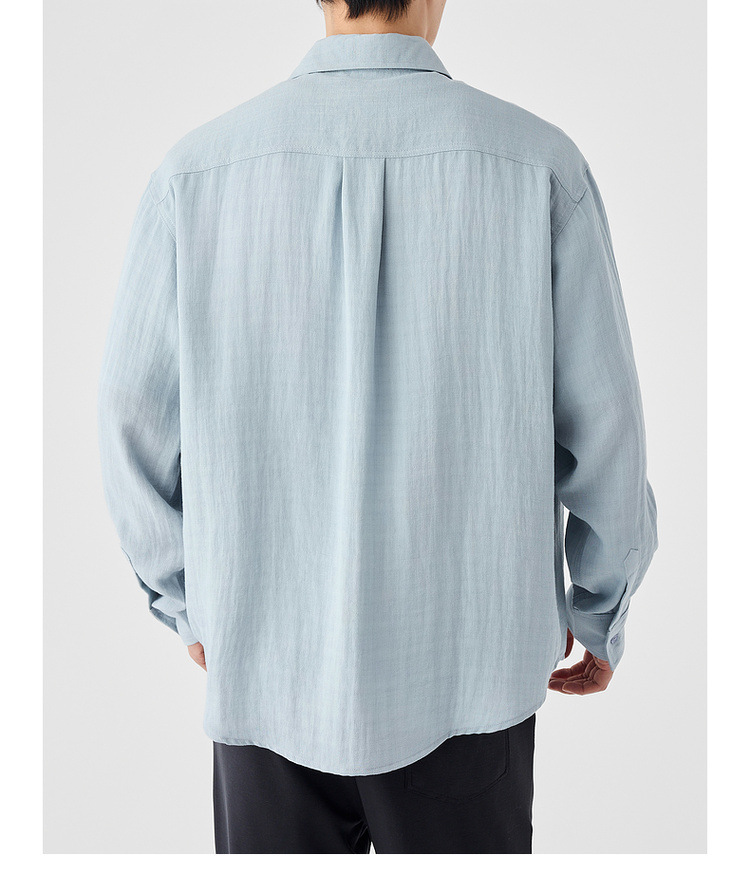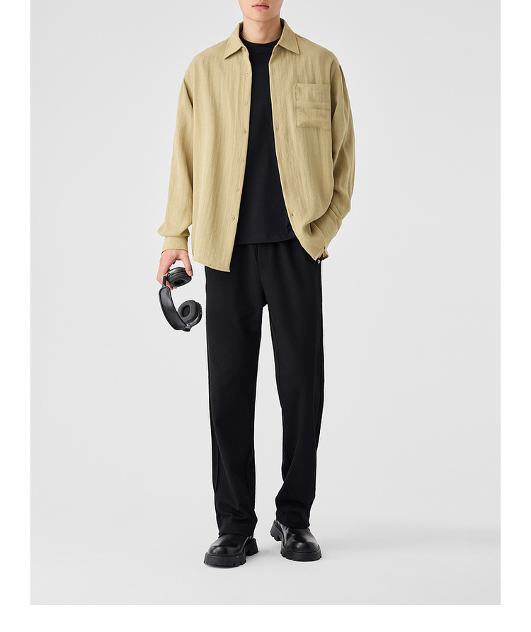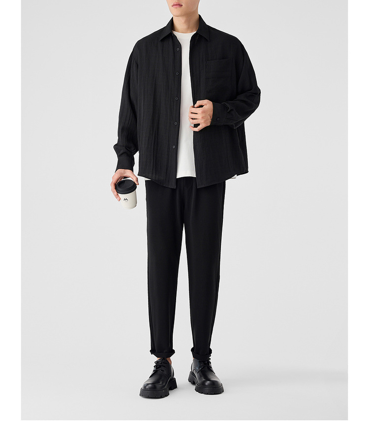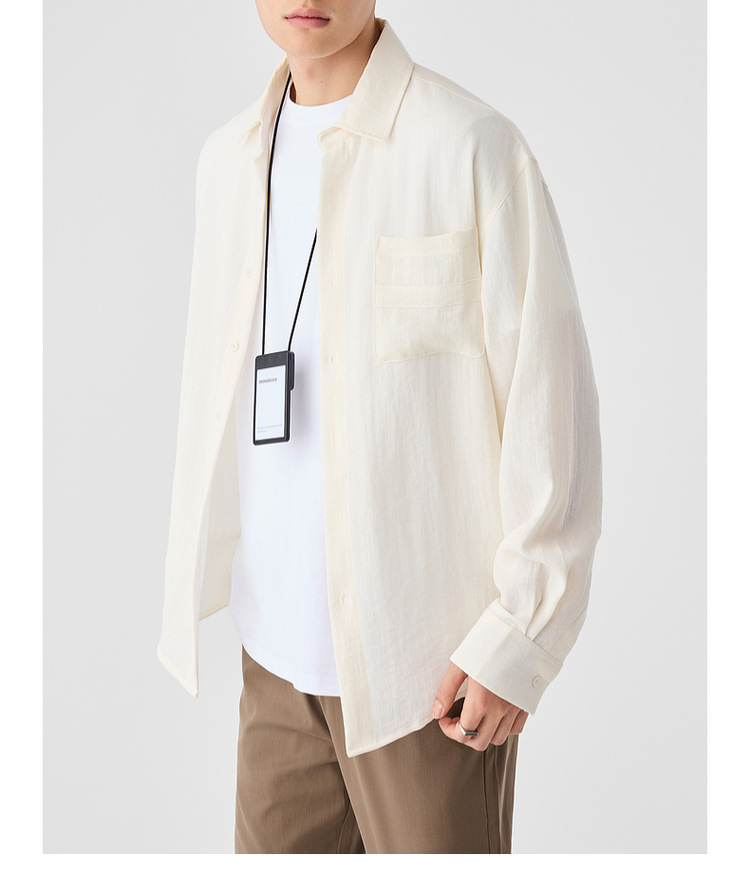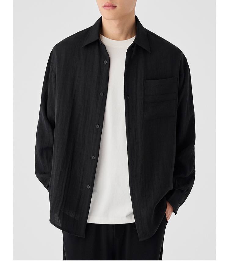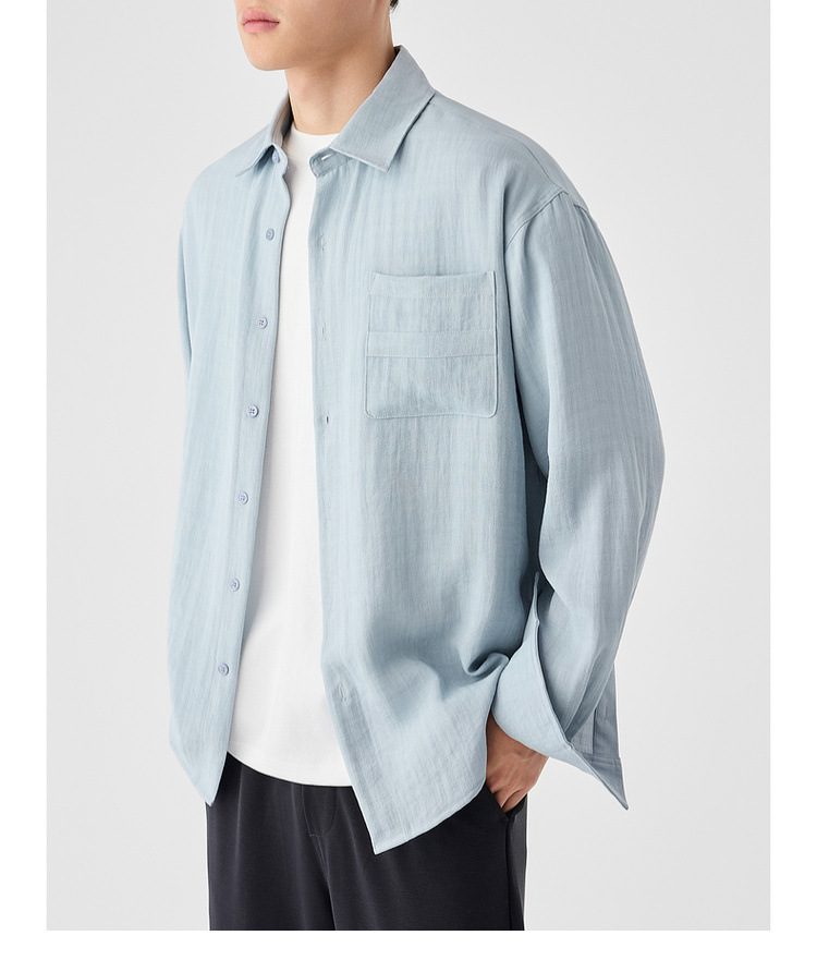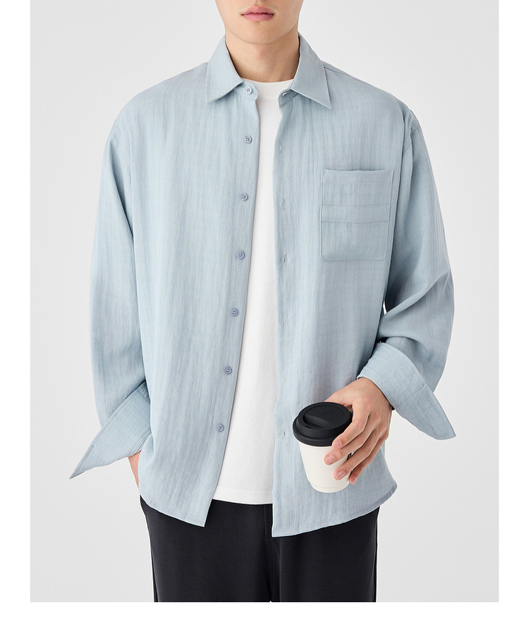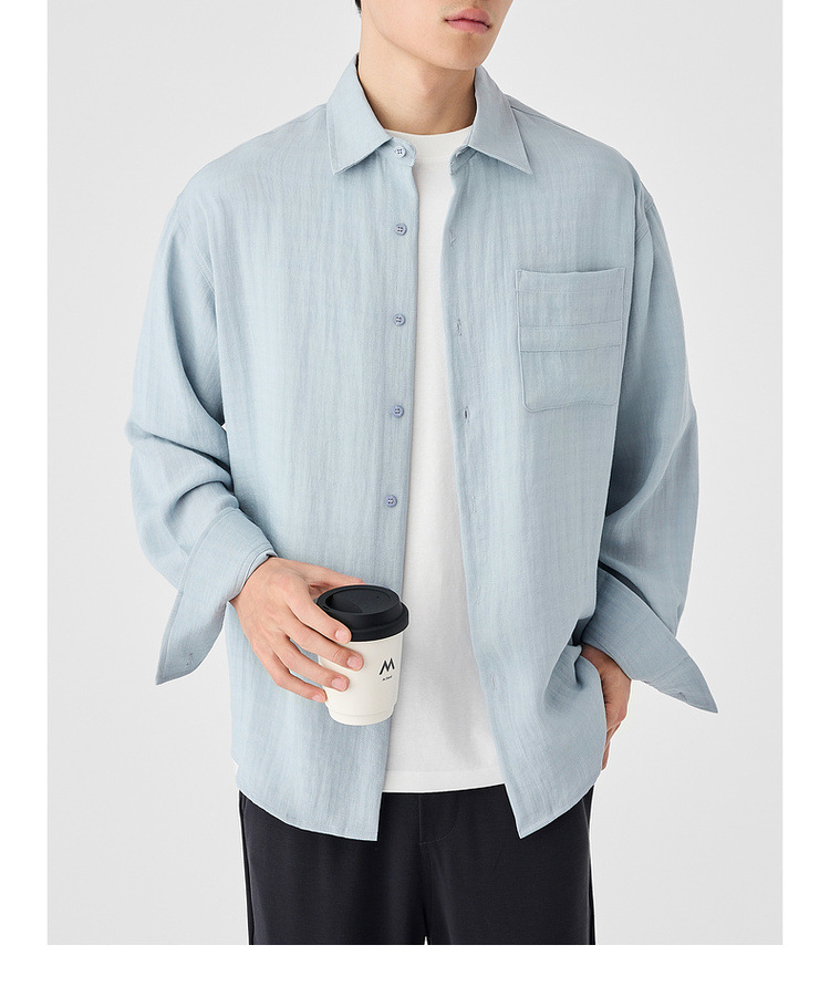 墨麦客男装仿麻皱感长袖衬衫男2025春新款纯色通勤男士衬衣50315