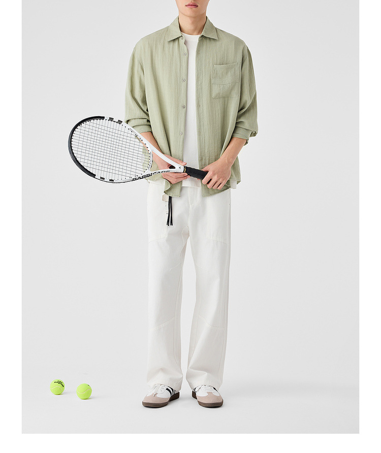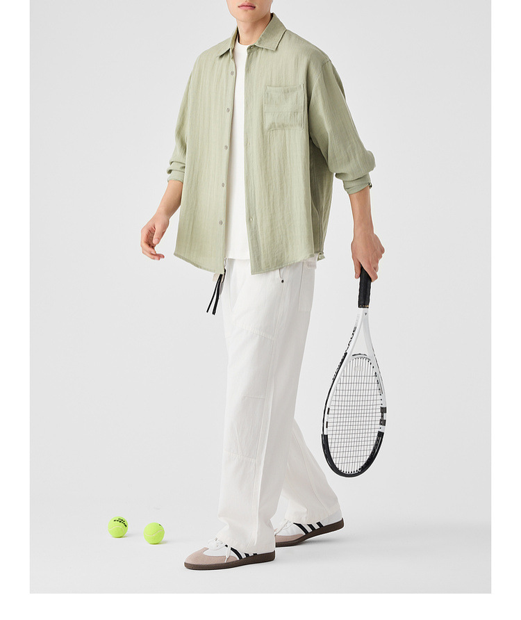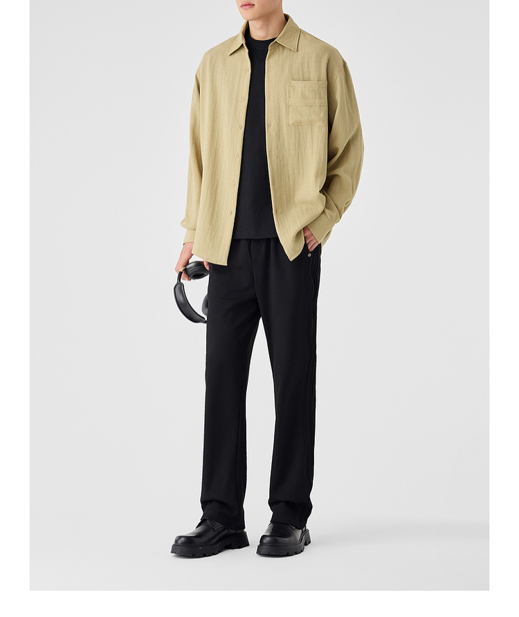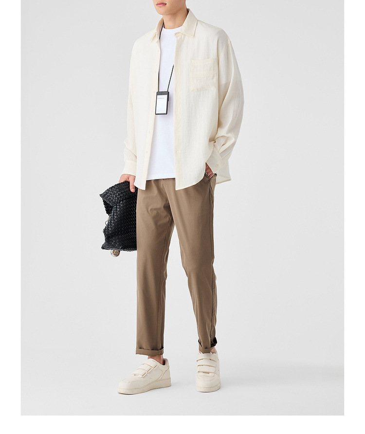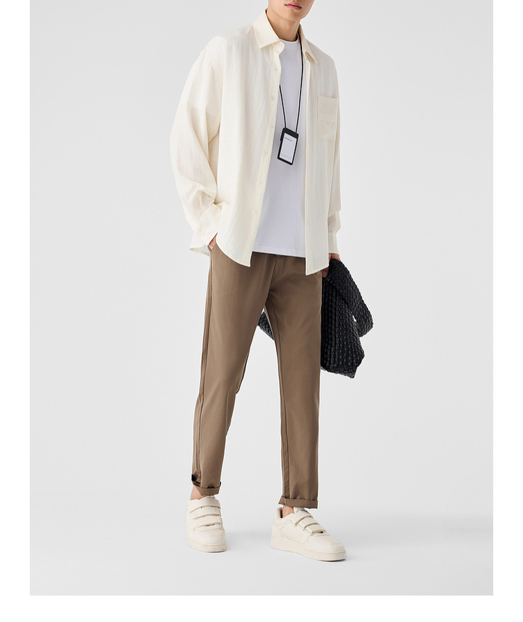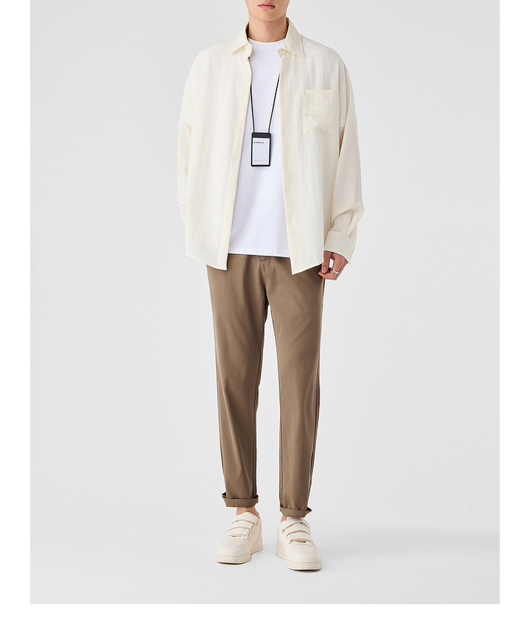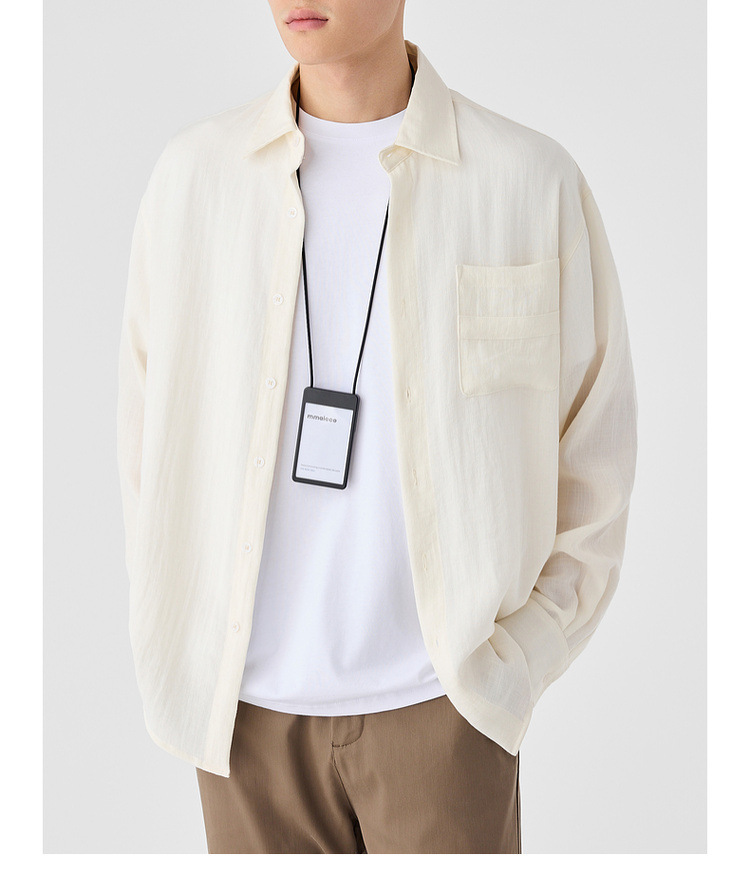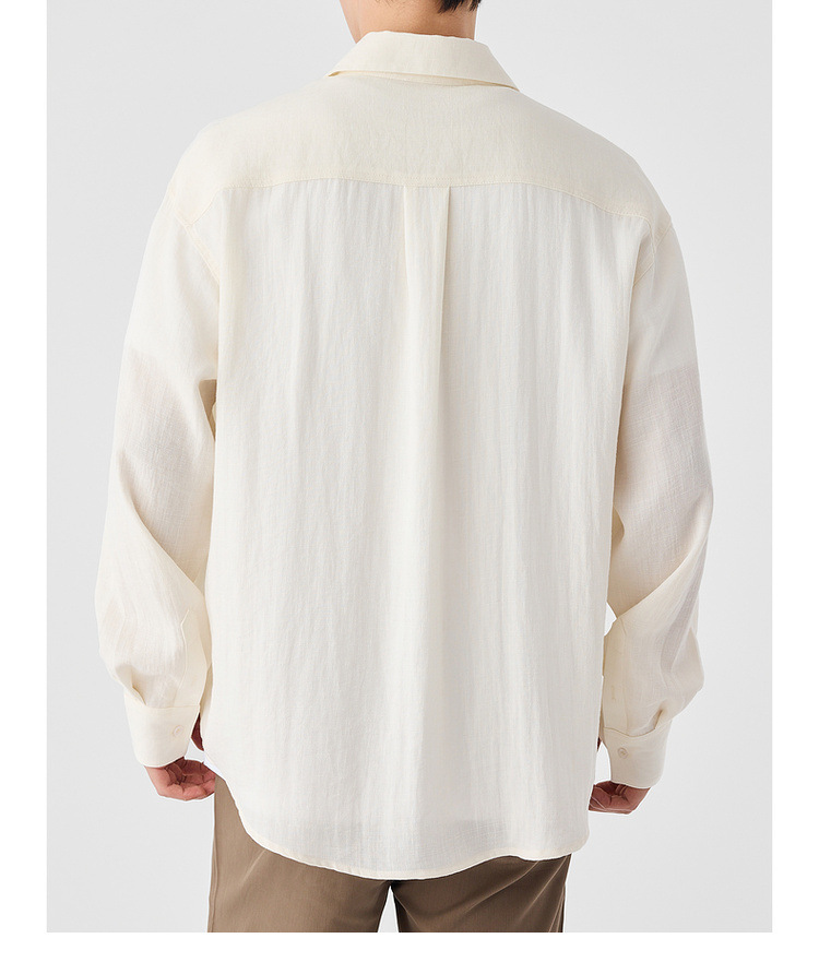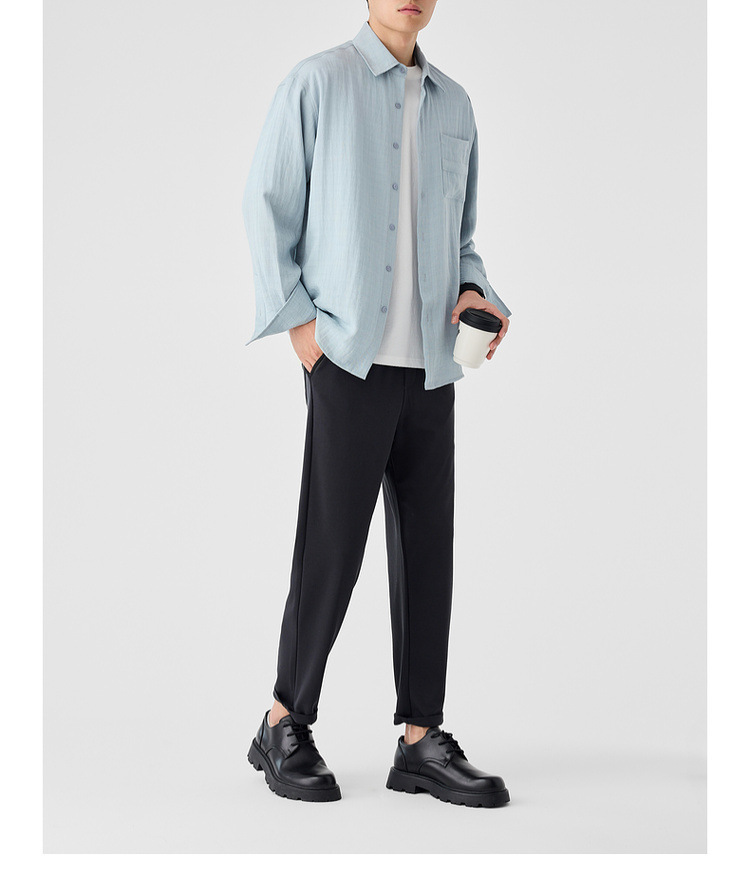 墨麦客男装仿麻皱感长袖衬衫男2025春新款纯色通勤男士衬衣50315