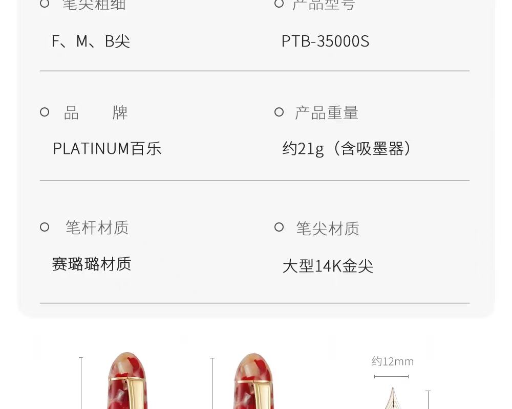 日本PLATINUM白金PTB-35000S赛璐璐14K金红锦鲤钢笔