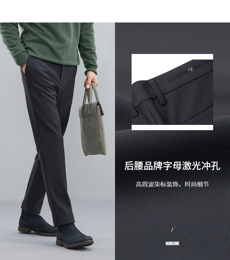 【高弹针织】柒牌男士休闲裤秋冬保暖长裤商务通勤职业百搭直筒裤 125H70720