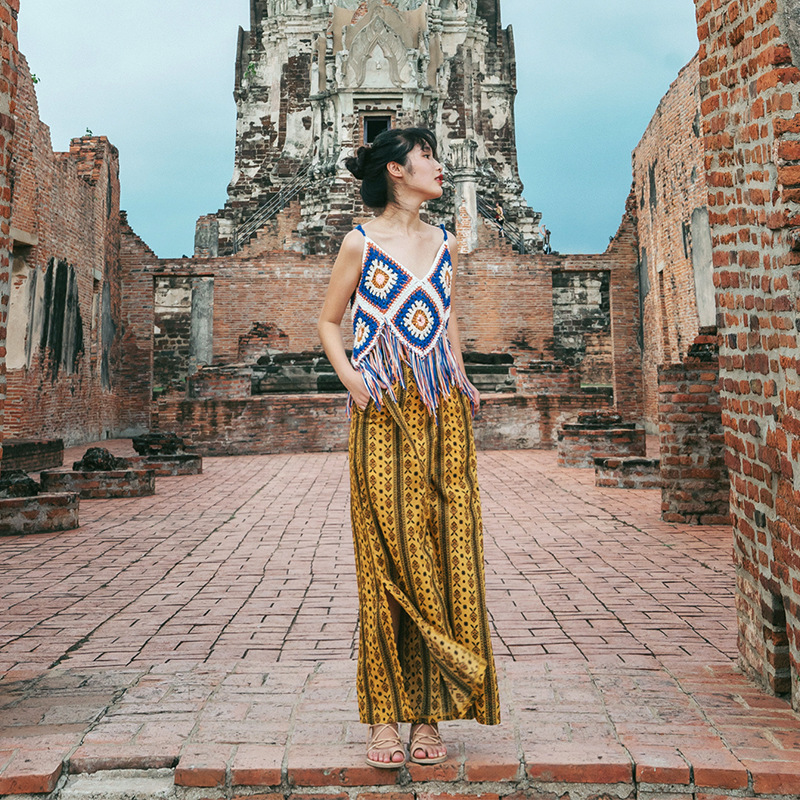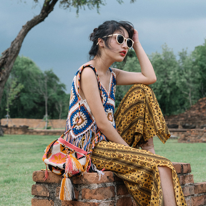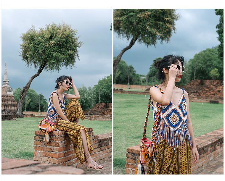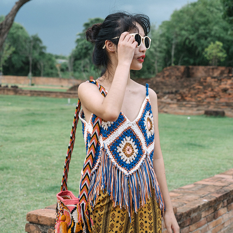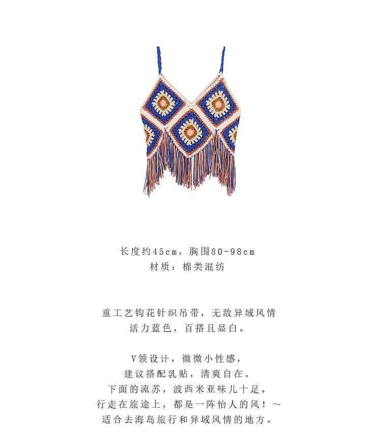 【旅游穿搭民族风】流苏吊带镂空针织背心 波西米亚风上衣外搭