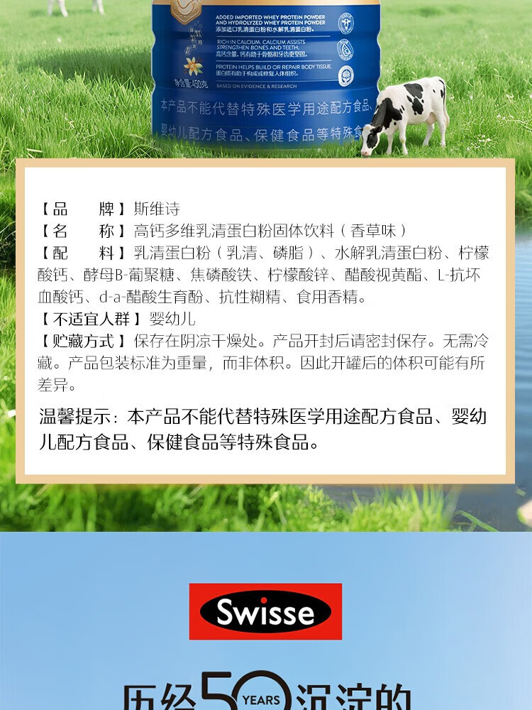 Swisse斯维诗TM乳清蛋白粉香草味450g/170002 补充蛋白质配方纯净香草口味