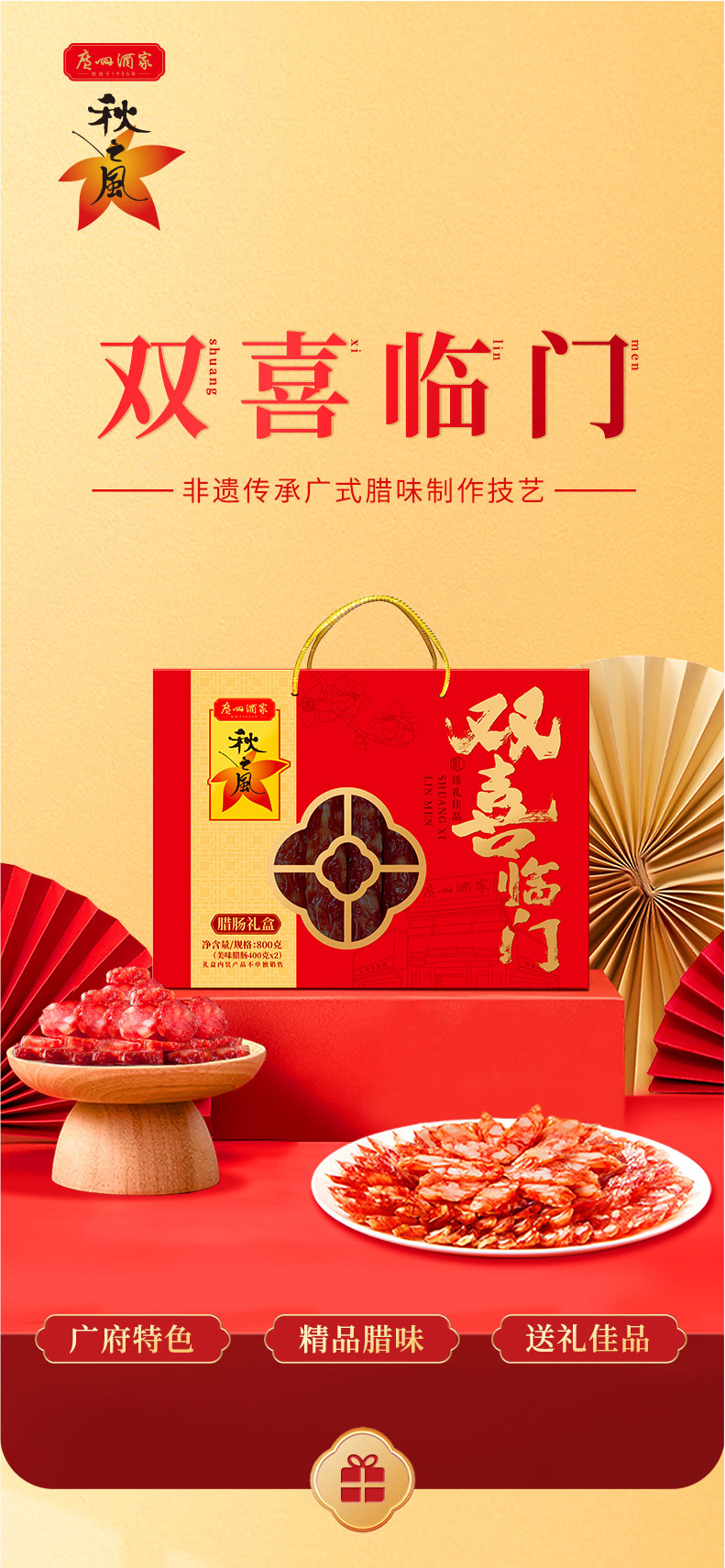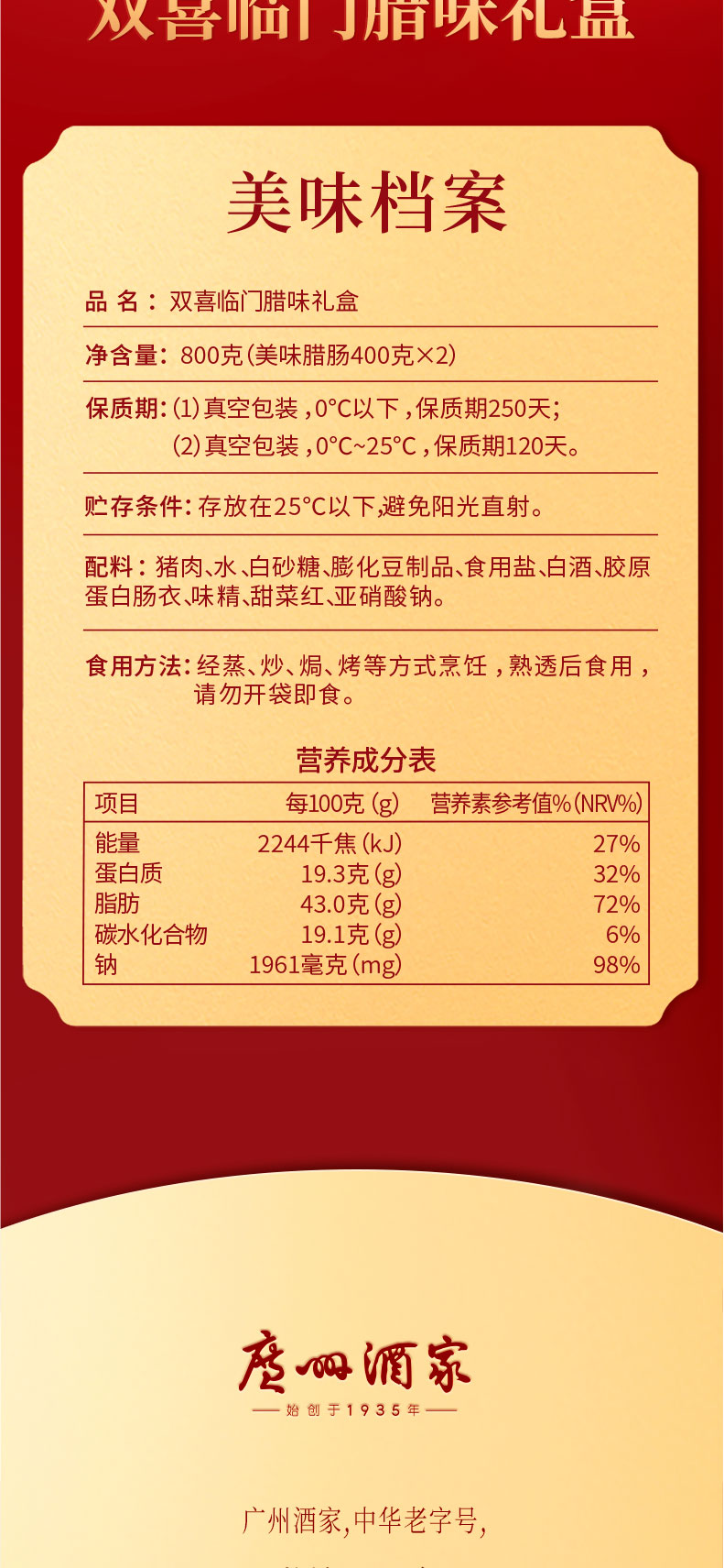 广州酒家 双喜临门腊味礼盒广式广味腊肠秋之风节日送礼团购福利