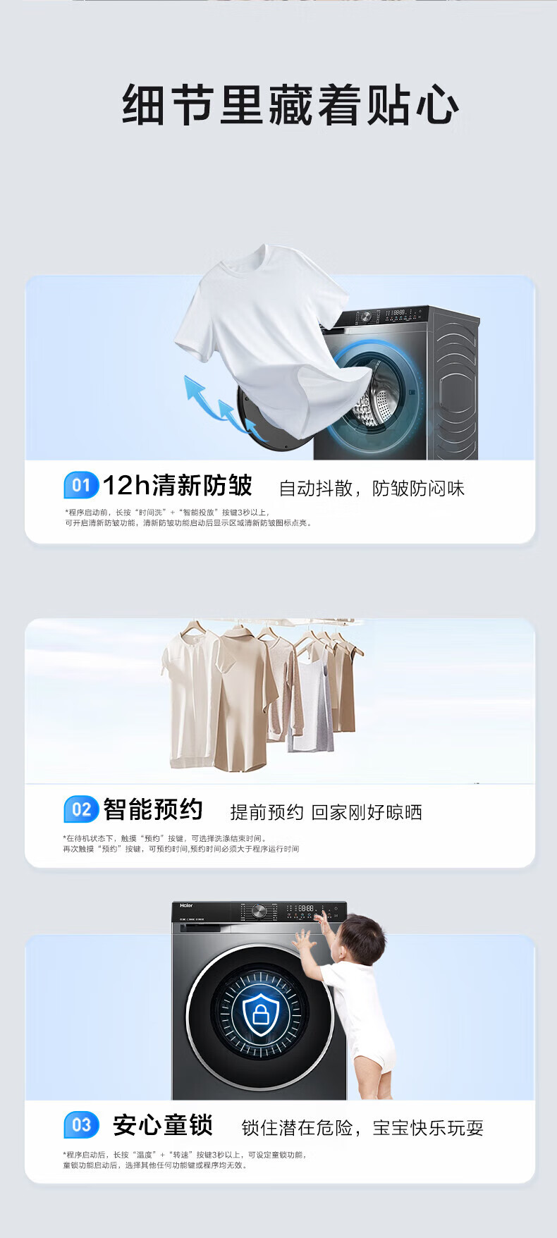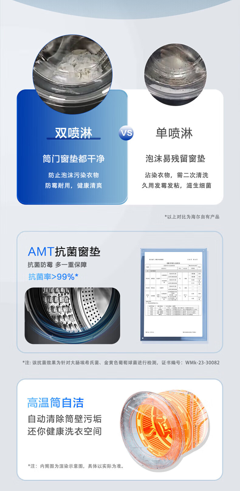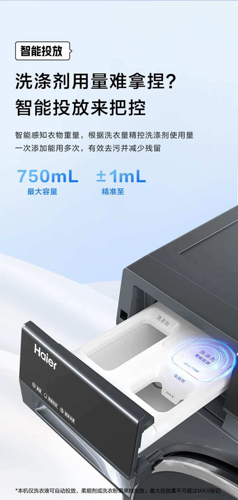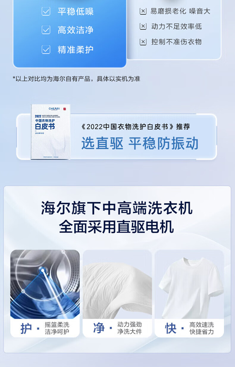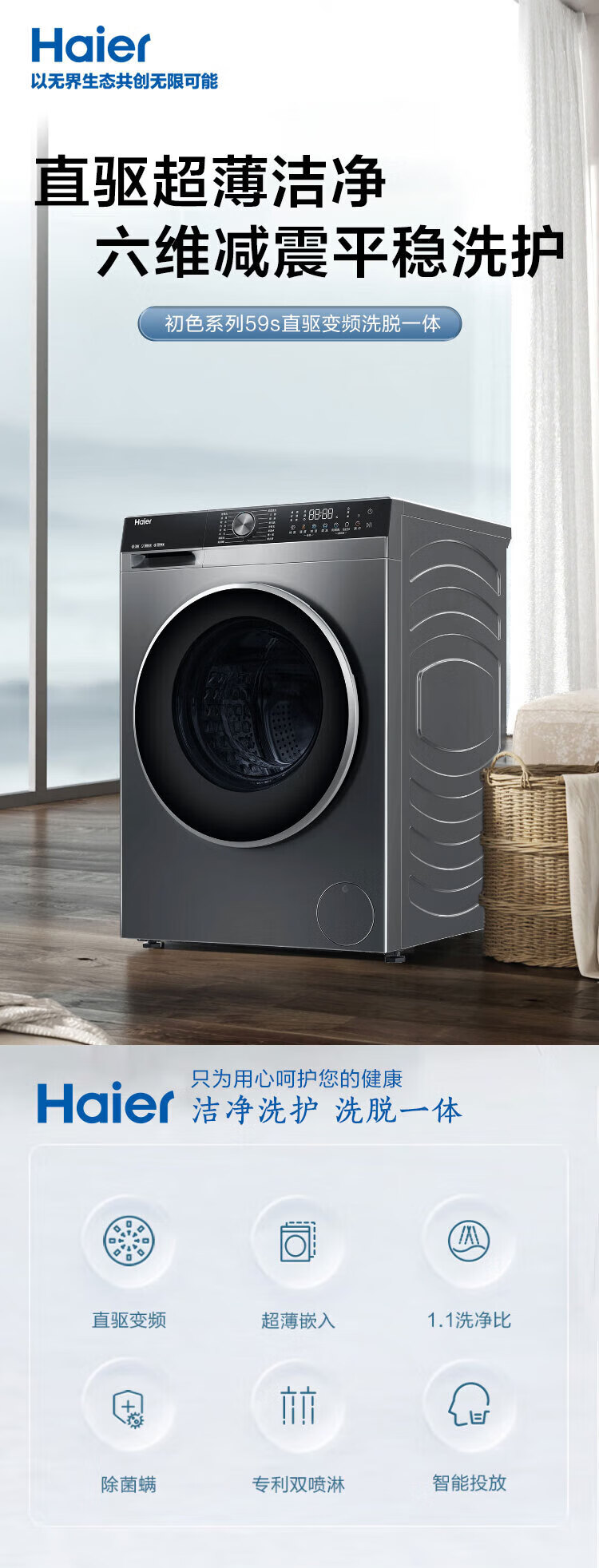 海尔(Haier)滚筒洗衣机直驱全自动10KG 超薄平嵌 智投1.1高洗净比双喷淋高温洗六维减震EG100BD59S