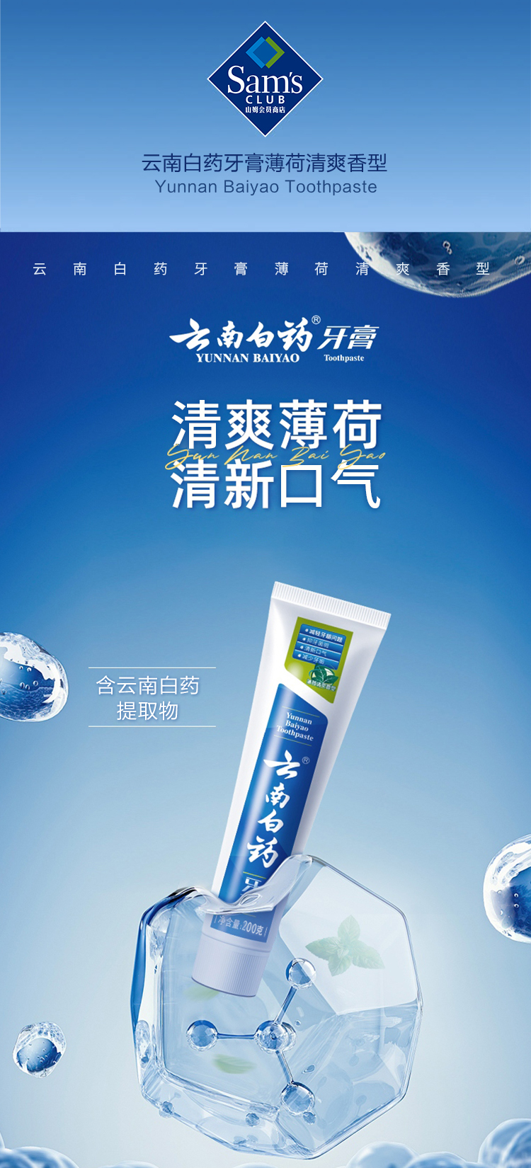 【自提】M 云南白药 牙膏薄荷清爽香型 200克5支