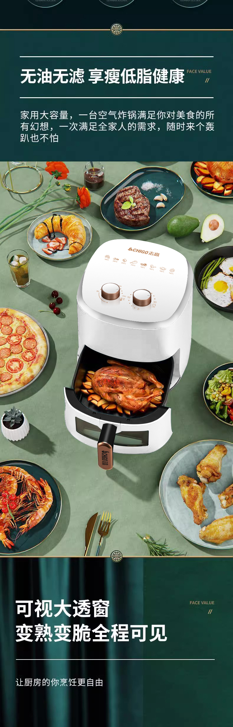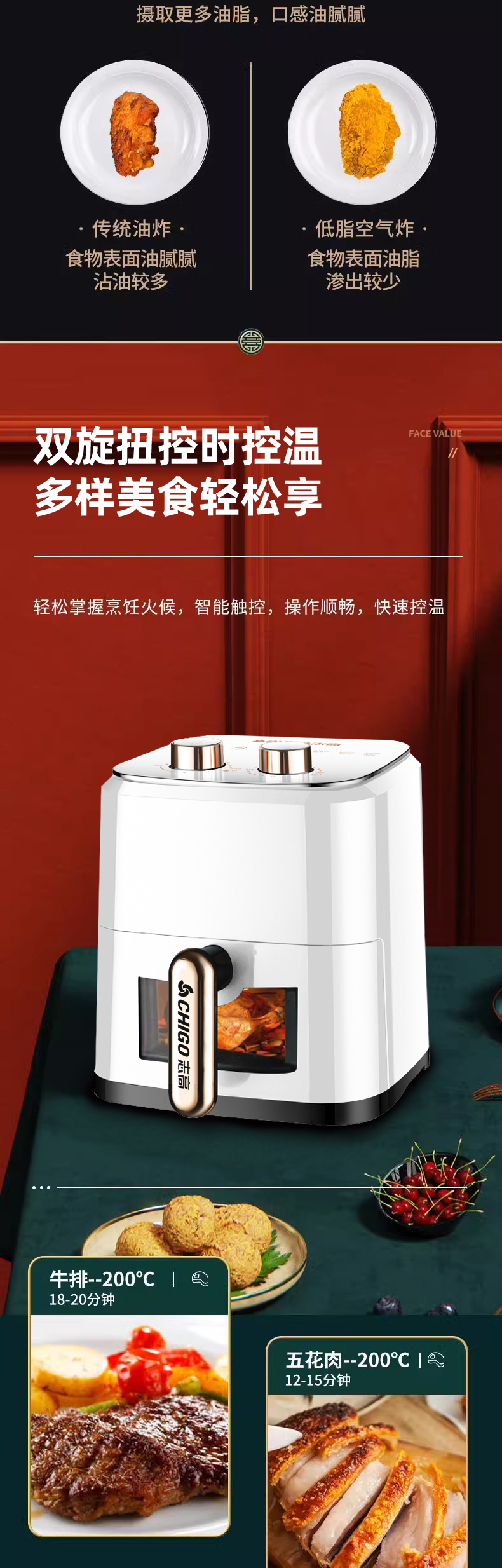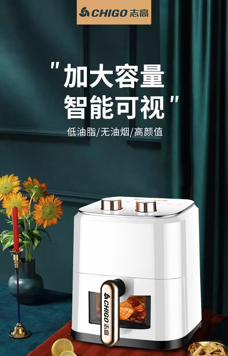 【一年质保】志高 双旋钮操作简单无油烘炸健康可视空气炸锅6L