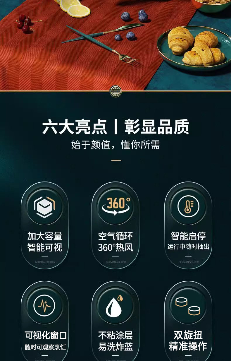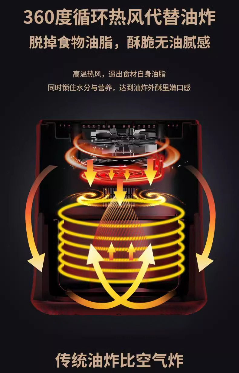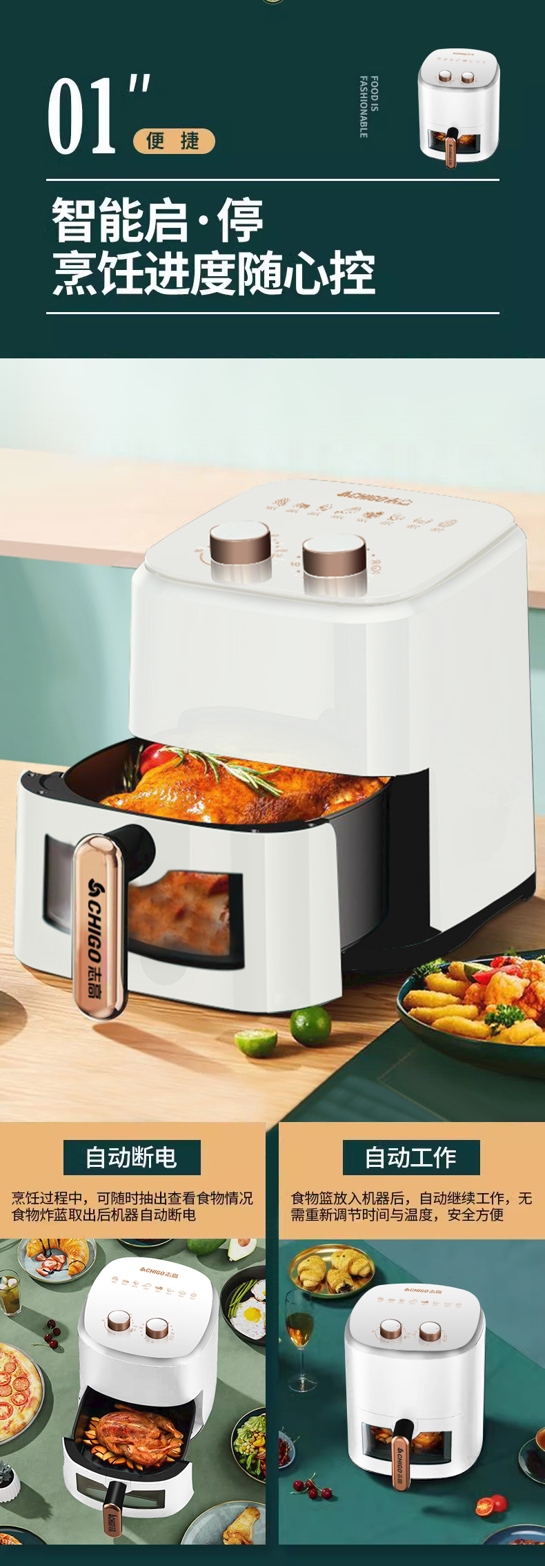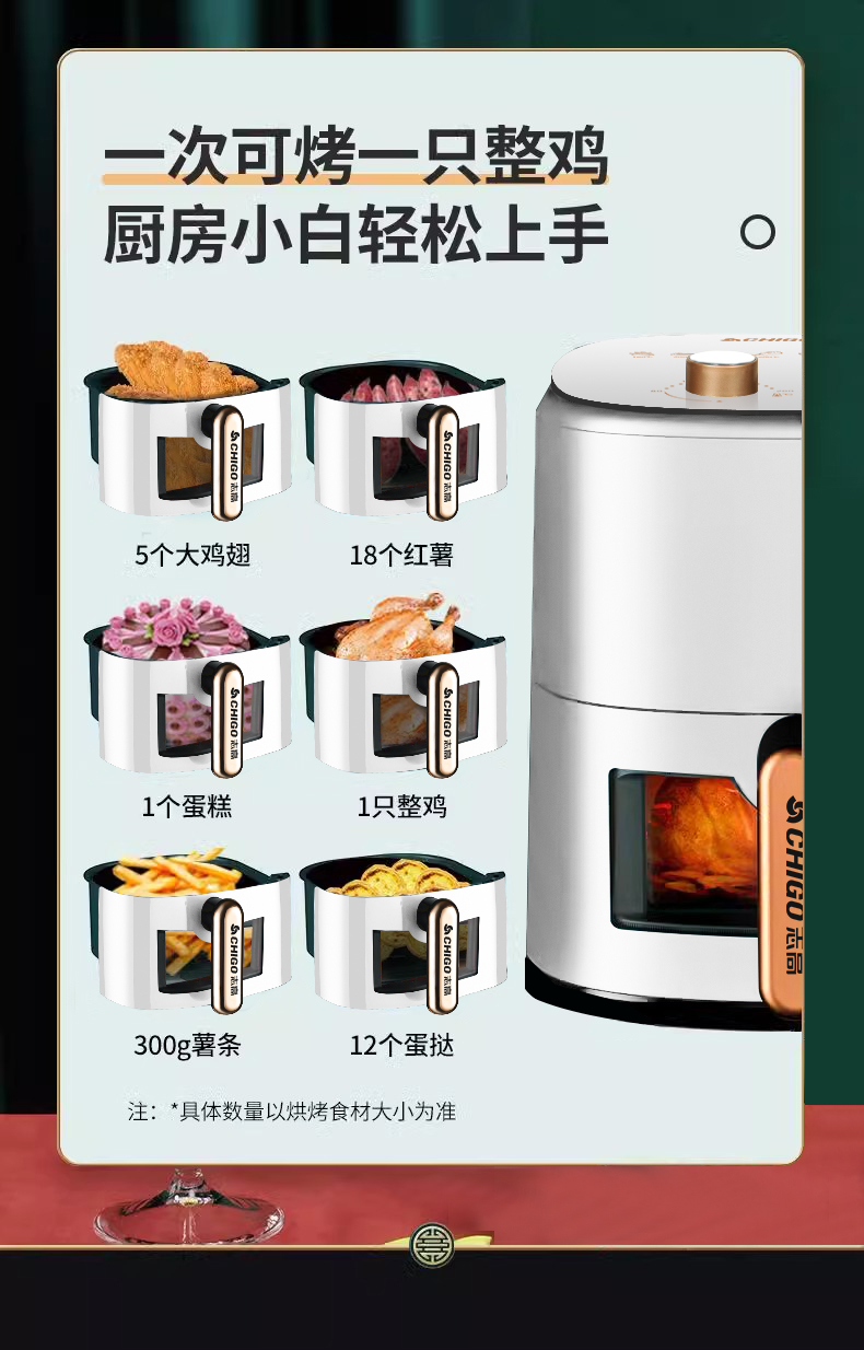 【一年质保】志高 双旋钮操作简单无油烘炸健康可视空气炸锅6L