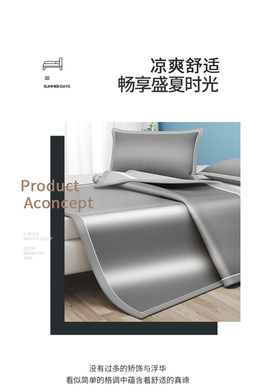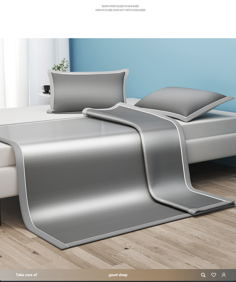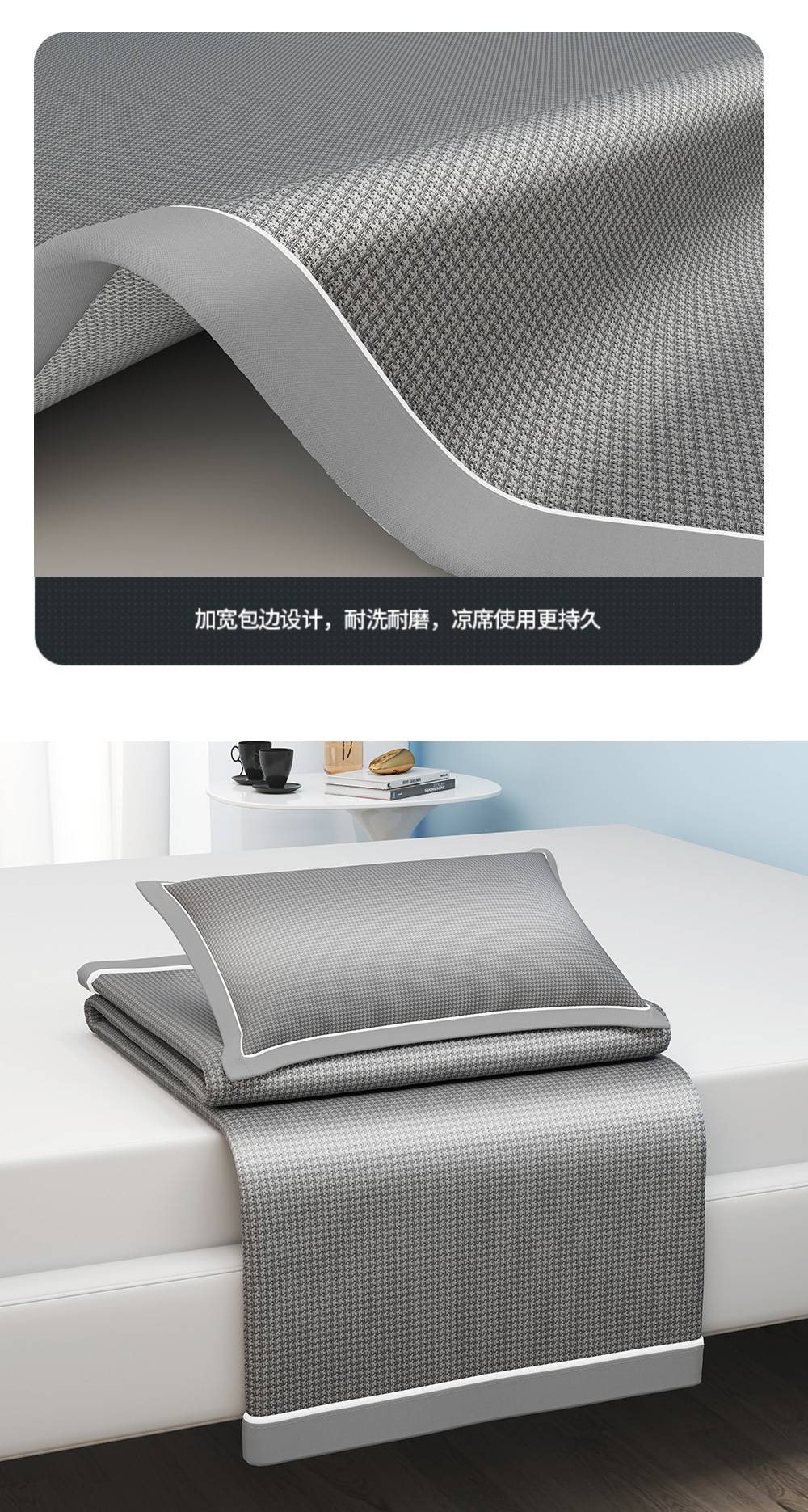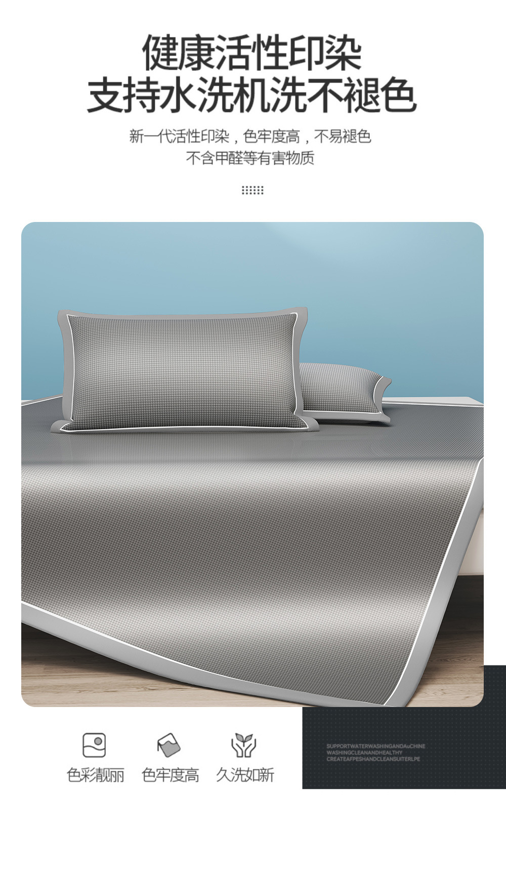 【冰丝席三件套】夏季凉席冰丝a类席三件套家用可机水洗单人学生宿舍凉席空调软席。ry